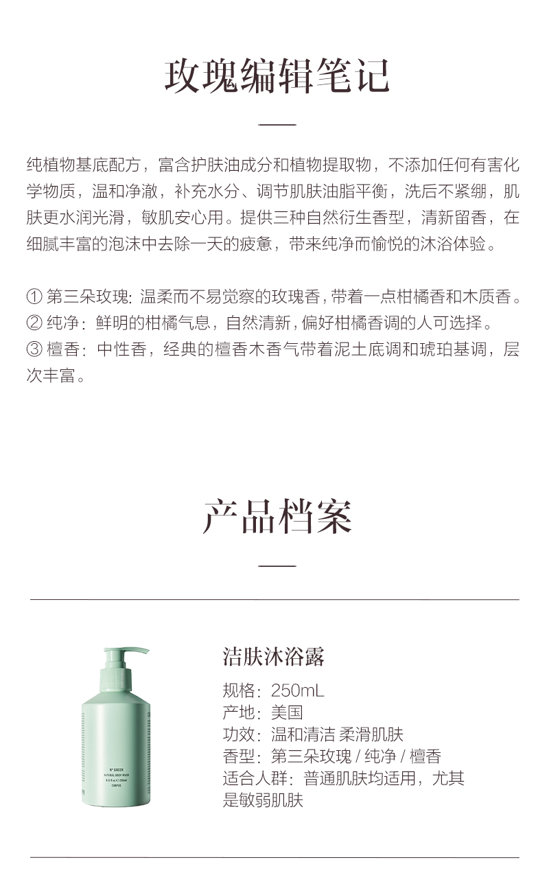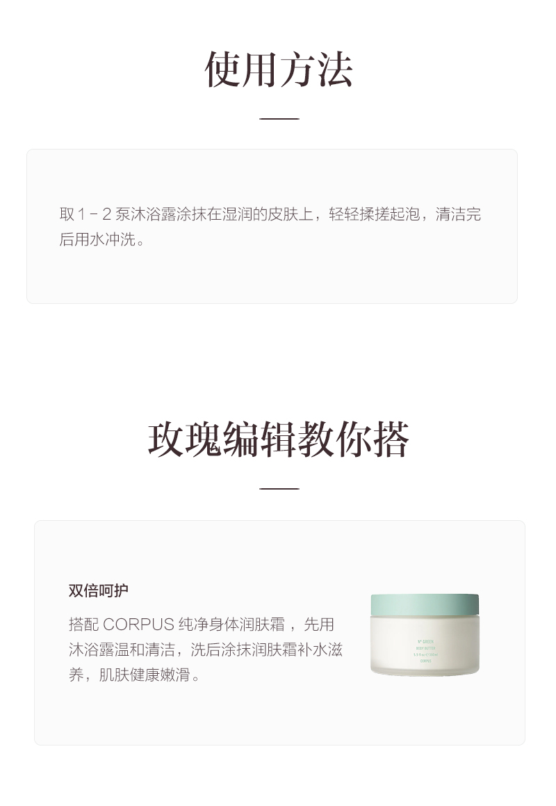 保税直发 CORPUS 洁肤沐浴露 纯净N° GREEN 250mL/檀香250mL/第三朵玫瑰266mL