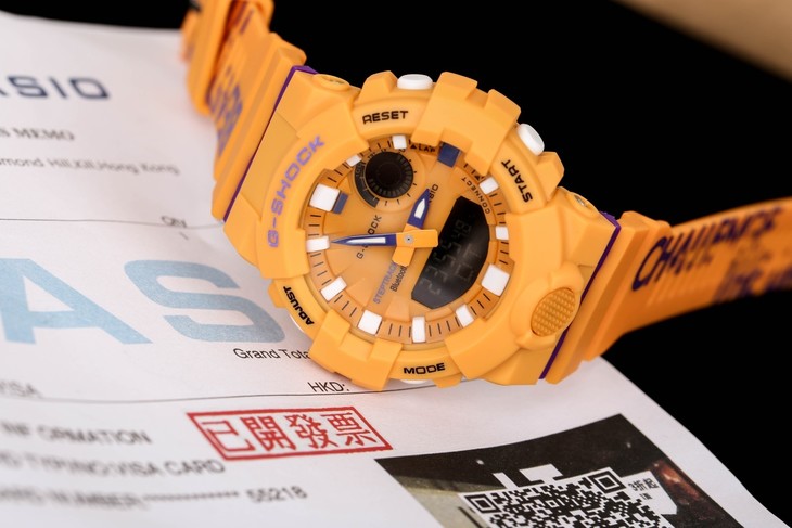 卡西欧GA800系列,最高版本,主要功能:45度自动抬手灯,防震防水,世界时间,倒计时,闹铃,间歇响报,日历.尺寸:50mm大号 全套