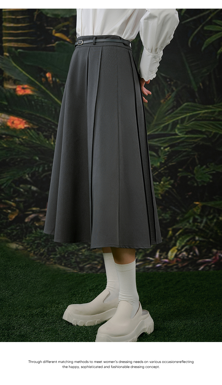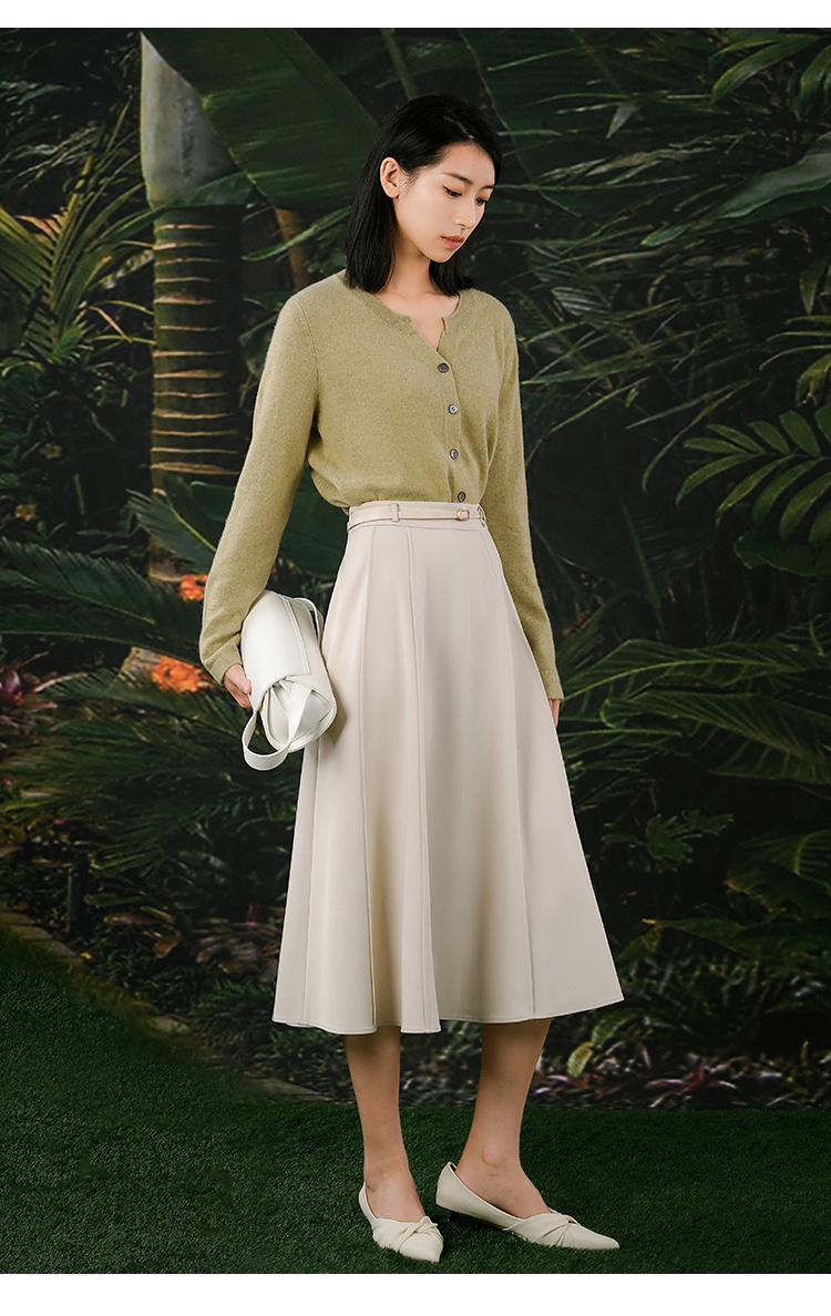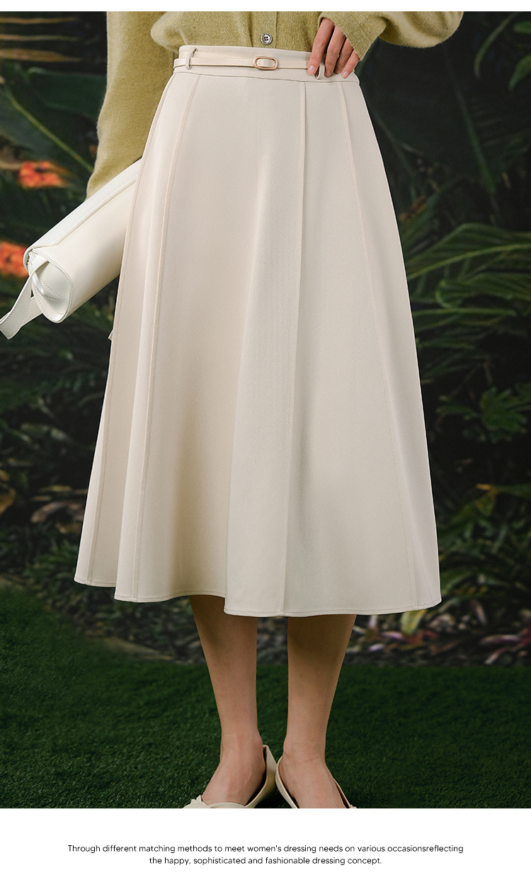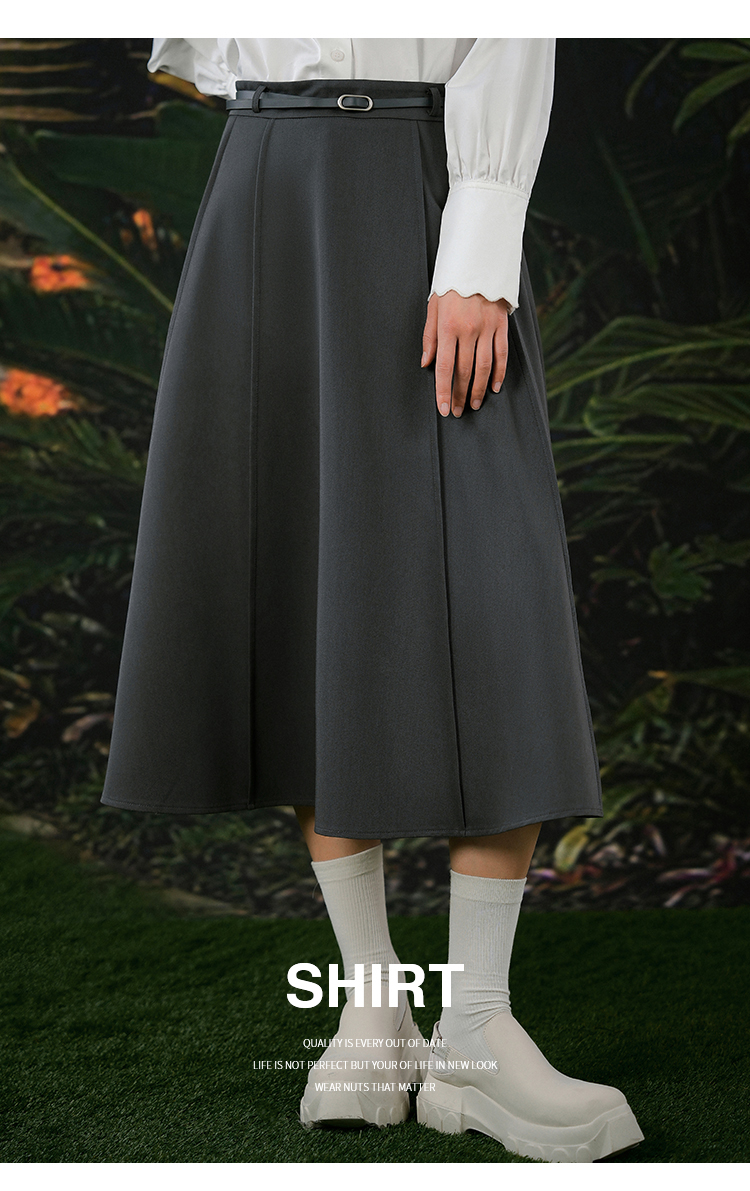 oldcolour欧珂春秋季气质简约休闲通勤纯色A字长裙女Q12061236