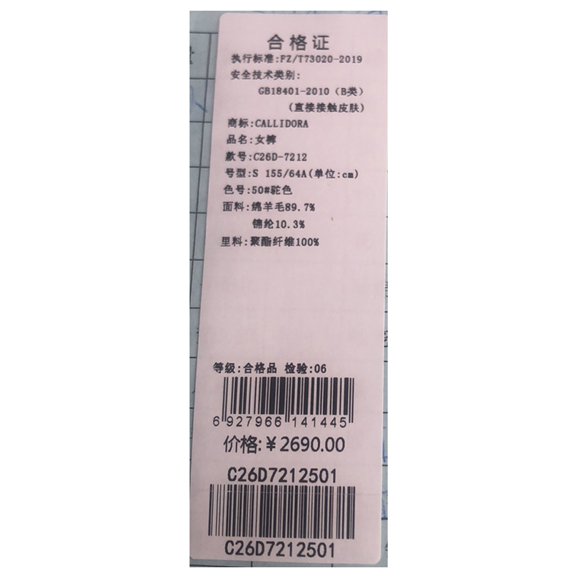 卡莉朵拉长裤C26D7212