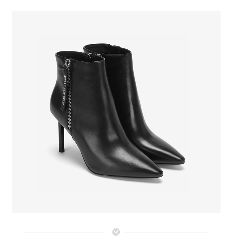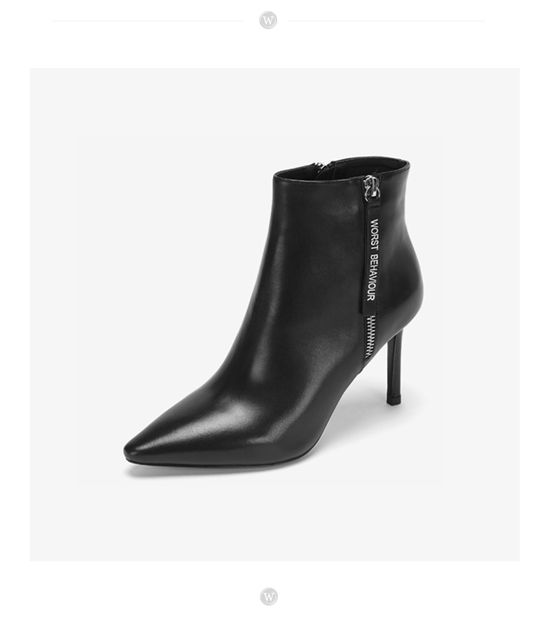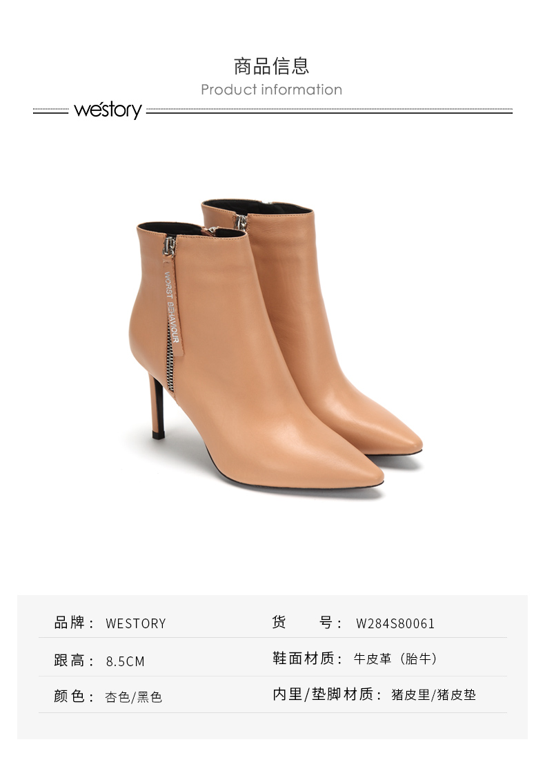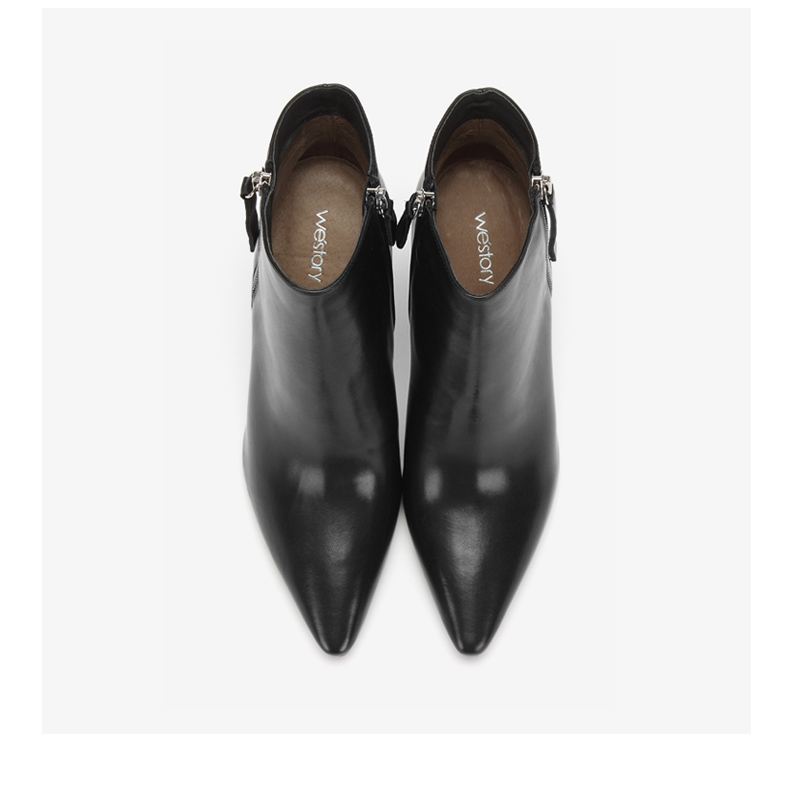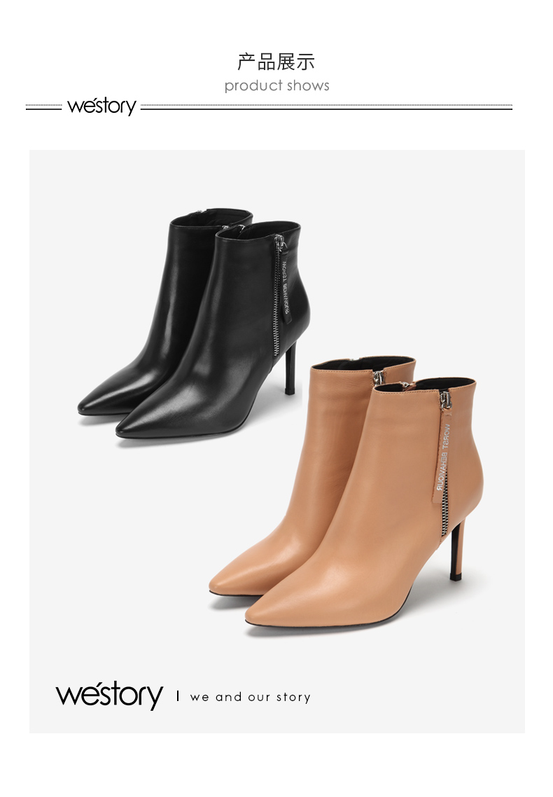 westory2018年冬季新款短靴细跟尖头女鞋冬靴子切尔西W284S80061