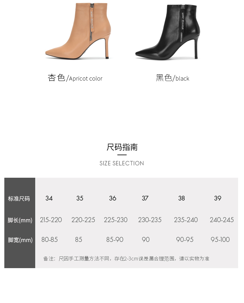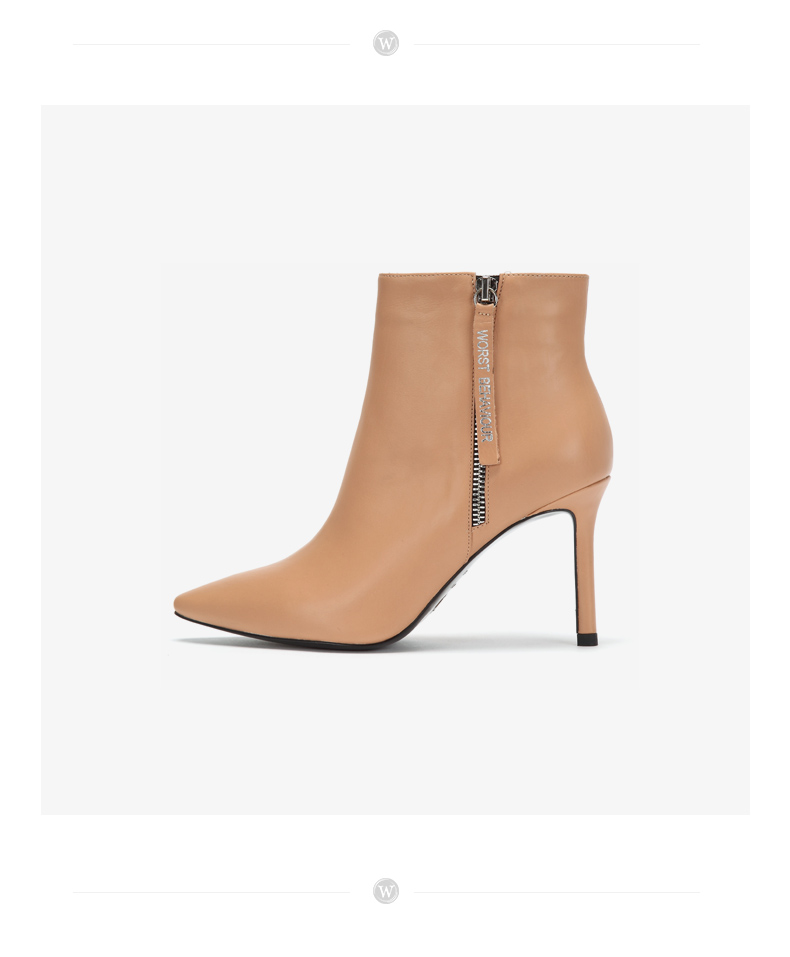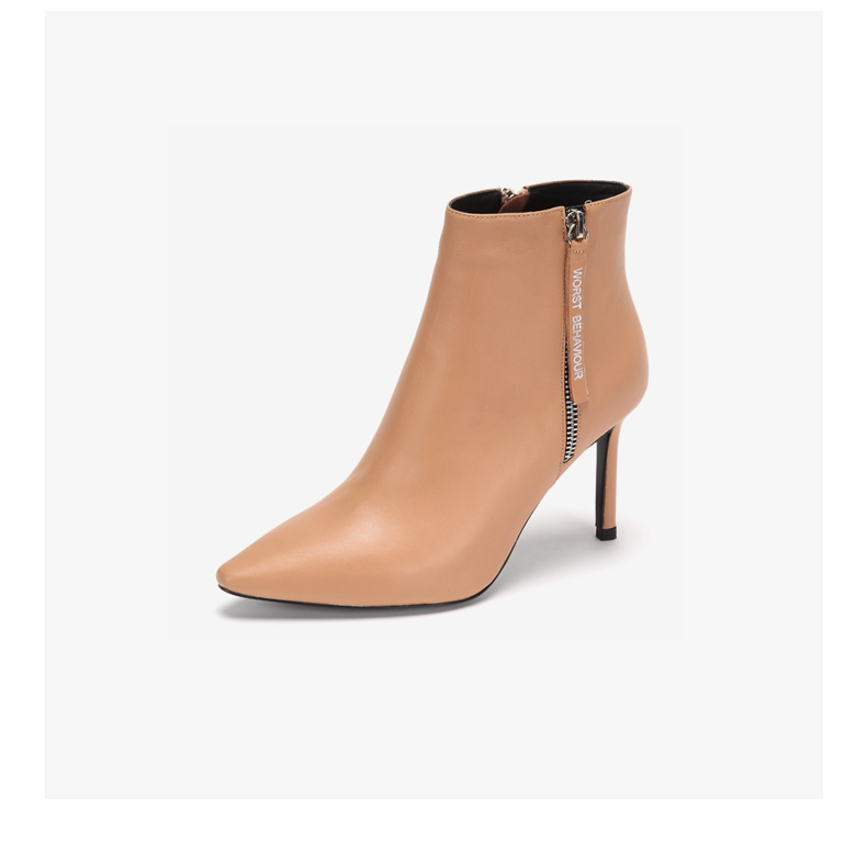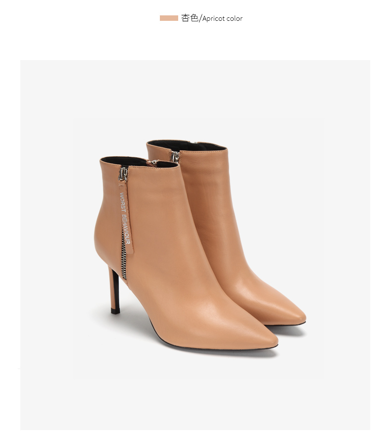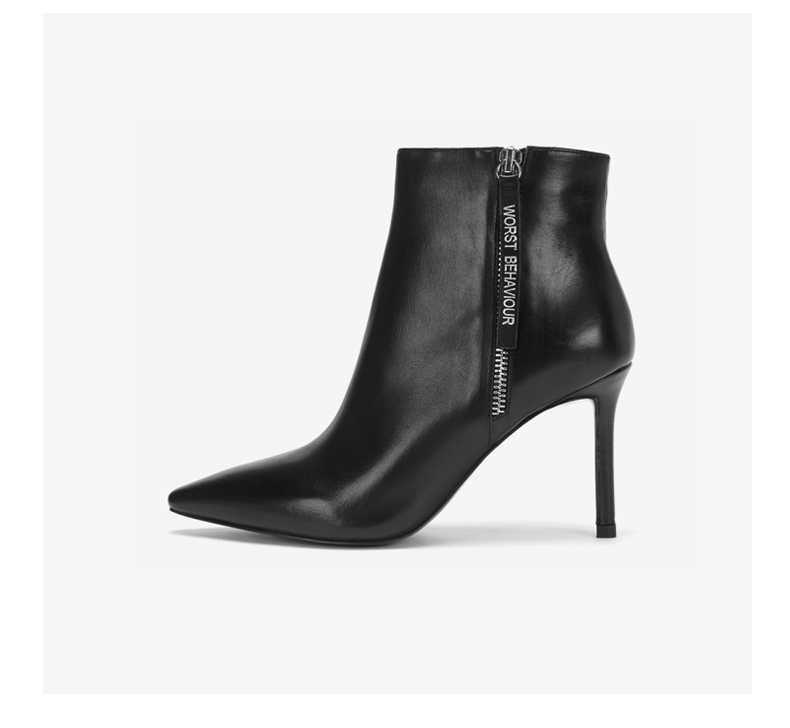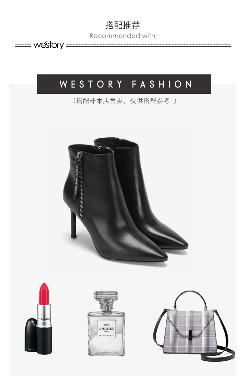 westory2018年冬季新款短靴细跟尖头女鞋冬靴子切尔西W284S80061