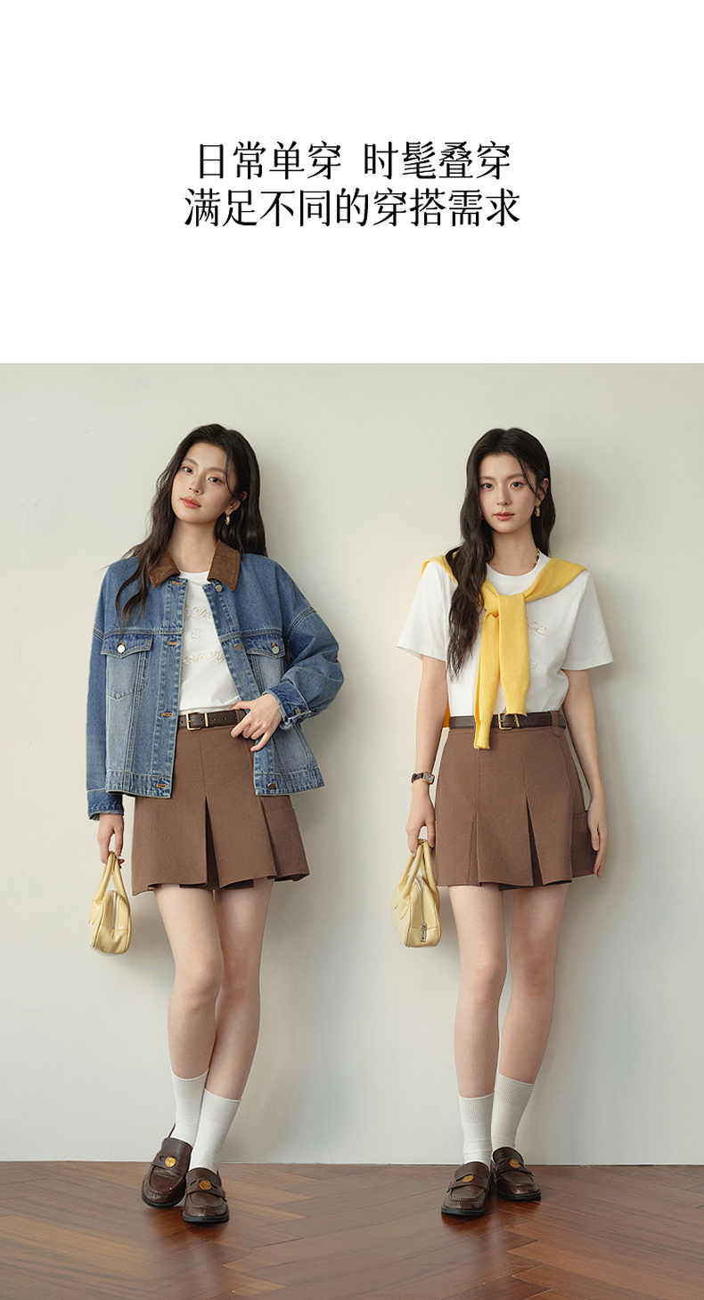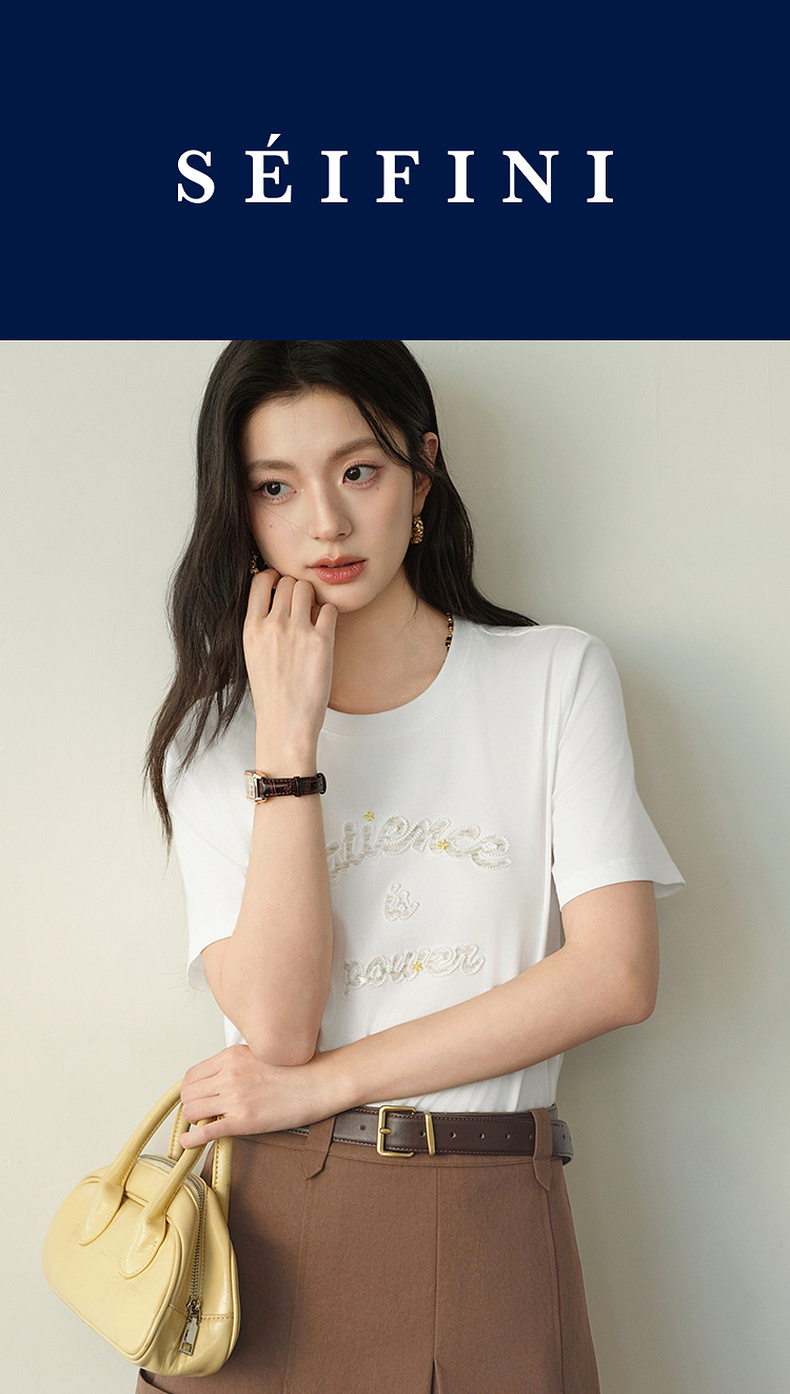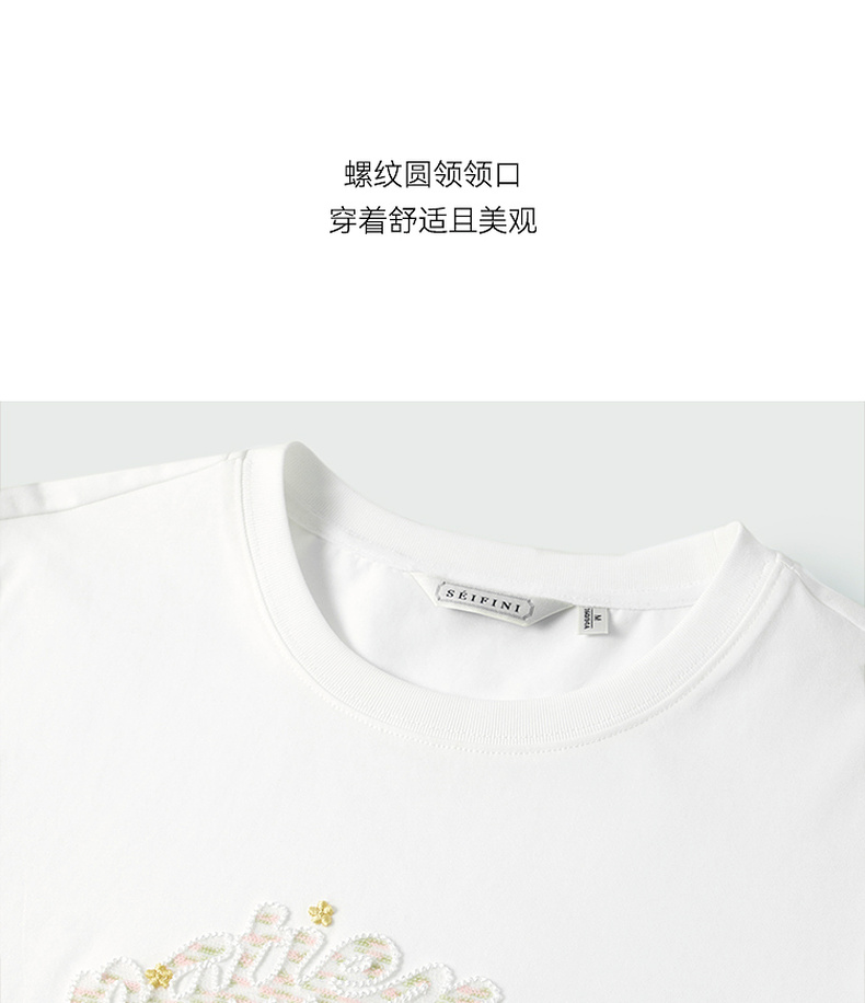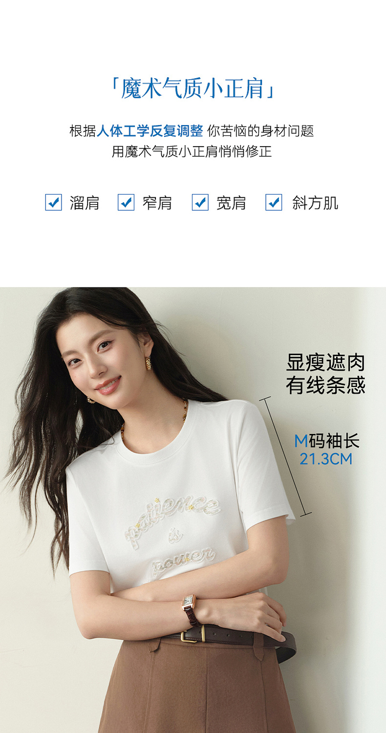 【严选】诗凡黎字母珠片绣凉感T恤2026春新款正肩显瘦内搭长绒棉短袖上衣7H2200241
