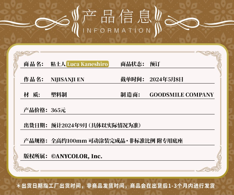 【GSC现货】粘土人 Luca Kaneshiro NIJISANJI EN