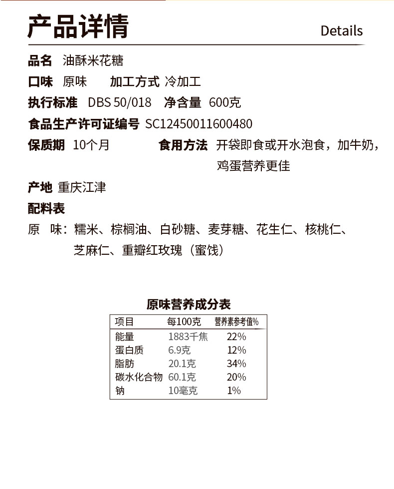 重庆江津特产隐涵600g怀旧油酥米花糖休闲早餐茶点