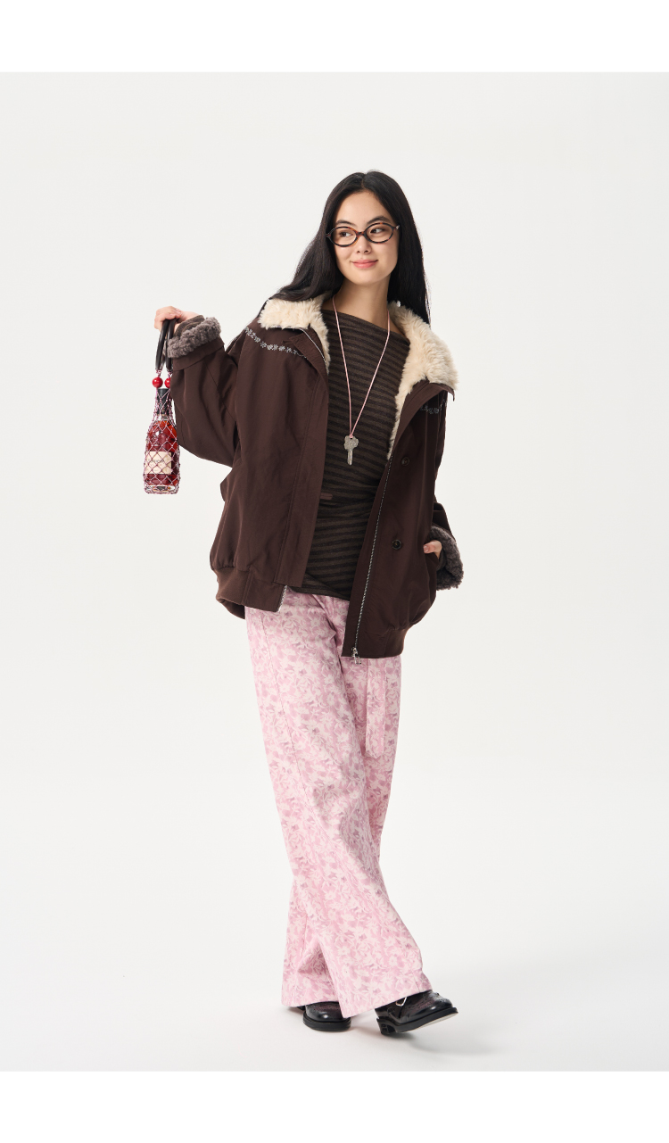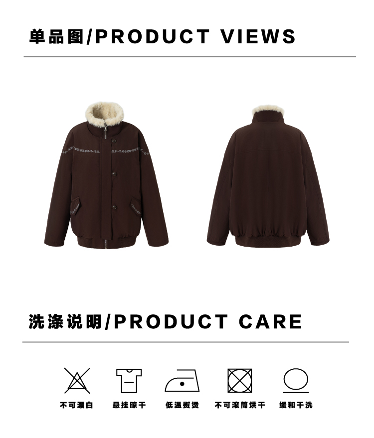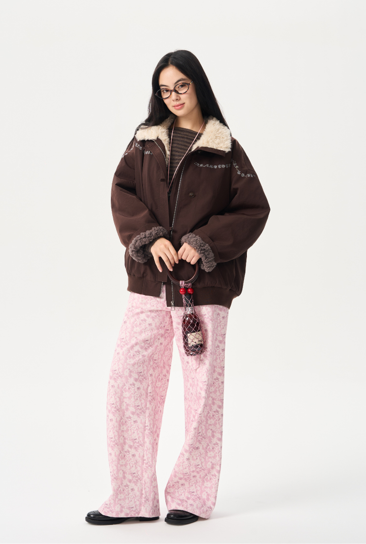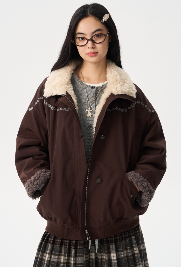 heris/H54107/蓬松羊羔毛内胆 花簇藤蔓刺绣 浆果紫立领花苞派克棉服