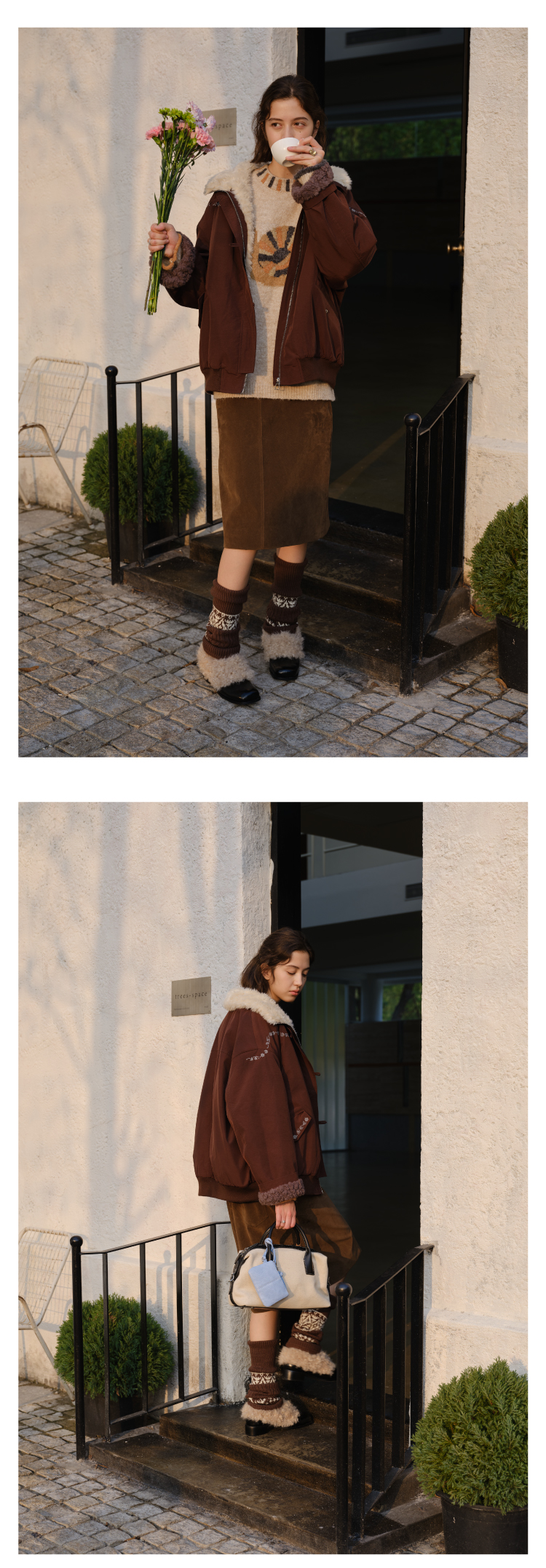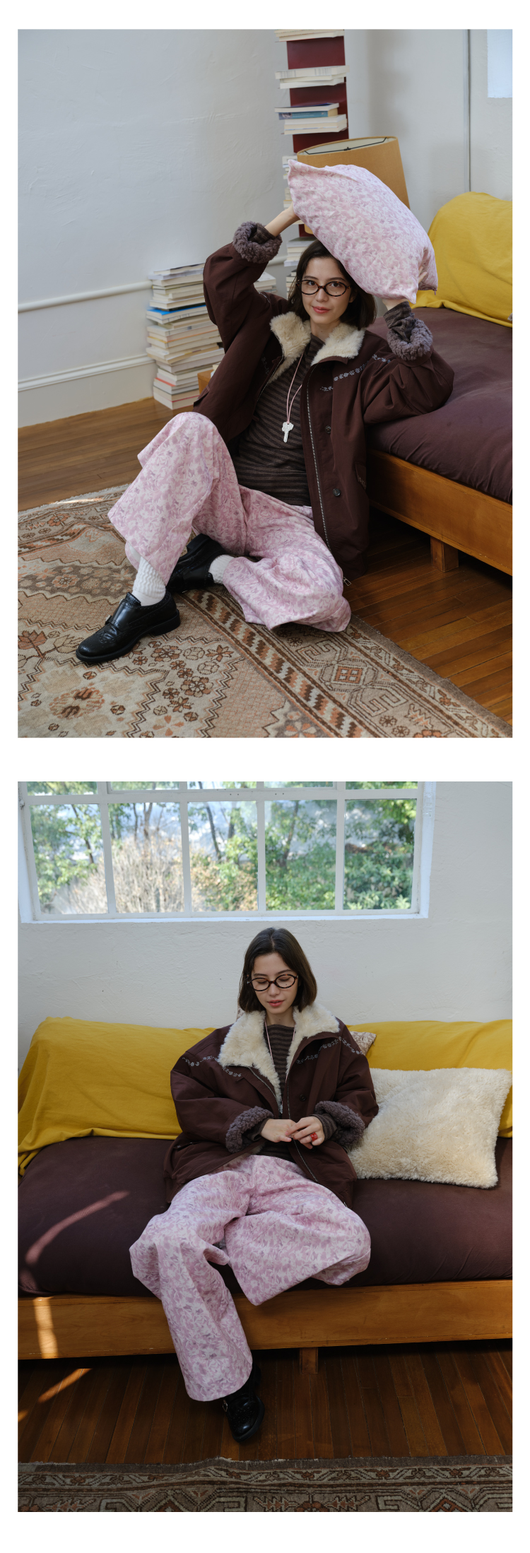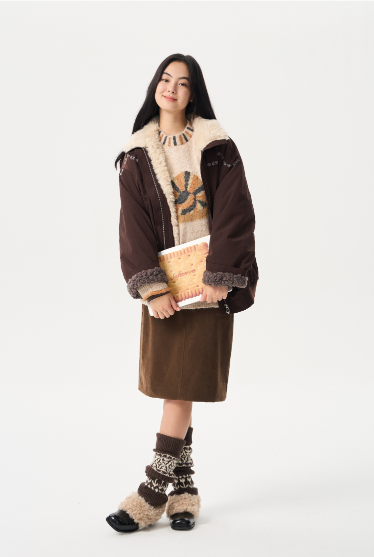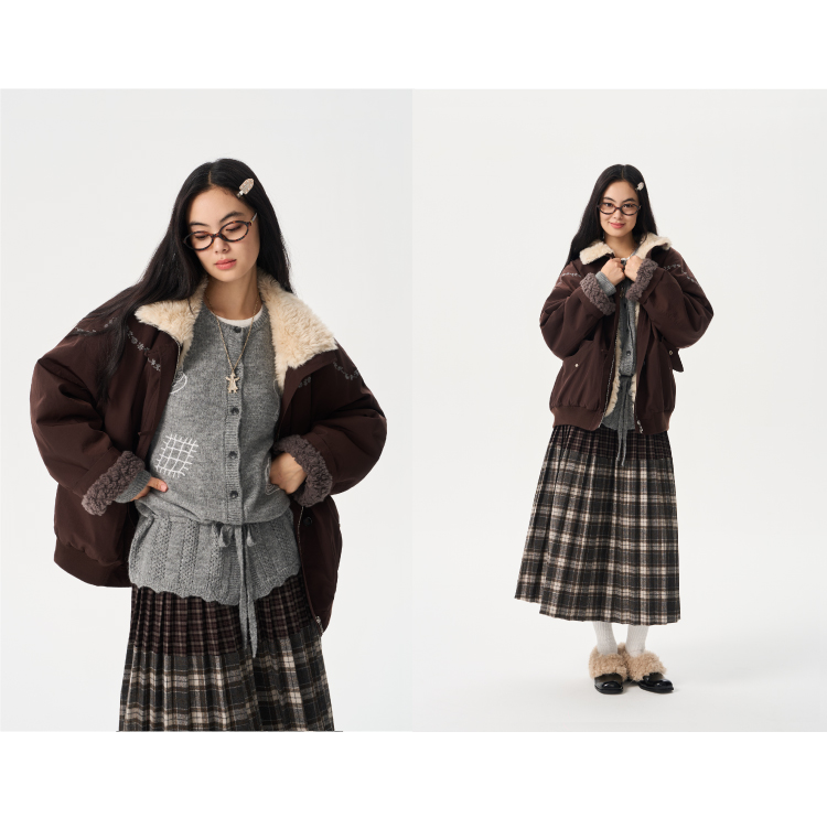 heris/H54107/蓬松羊羔毛内胆 花簇藤蔓刺绣 浆果紫立领花苞派克棉服