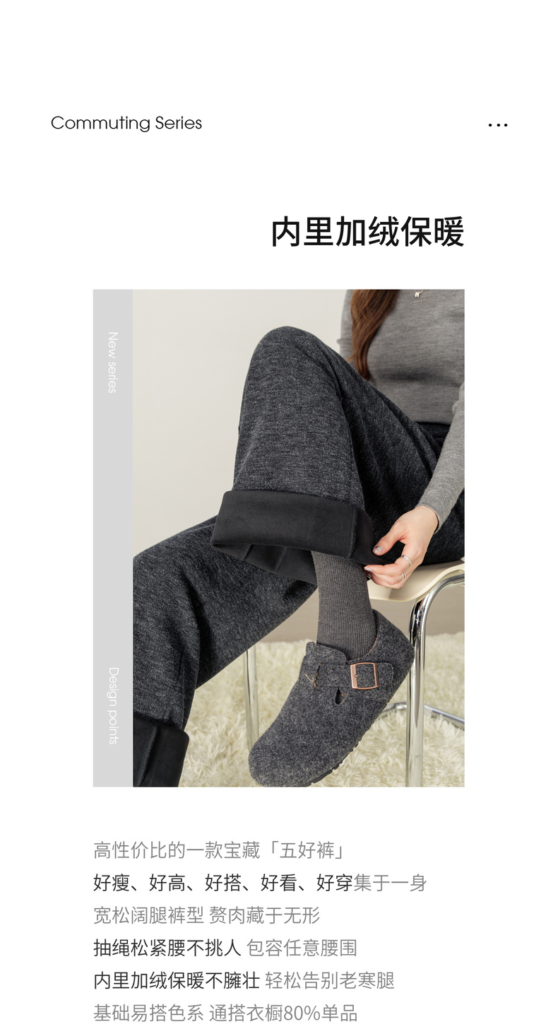 【内购】【五好裤】休闲通勤抽绳松紧腰宽松显瘦加绒保暖阔腿裤-154KD3402