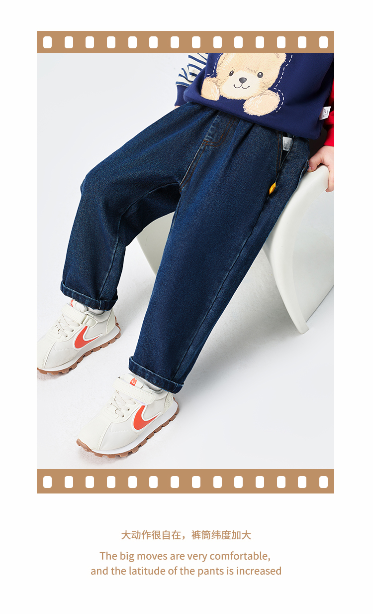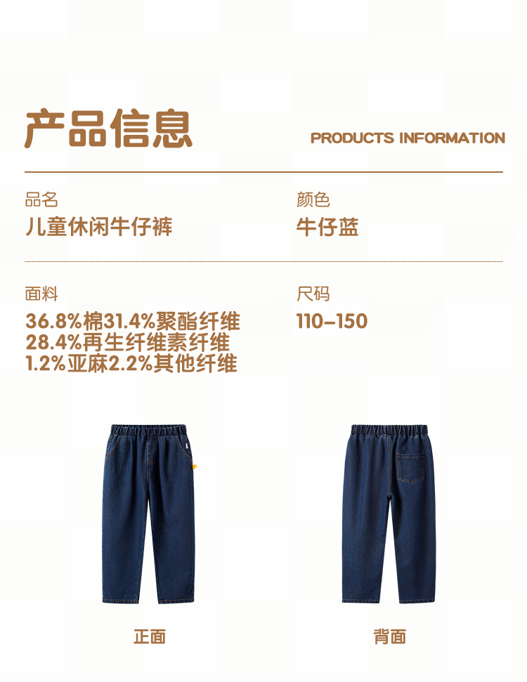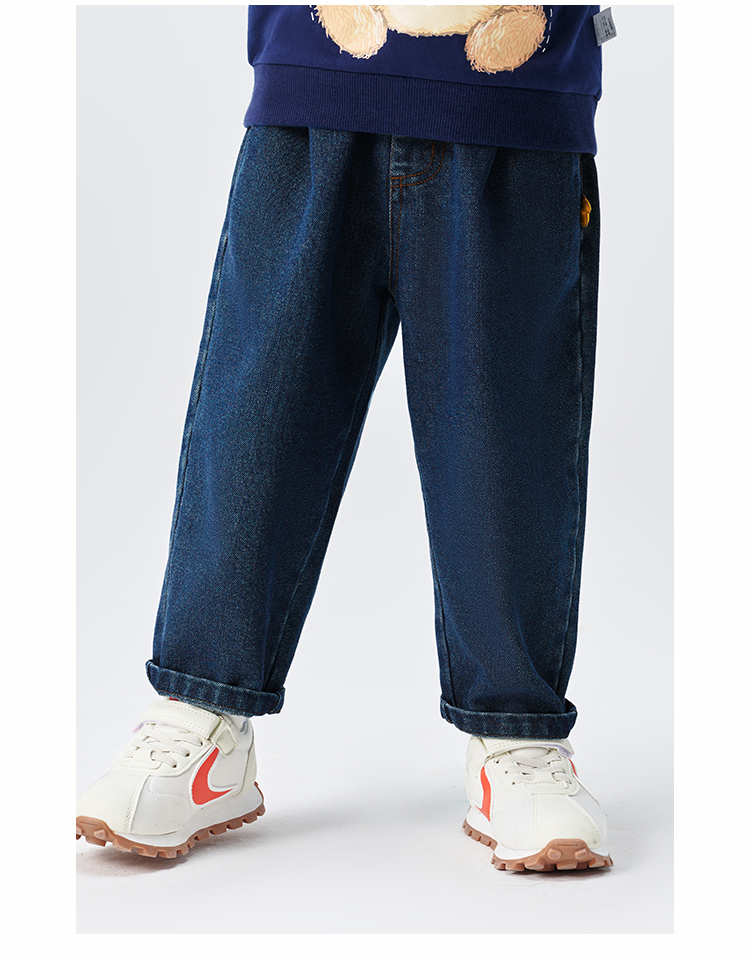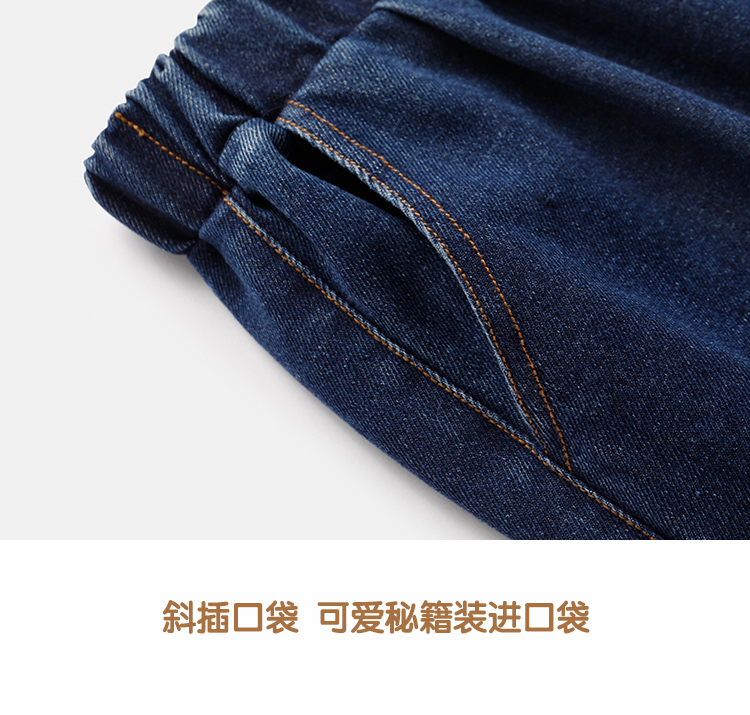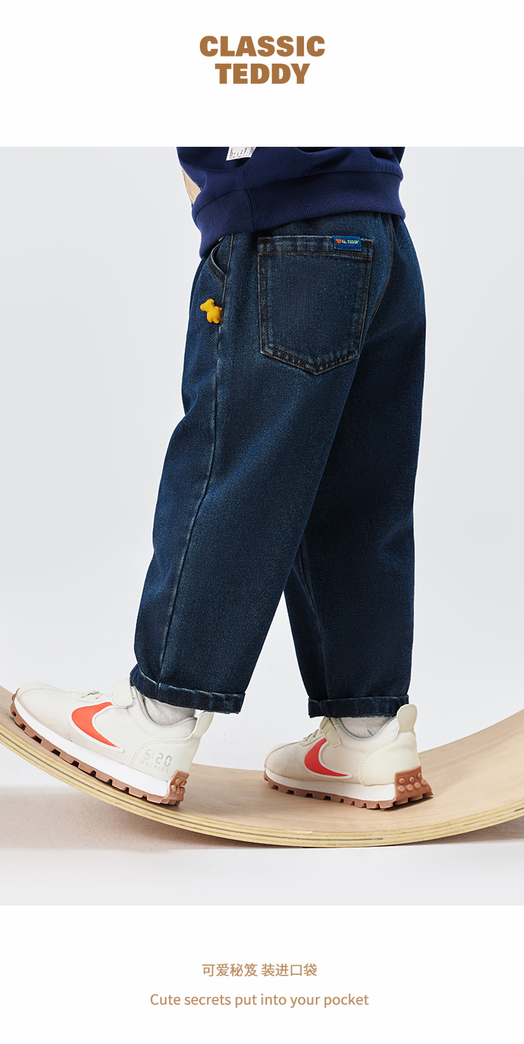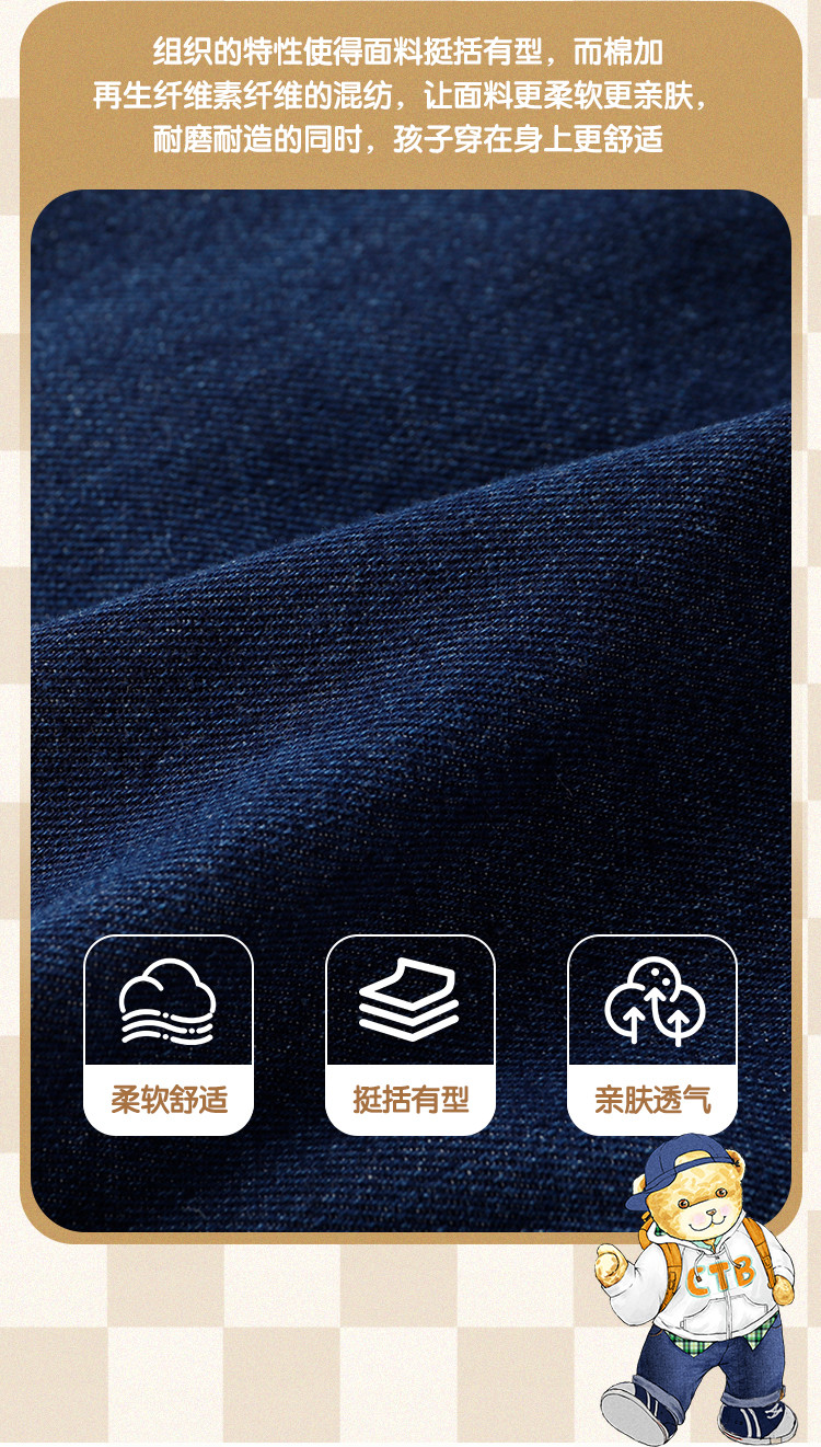 【110-150】【精典泰迪】儿童春秋牛仔裤简约立体小熊36.8%棉 31.4%聚酯纤维 28.4%再生纤维素纤维 1.2%亚麻 2.2%其他纤维