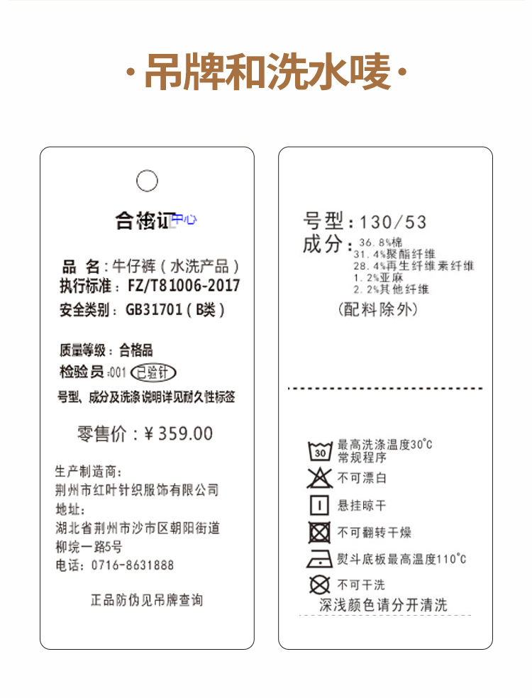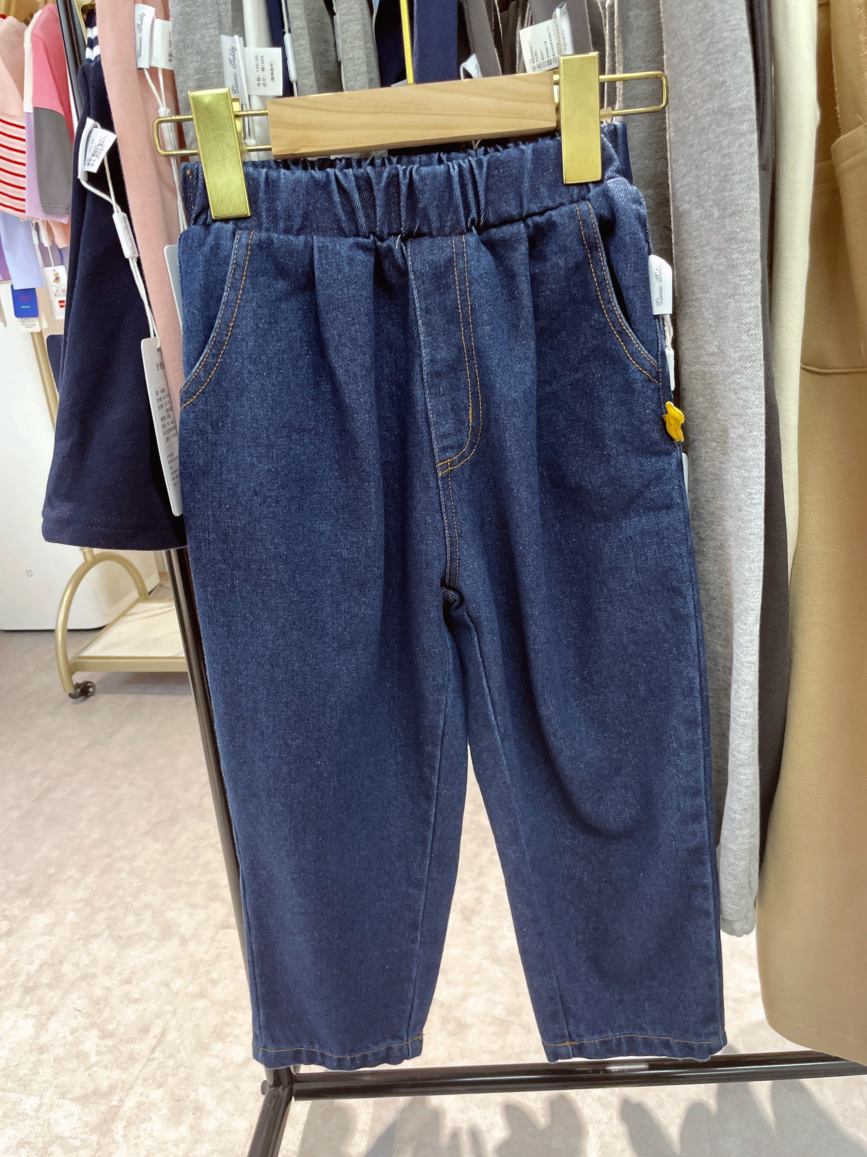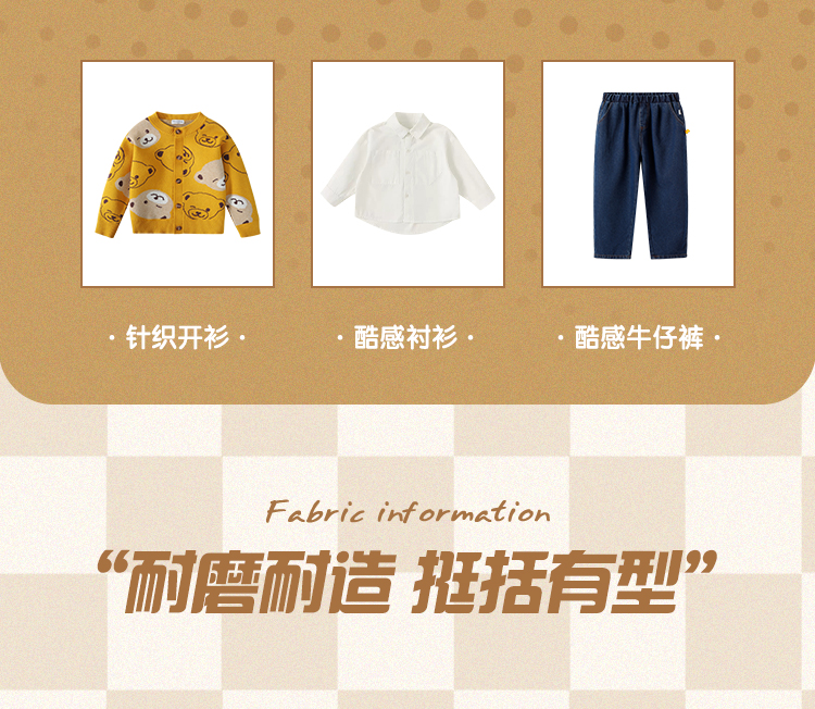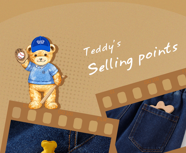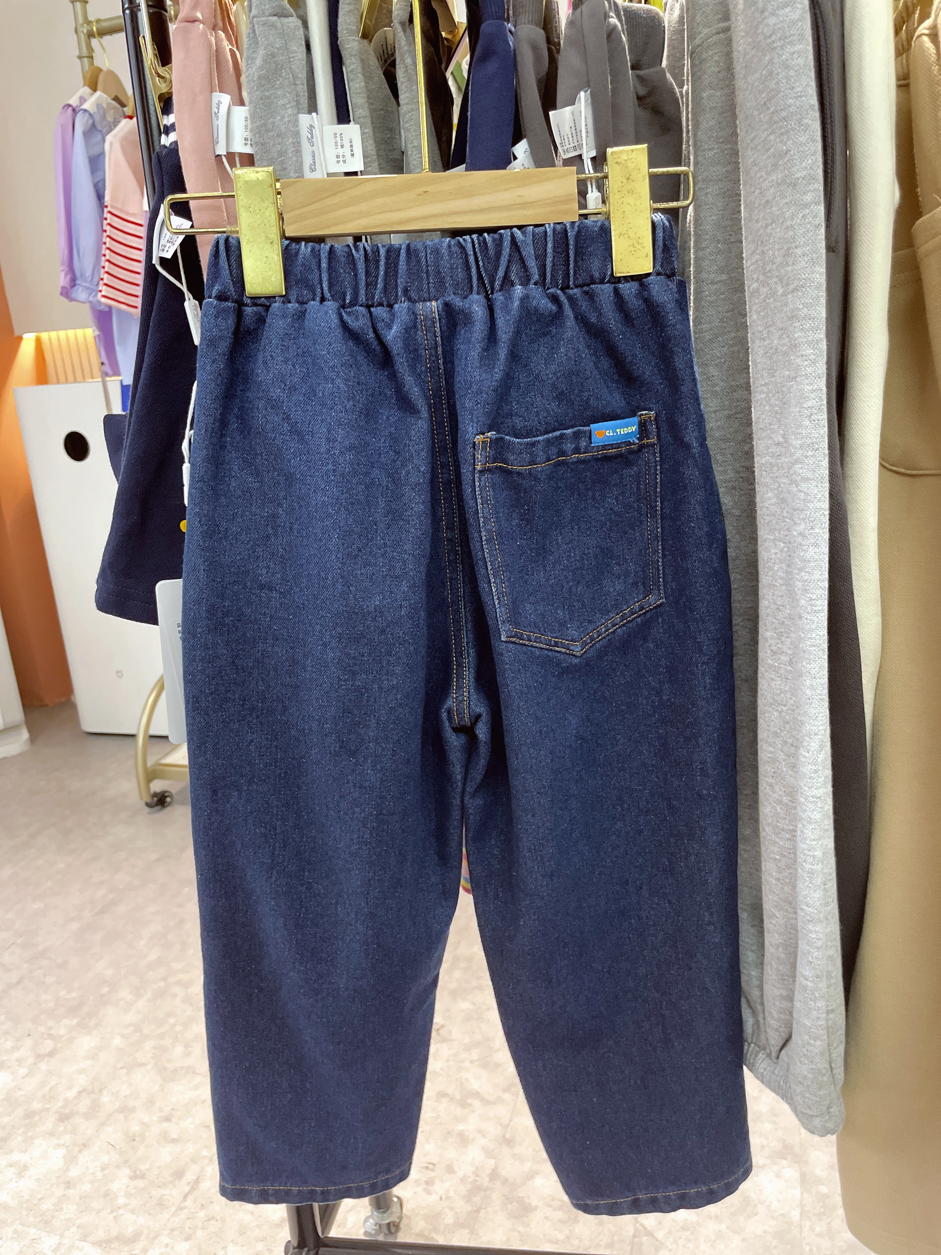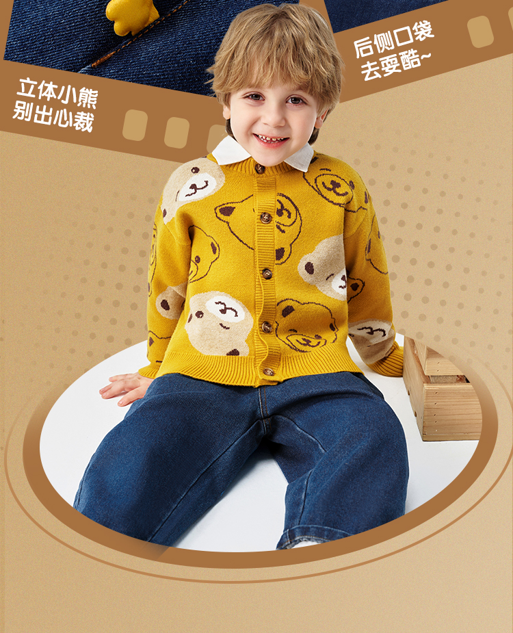 【110-150】【精典泰迪】儿童春秋牛仔裤简约立体小熊36.8%棉 31.4%聚酯纤维 28.4%再生纤维素纤维 1.2%亚麻 2.2%其他纤维