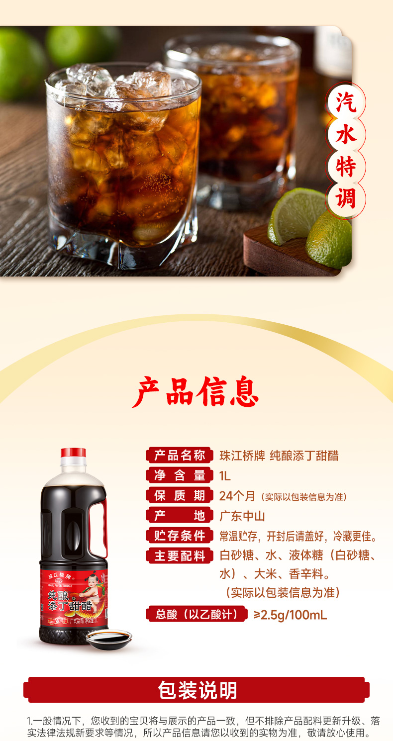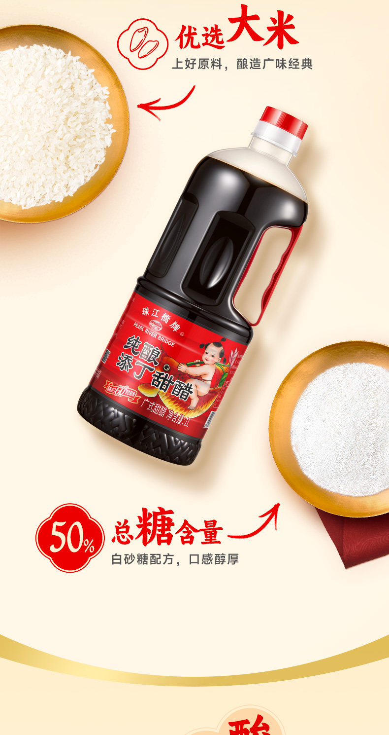【纯正甜醋】珠江桥牌 添丁甜醋1L