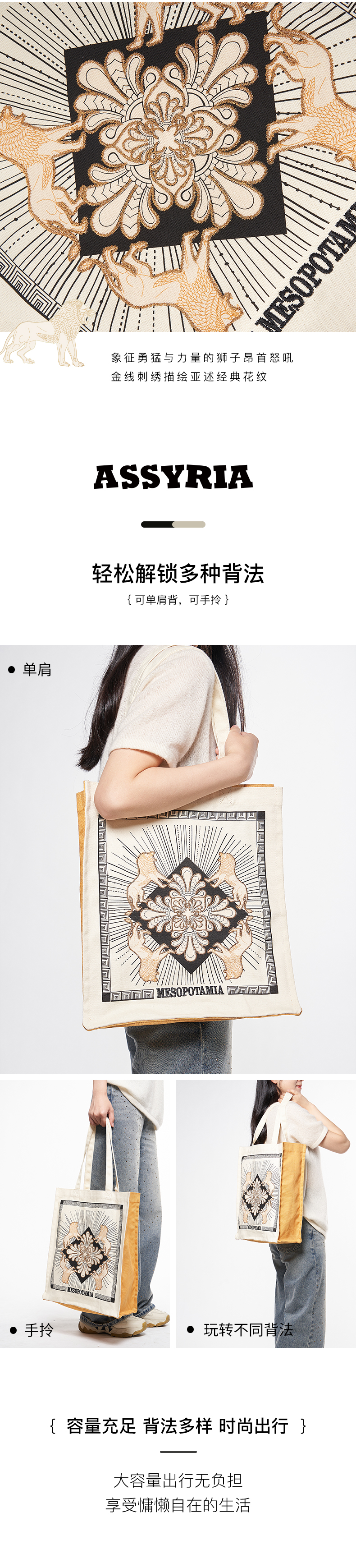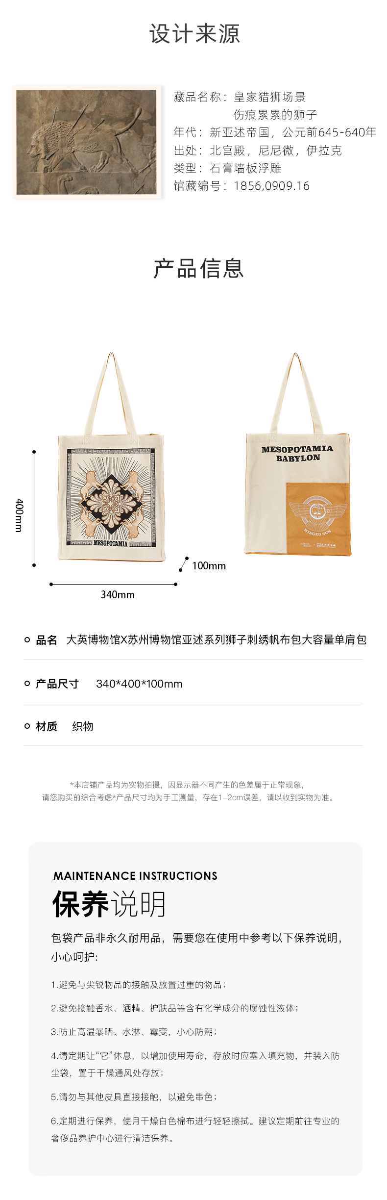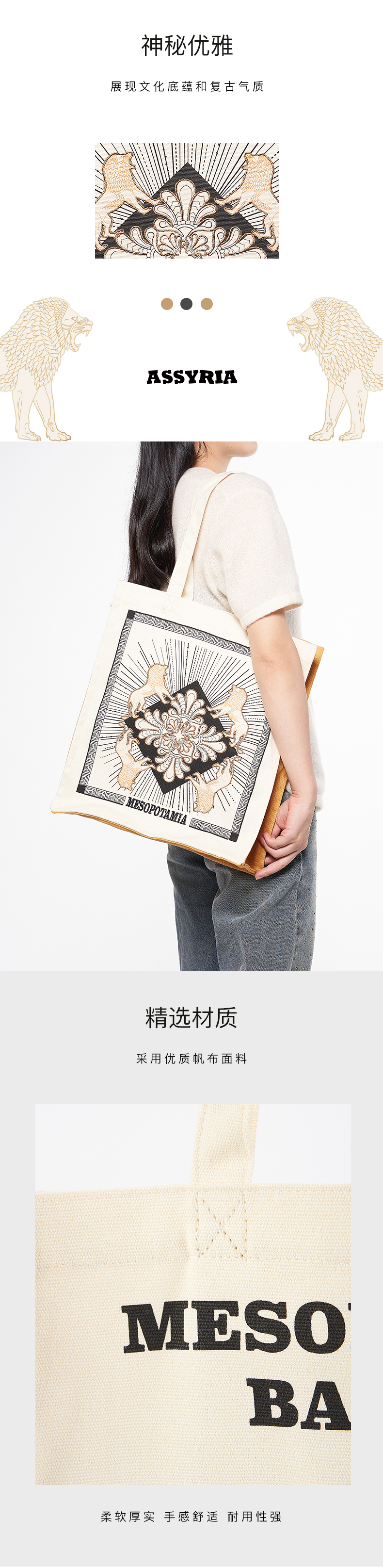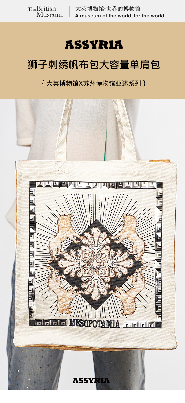 大英博物馆 X 苏州博物馆 亚述系列狮子 刺绣帆布包 大容量 单肩包