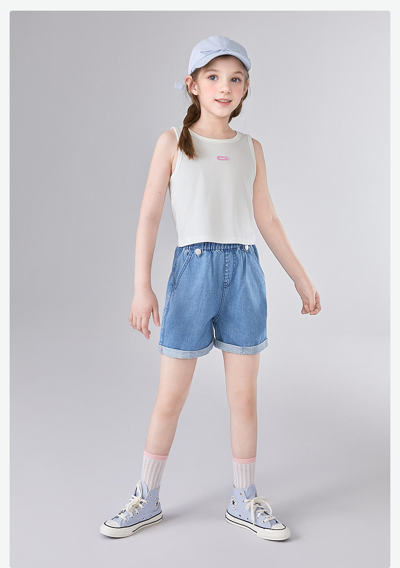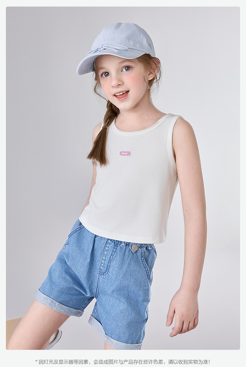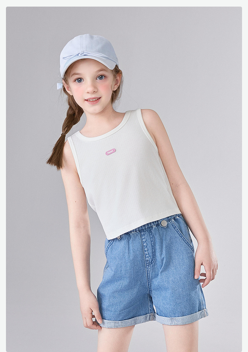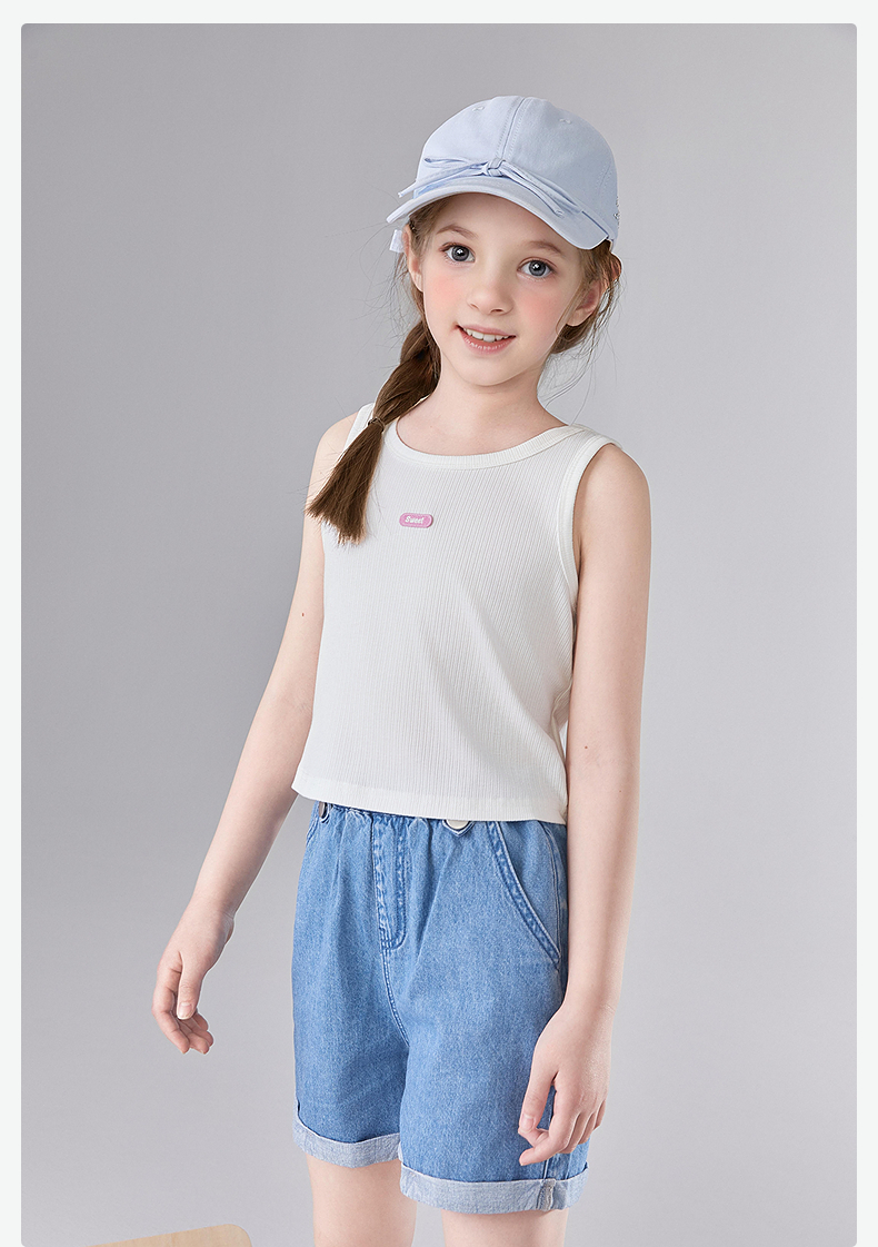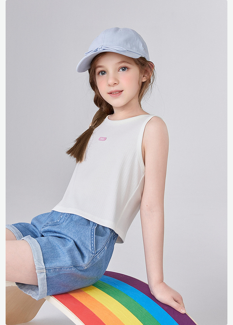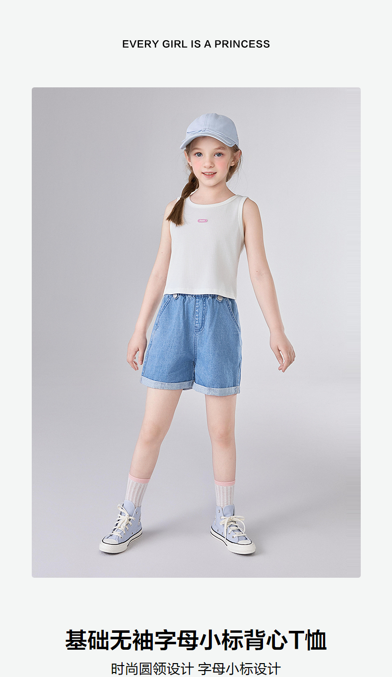 笛莎Deesha 童装女童T恤2025夏新款女童基础无袖字母小标背心丅恤