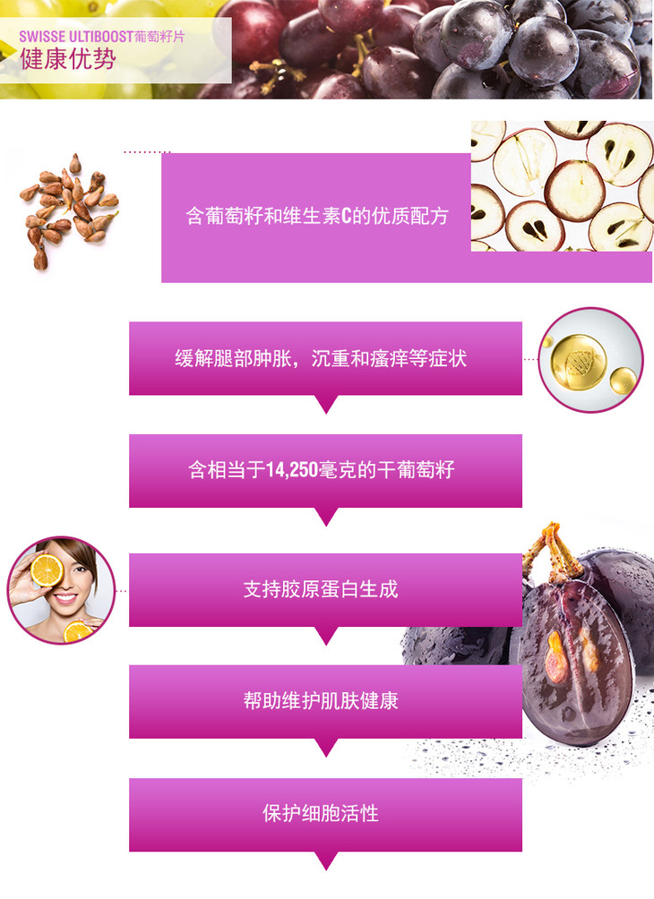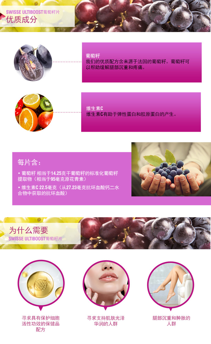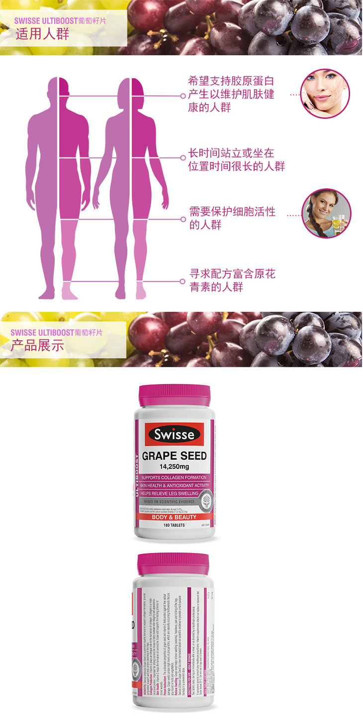【保税仓】澳洲进口Swisse葡萄籽片 花青素精华提取物 180粒/瓶