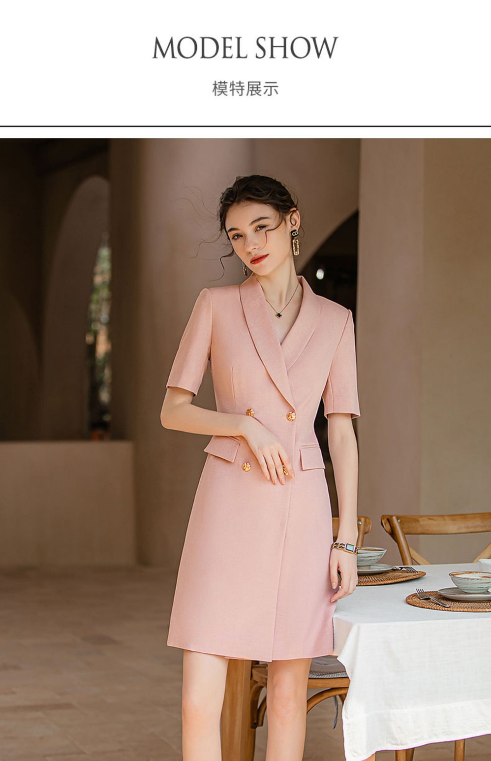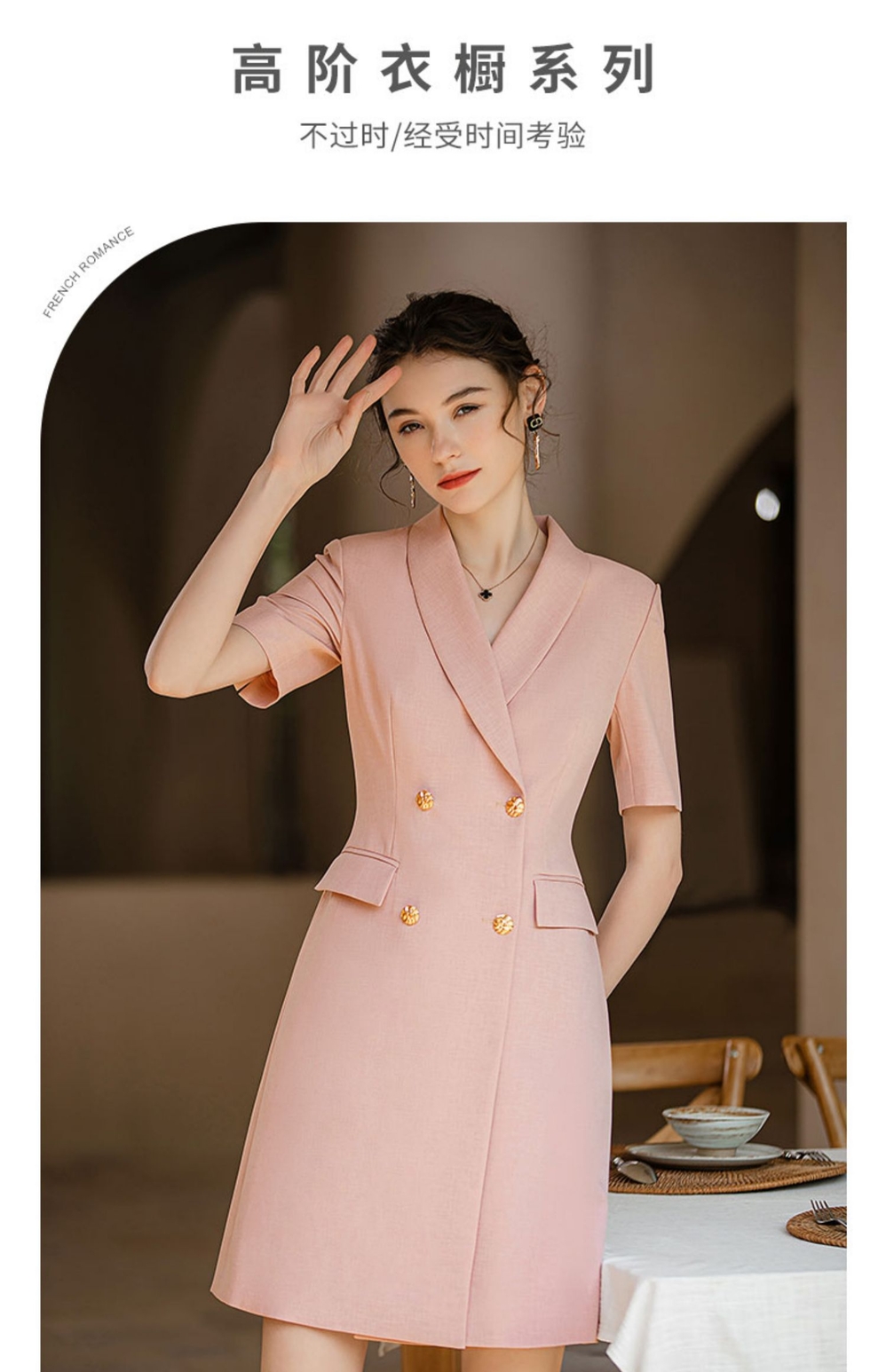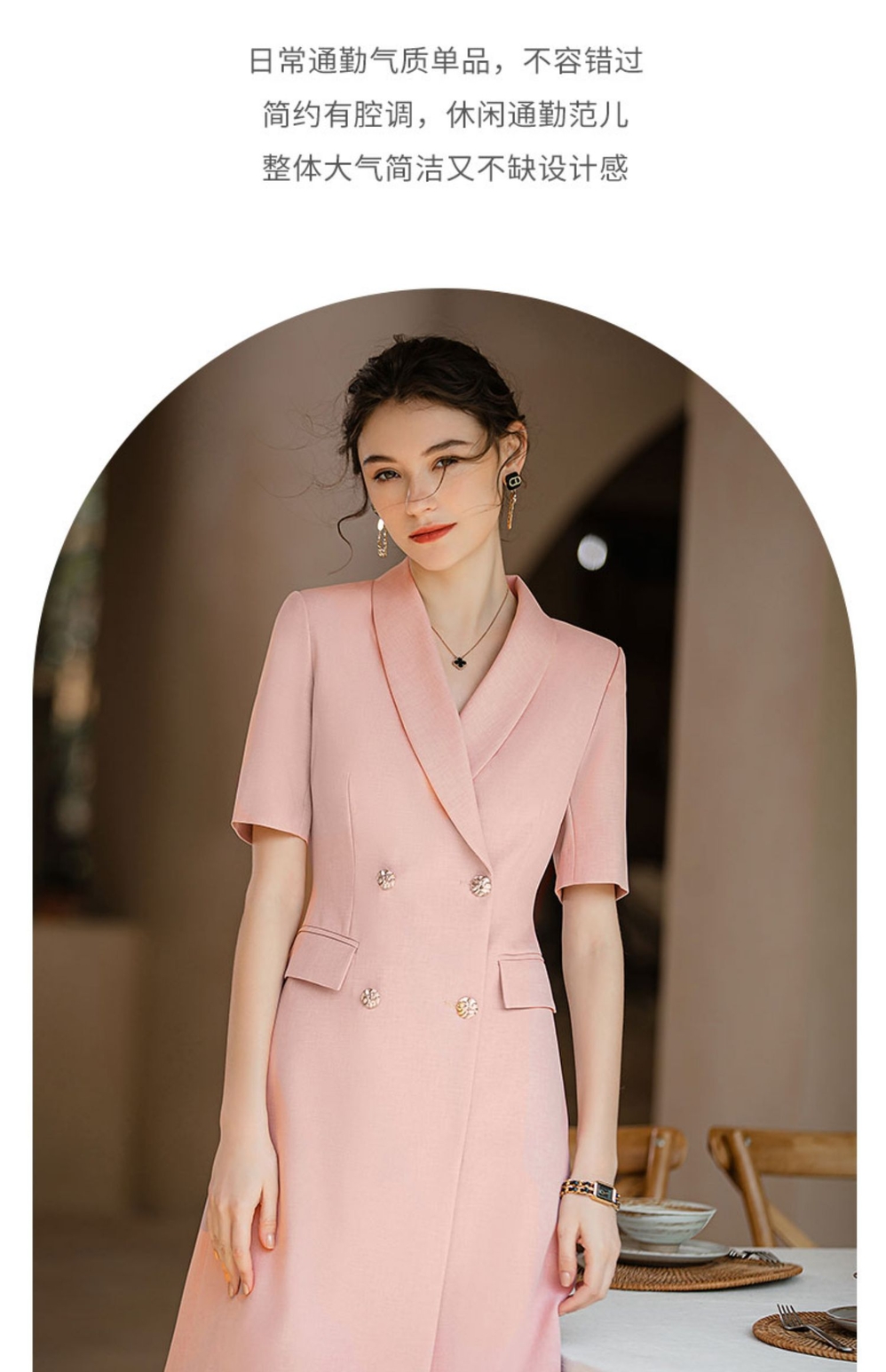 IWY/短袖粉色高级感连衣裙职业主持人面试录课正装气质收腰西装裙Q920
