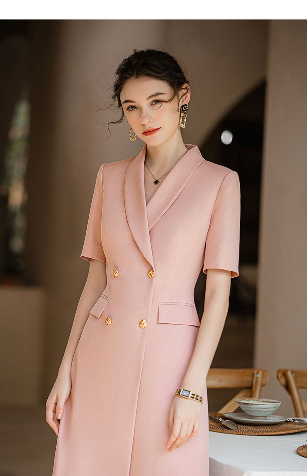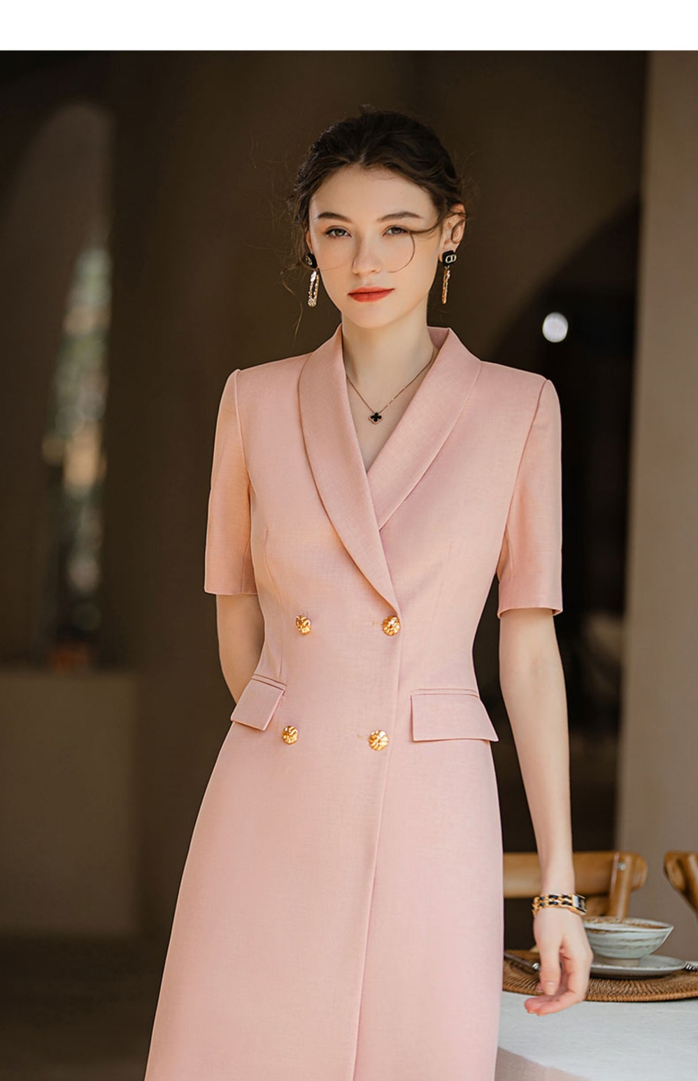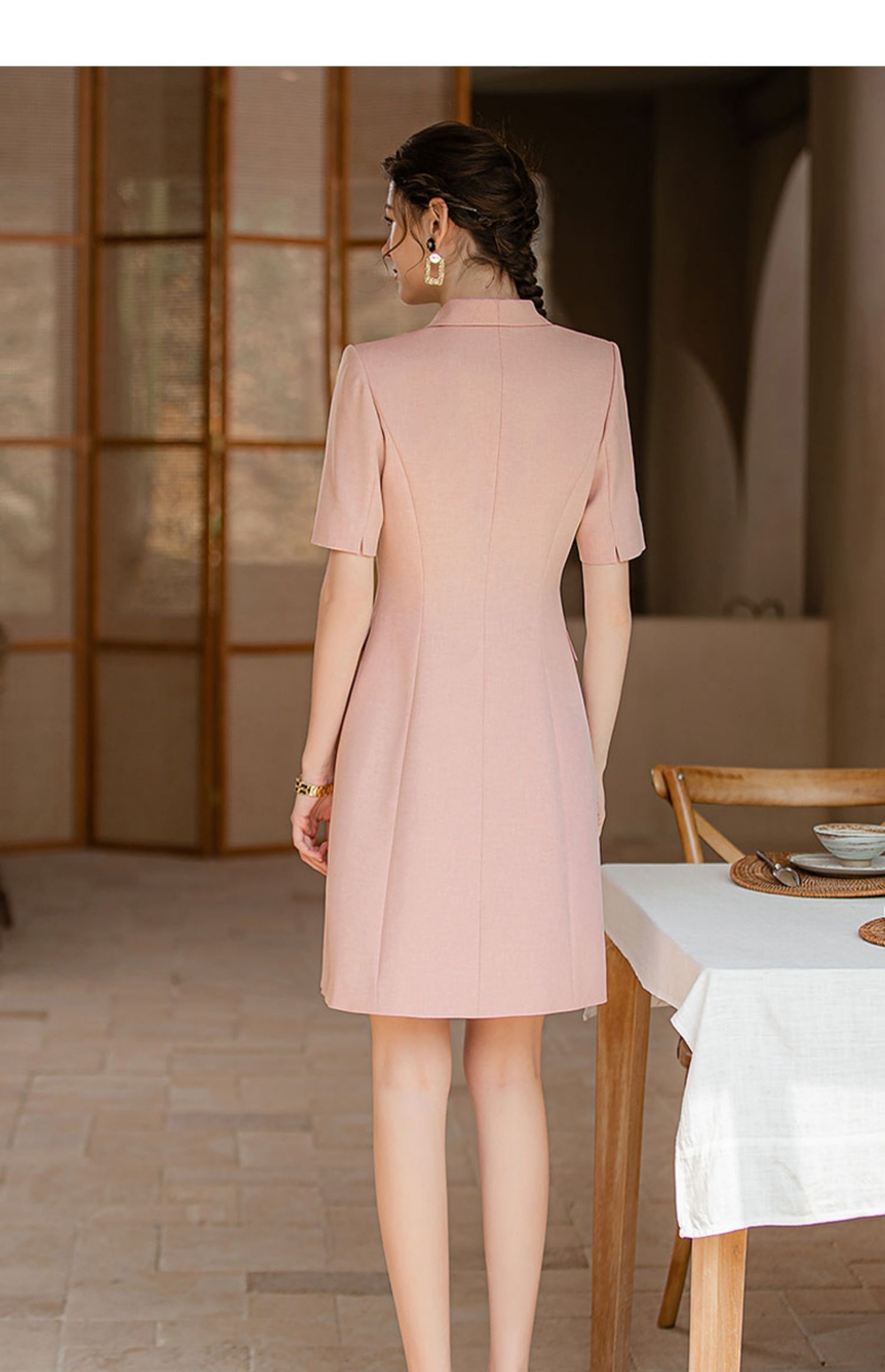 IWY/短袖粉色高级感连衣裙职业主持人面试录课正装气质收腰西装裙Q920