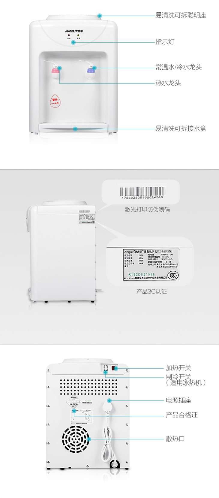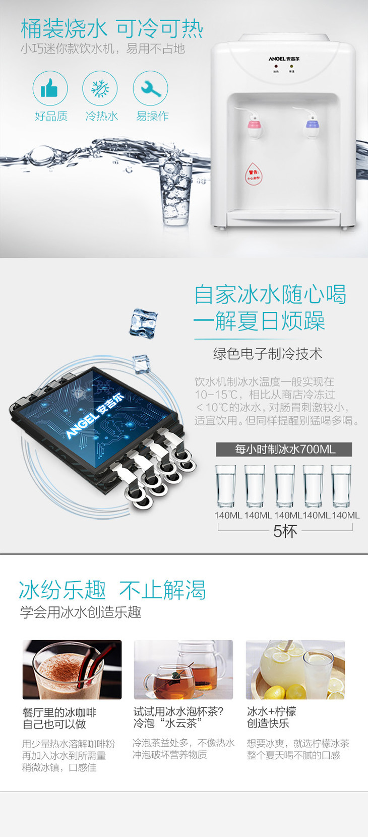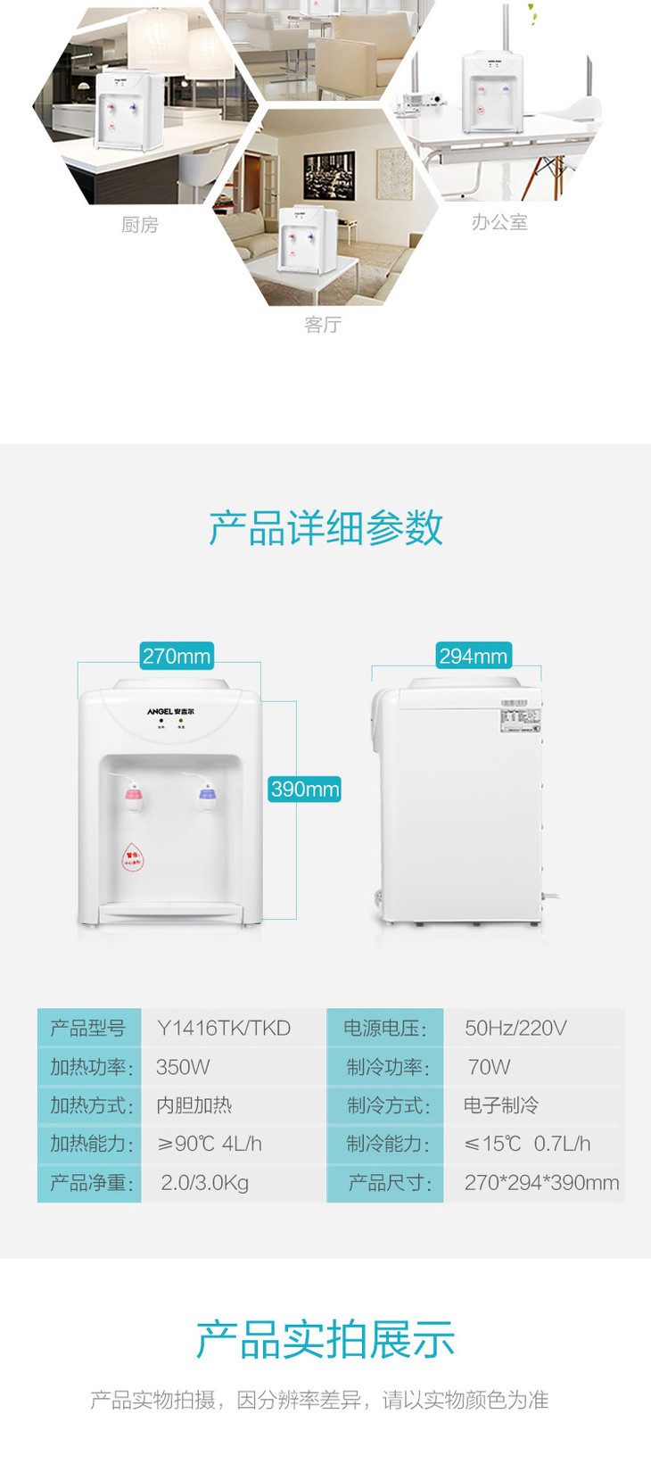 安吉尔Y1416TK台式饮水机温热款