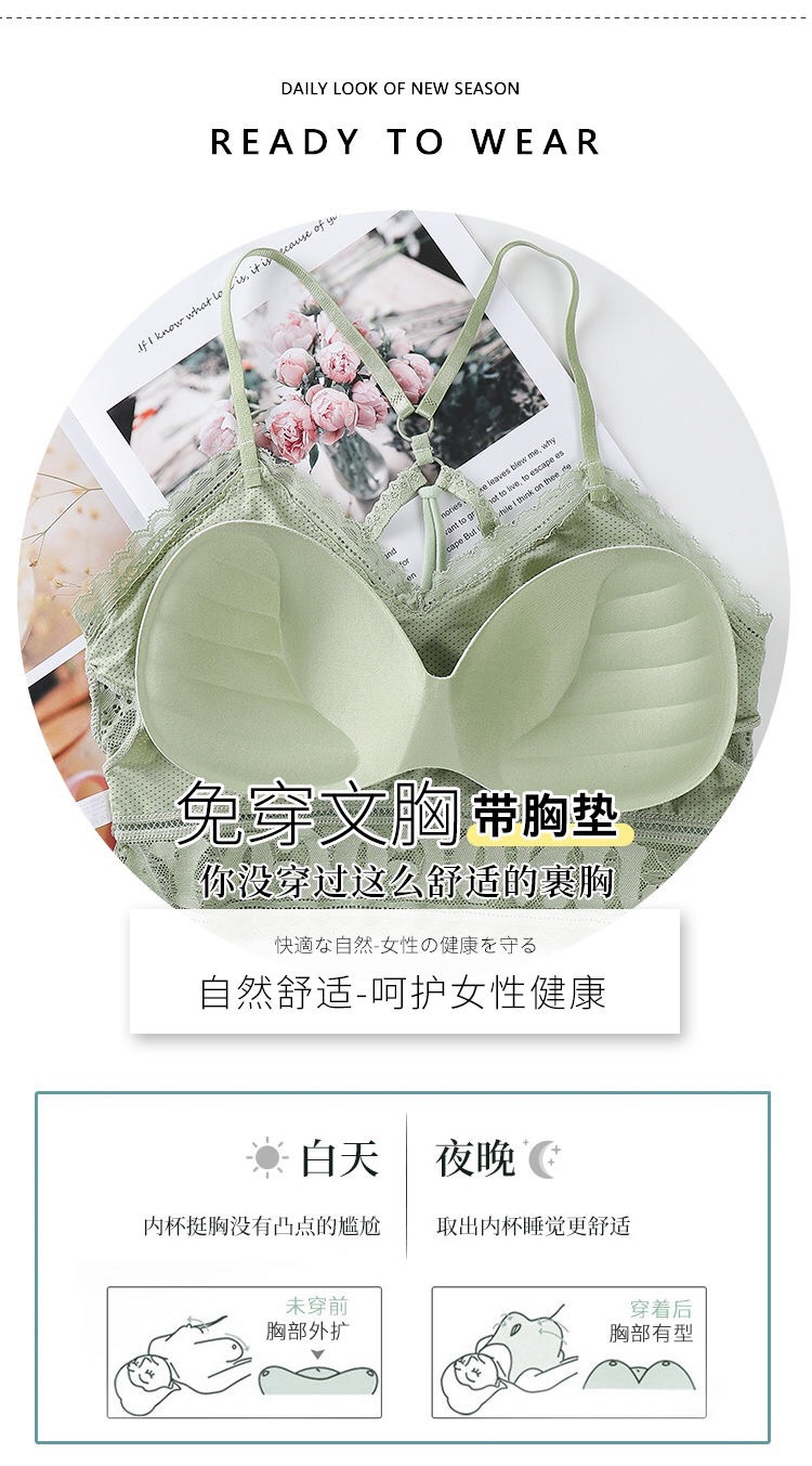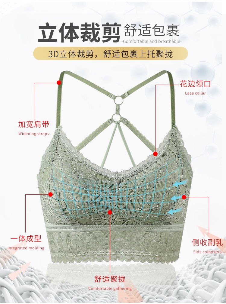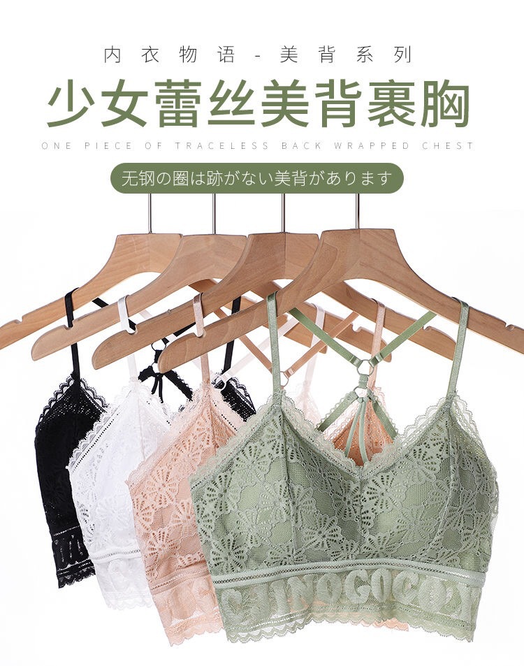 【明星同款 】妖精可可铂金款 新款美背吊带内衣奇迹蕾丝降落伞裹抹胸胸带胸垫防走光文胸七夕情人节