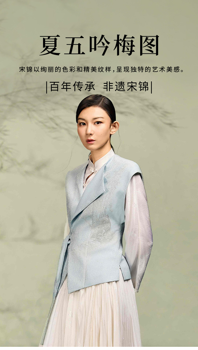 上久楷宋锦新中式轻奢女式马甲 夏五吟梅图 CY1045205012