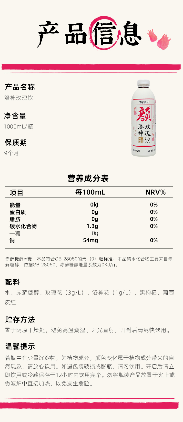 【可可满分 洛神玫瑰饮/石榴红茶/茉莉抹茶 1L/瓶】 两瓶组合装 云南洛神花,养颜茶的明星食材,释放酸甜果香和花青素;新鲜石榴和优质红茶,清新茉莉抹茶,轻盈无负担
