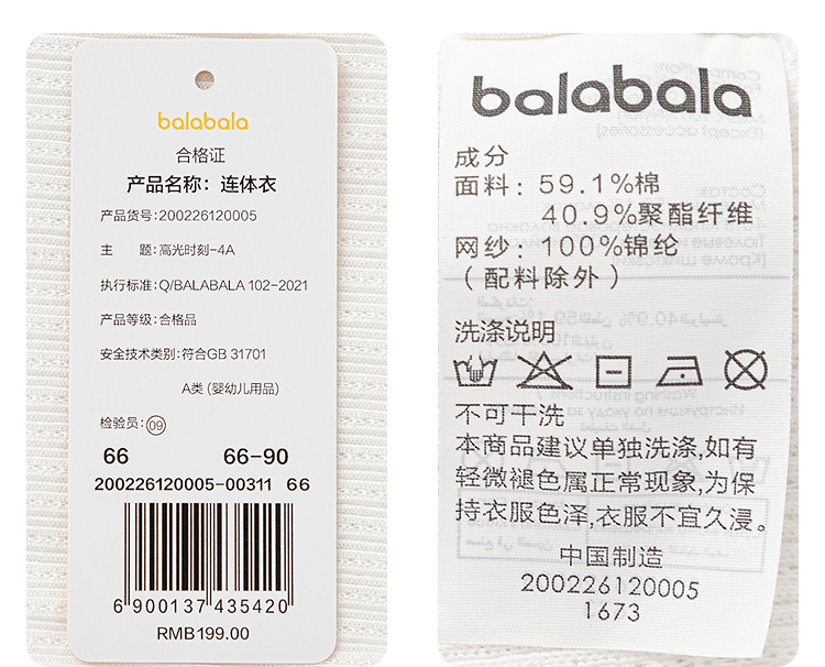 【商场同款】巴拉巴拉宝宝连体衣婴儿抱衣女童2026新款网纱拼接萌