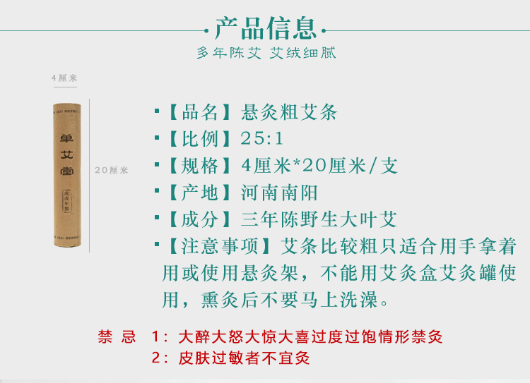 单艾堂 4cm悬灸粗艾条1支 25:1