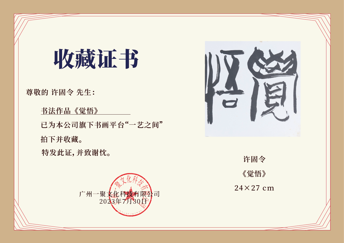 许固令《觉悟》书法原作27CM*24CM 手写卡纸书法作品【SF0727】