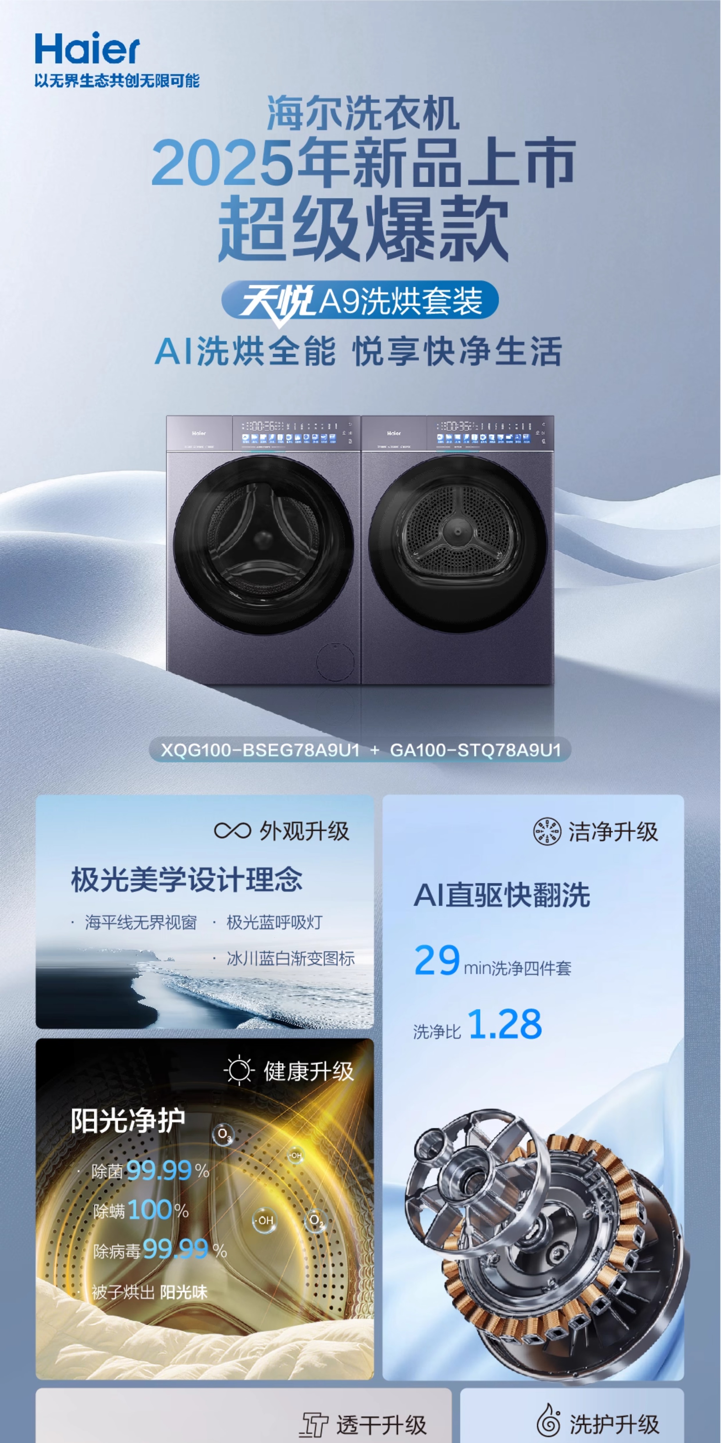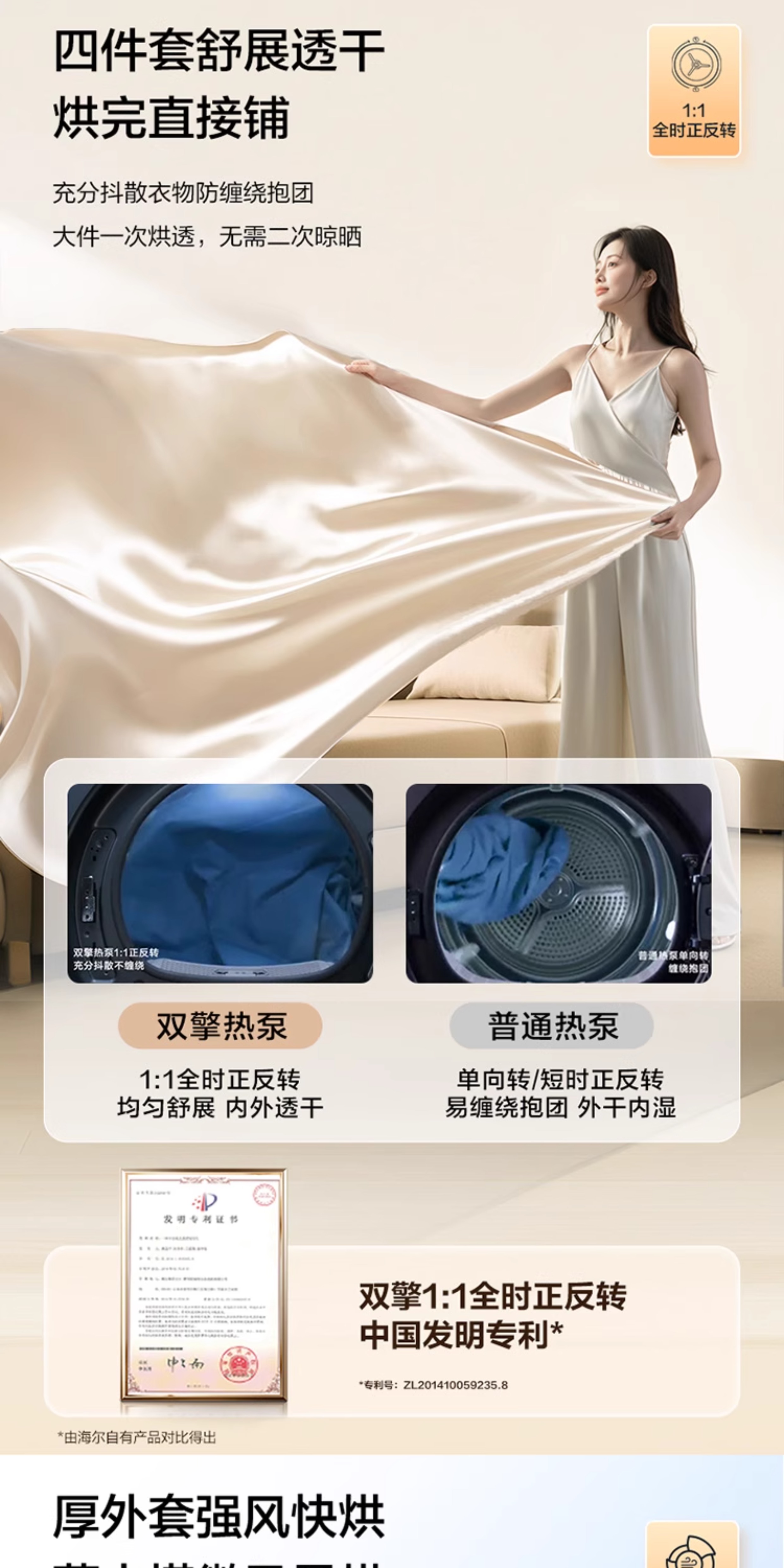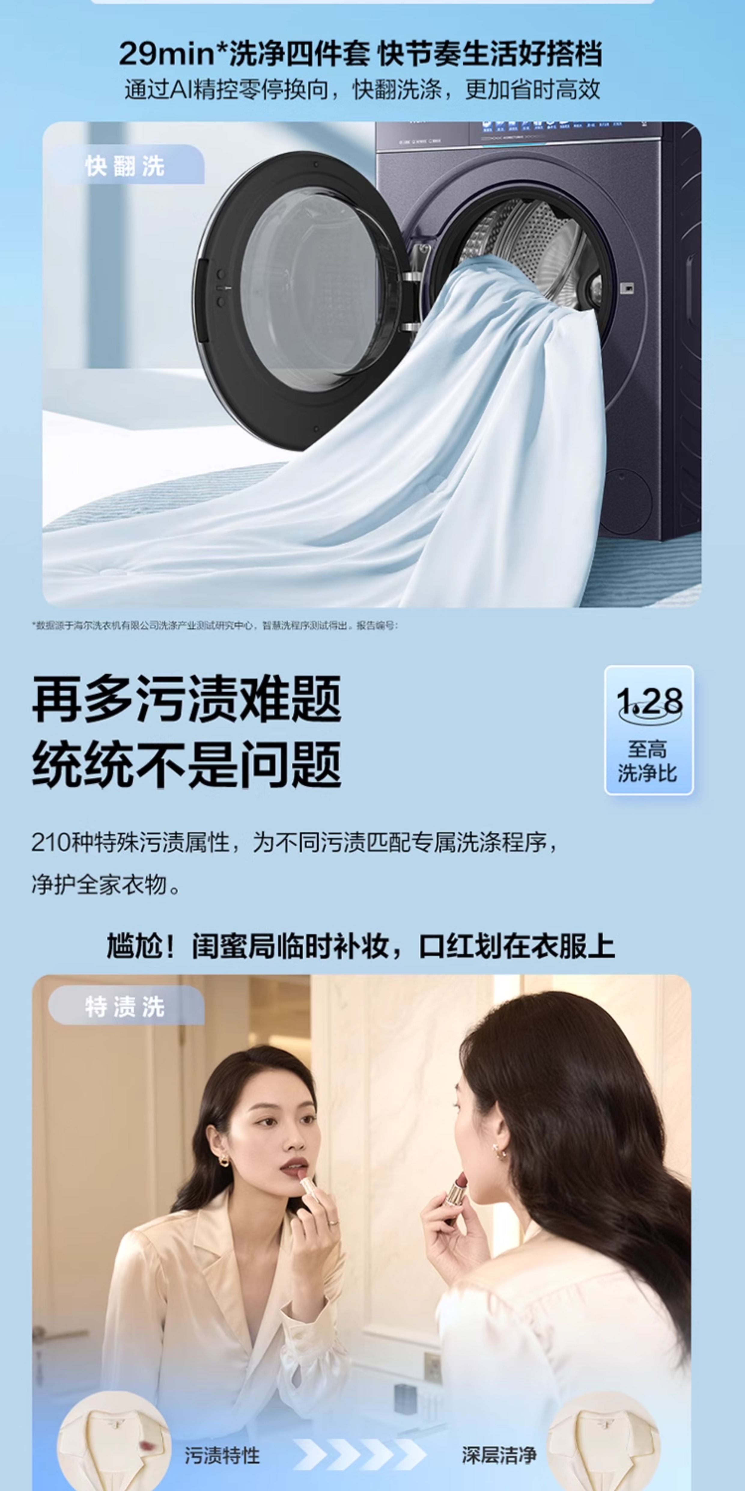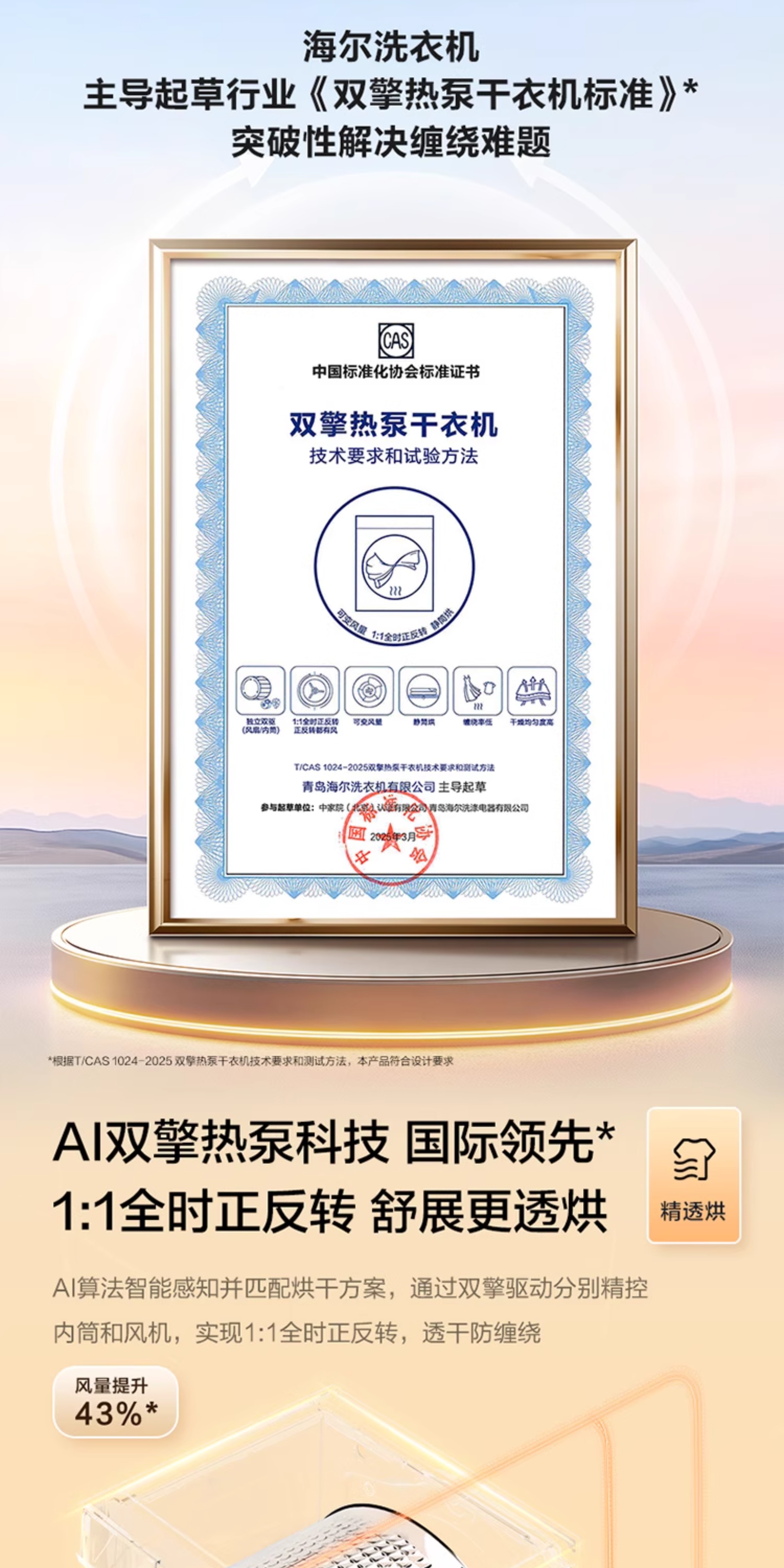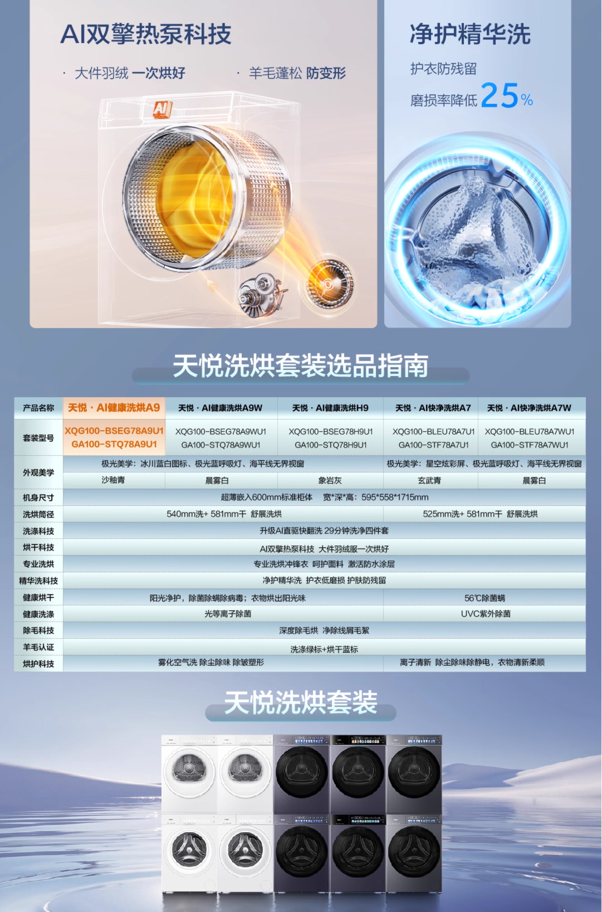 海尔天悦洗衣机直驱滚筒10KG+双擎热泵烘干机套装78A9