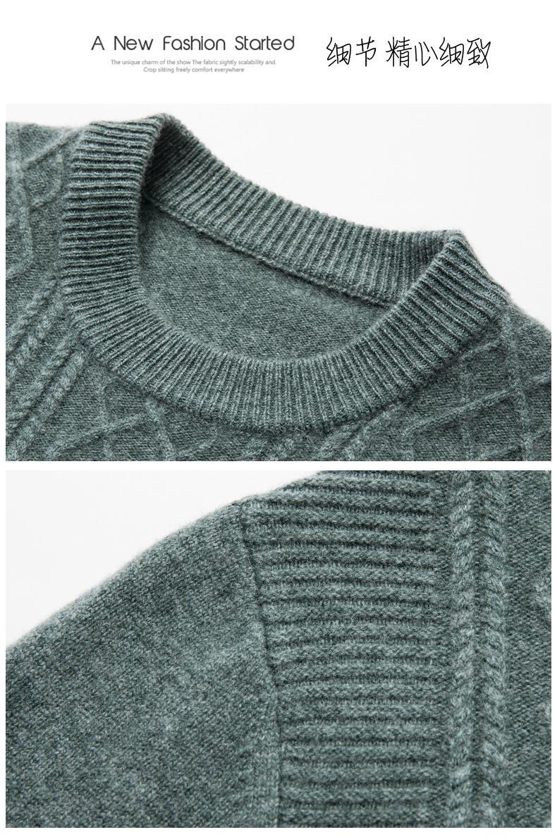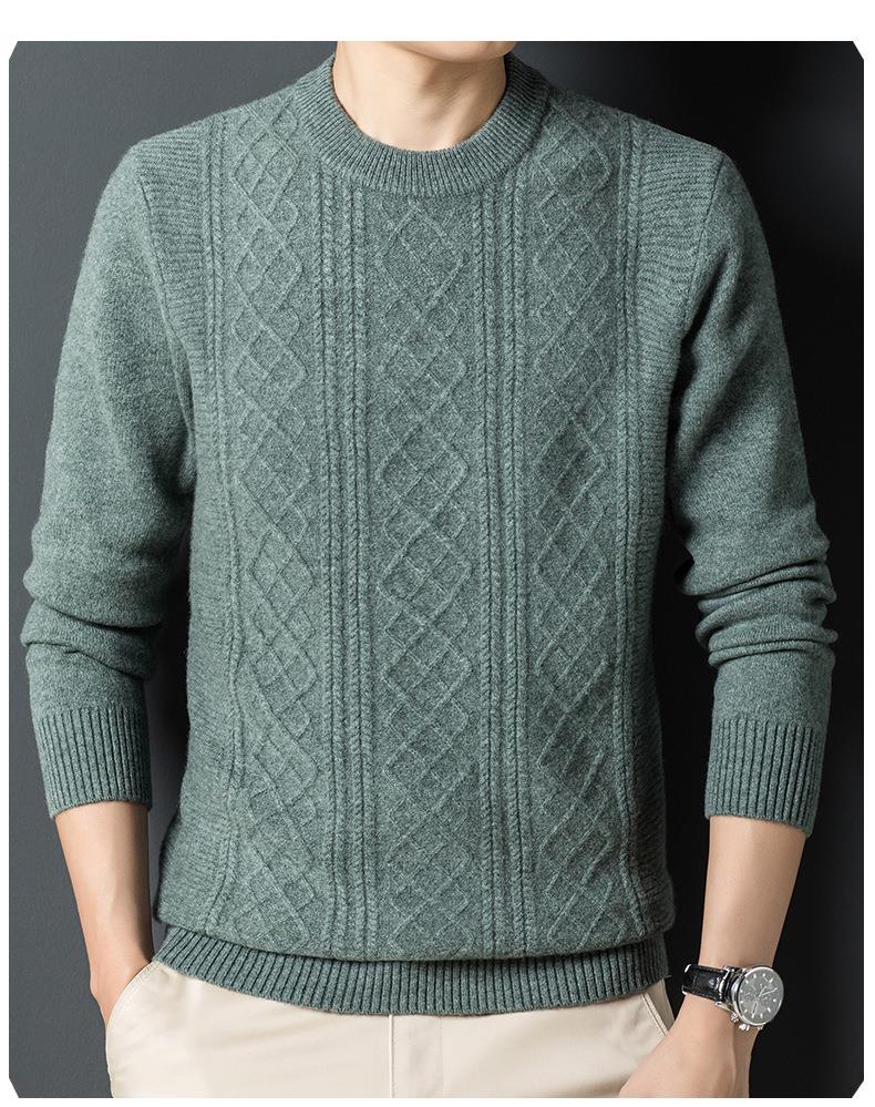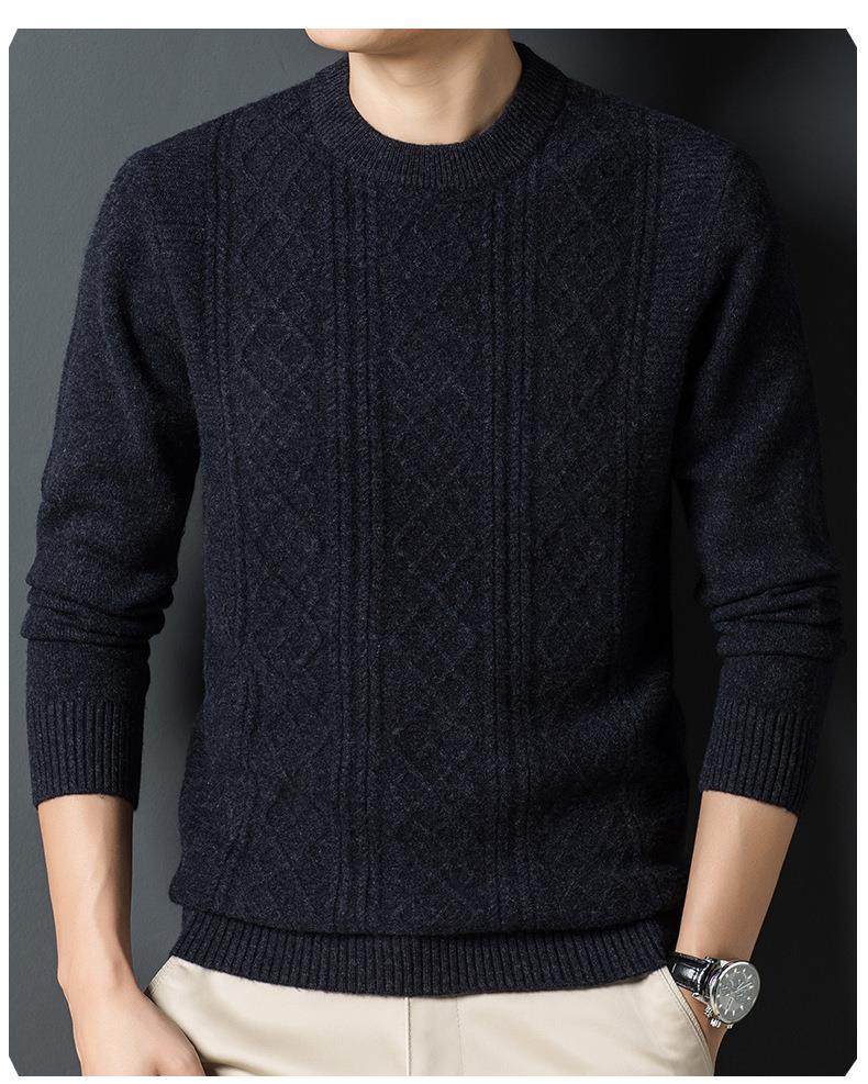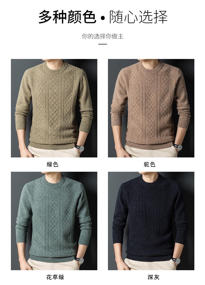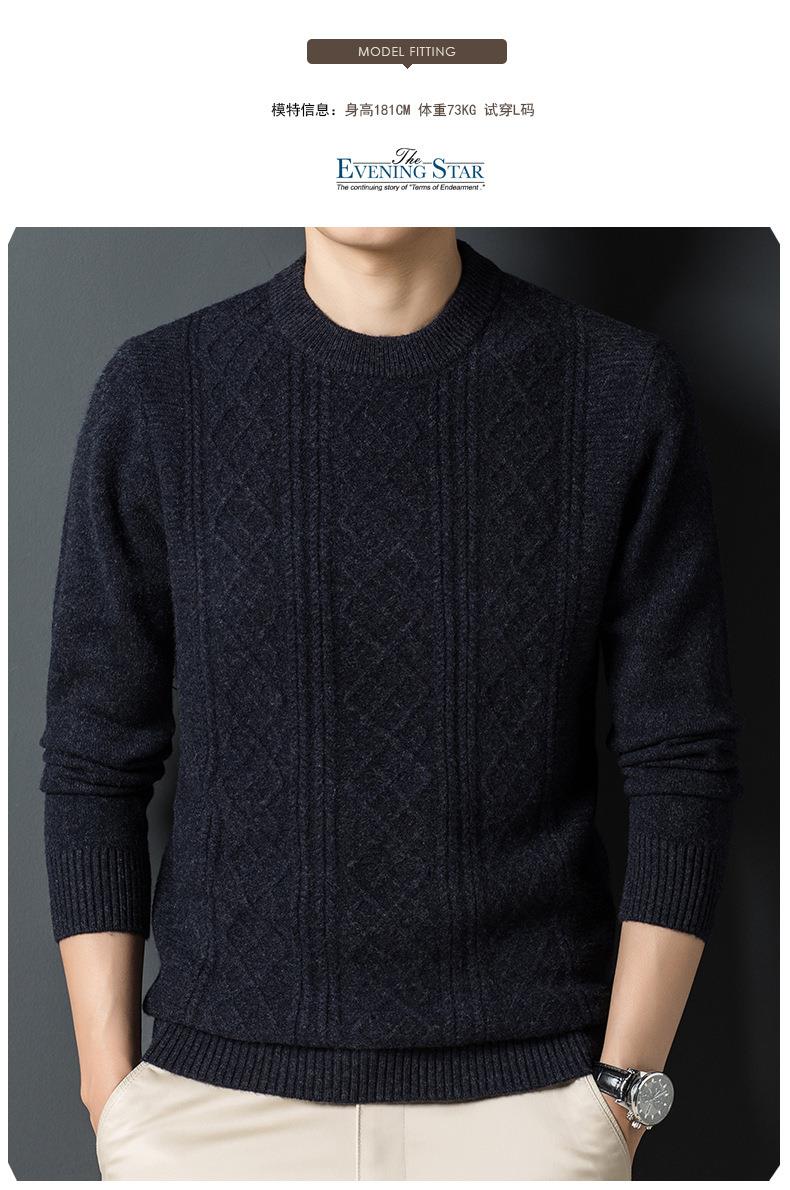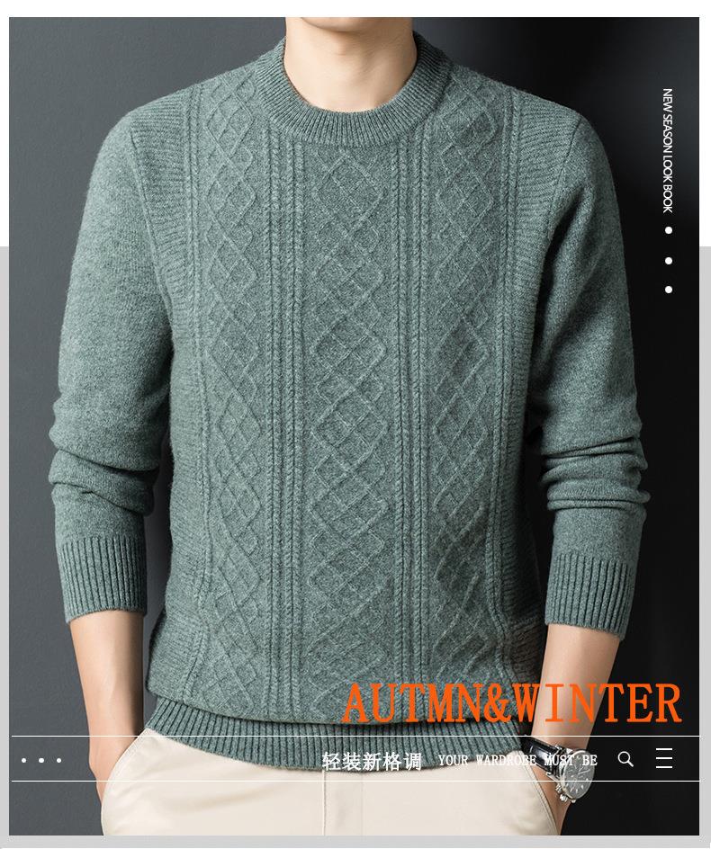 纯羊毛毛衣男士秋冬季新款圆领提花加厚保暖百搭打底羊毛衫男