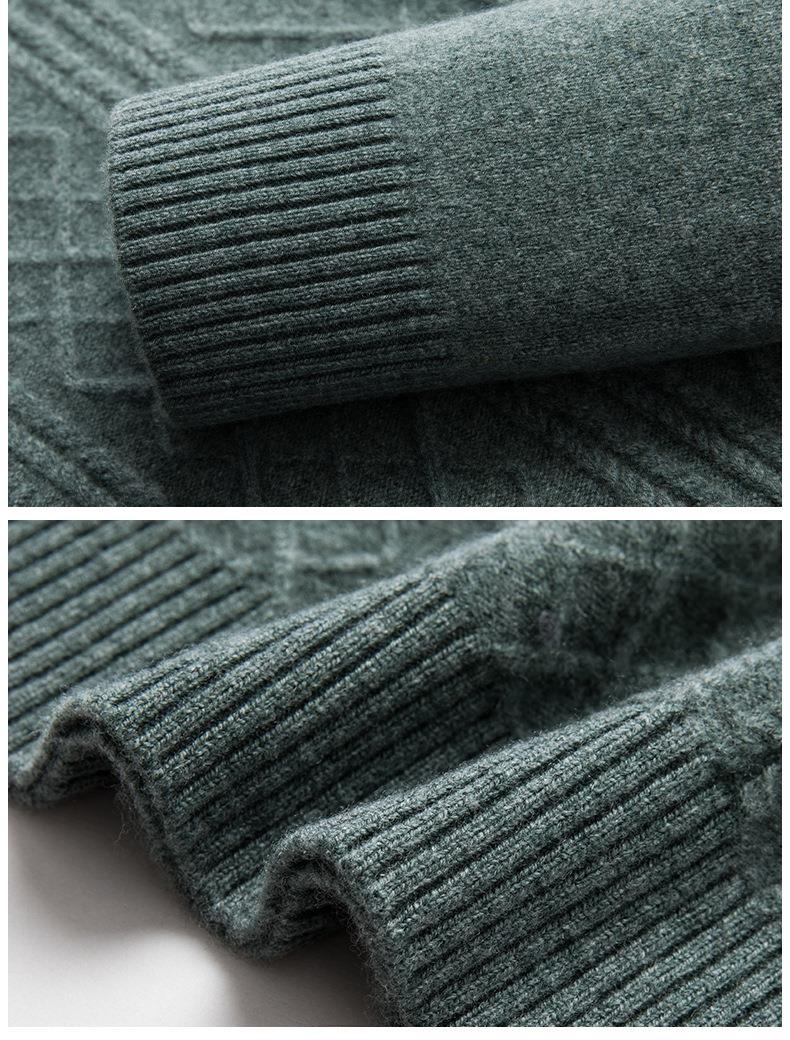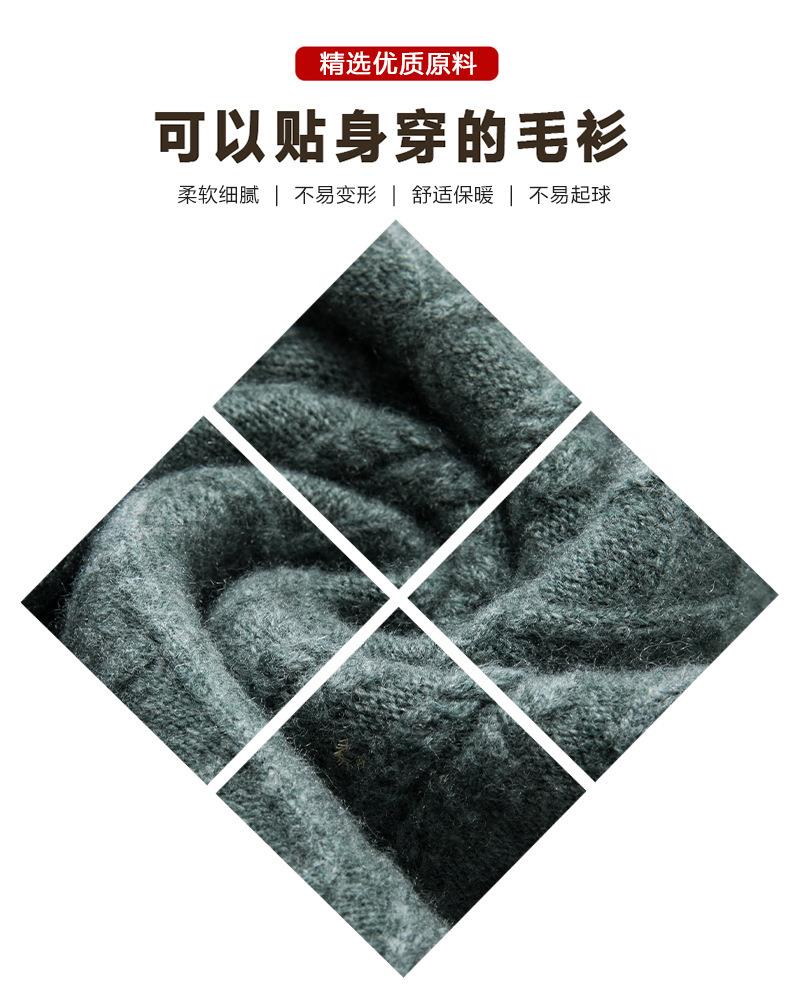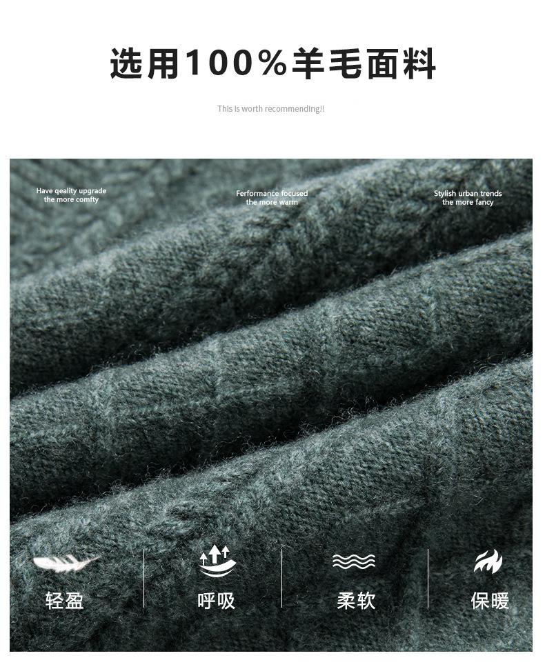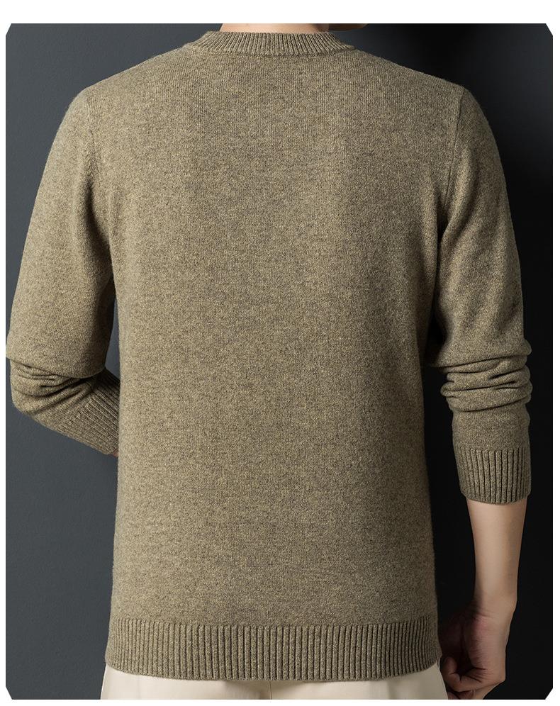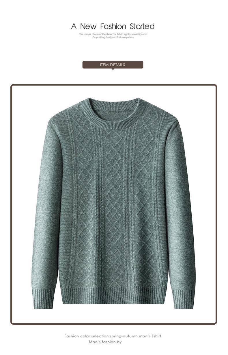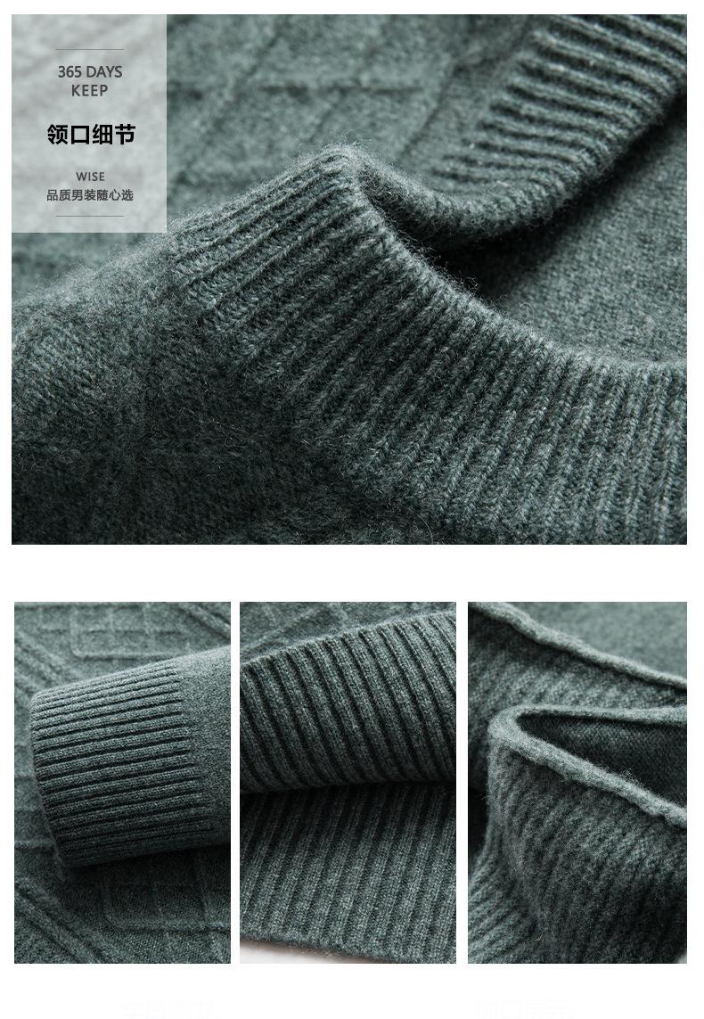 纯羊毛毛衣男士秋冬季新款圆领提花加厚保暖百搭打底羊毛衫男