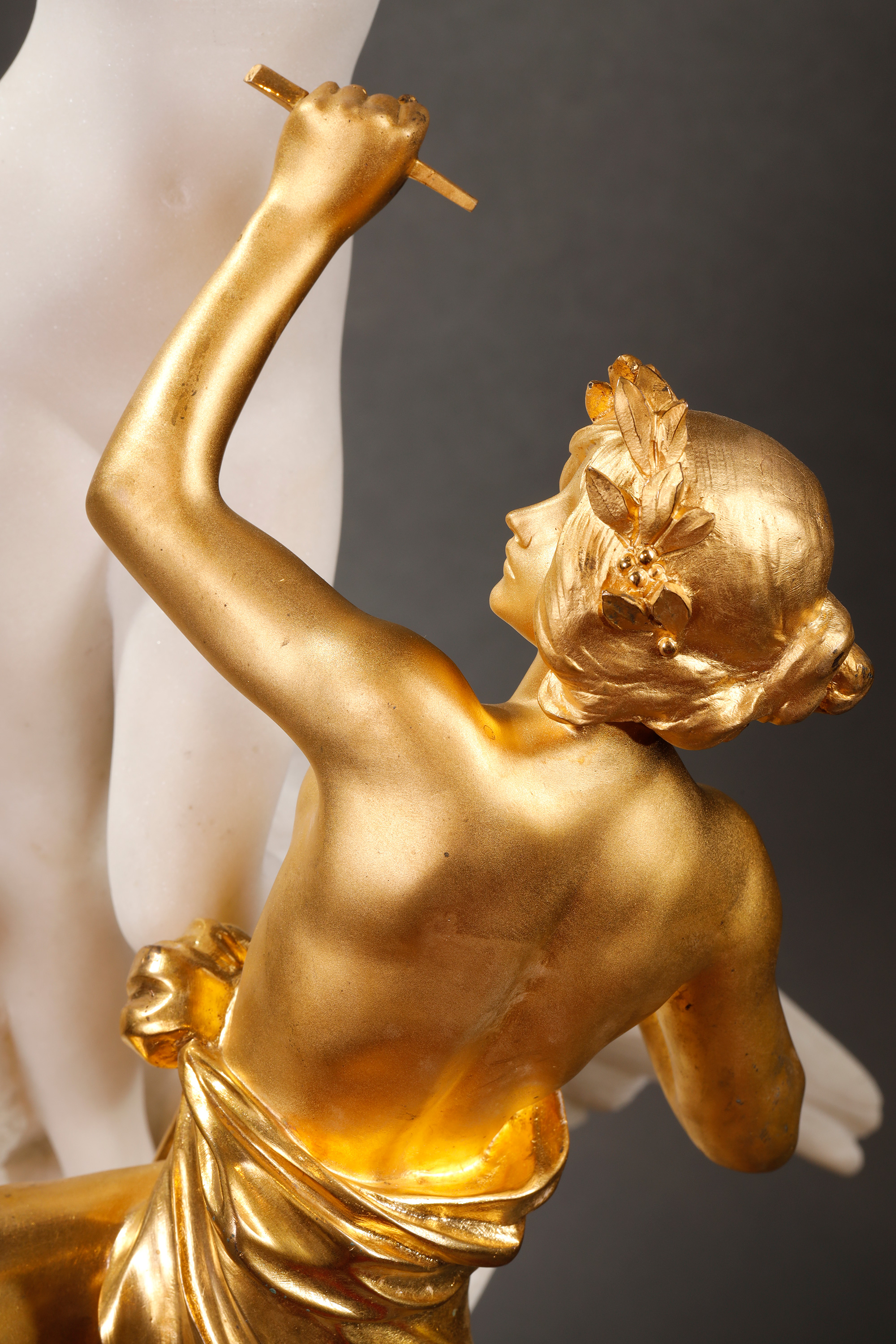 独角鹿西洋古董1850-1870年代法国拿破仑三世时期出品铜鎏金大理石群雕作品《雕塑的寓言》