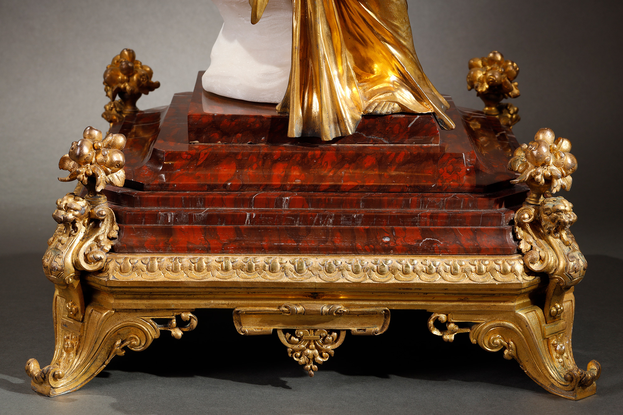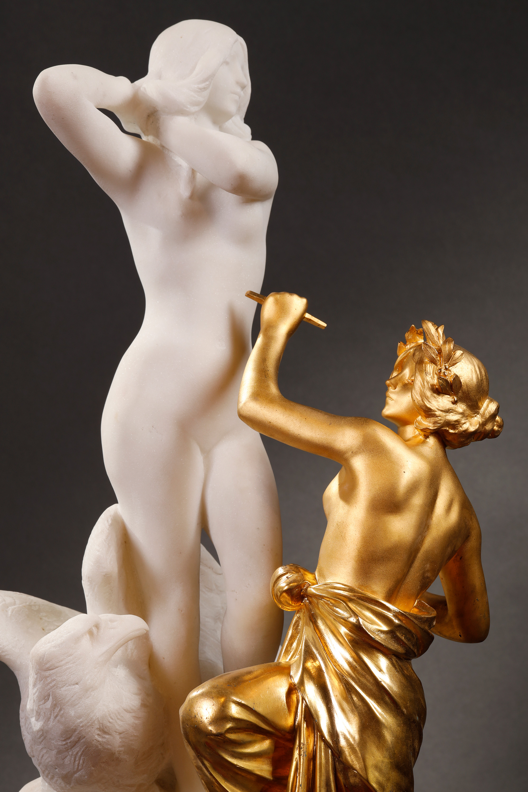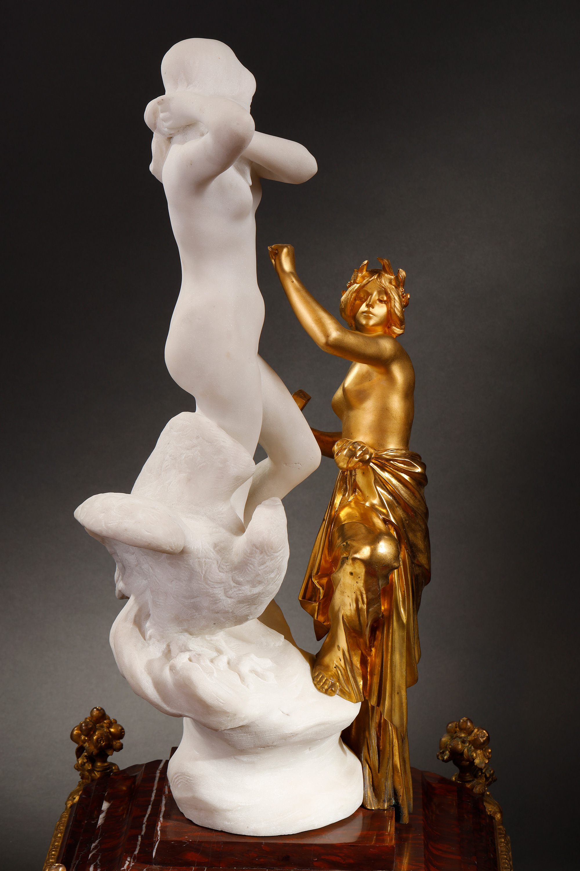1850-1870年代法国拿破仑三世时期出品铜鎏金大理石群雕作品《雕塑的寓言》
