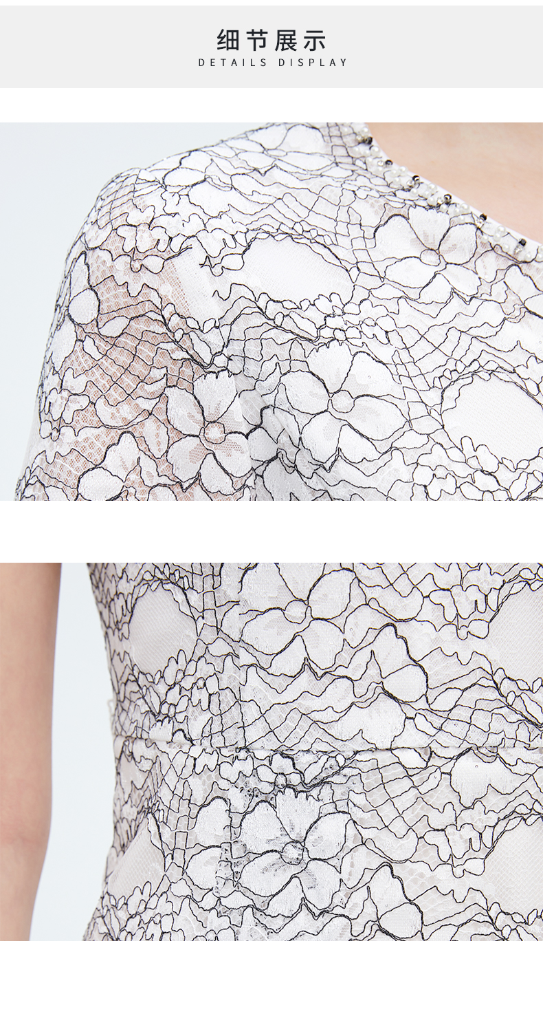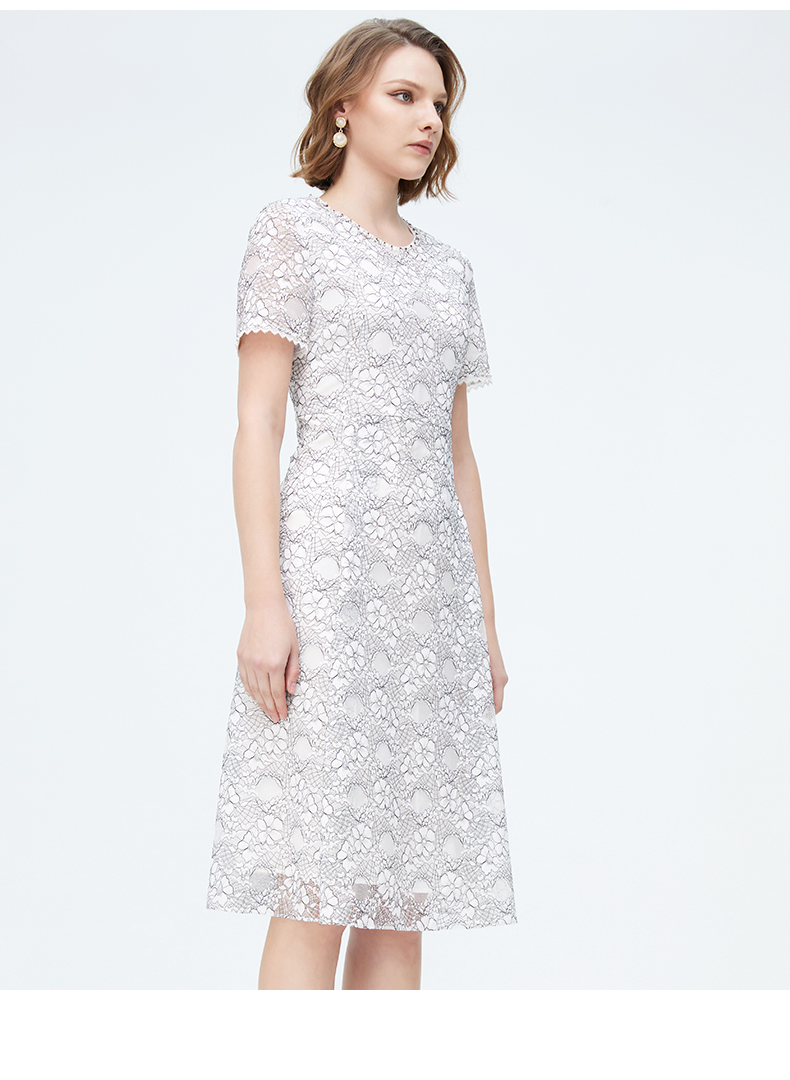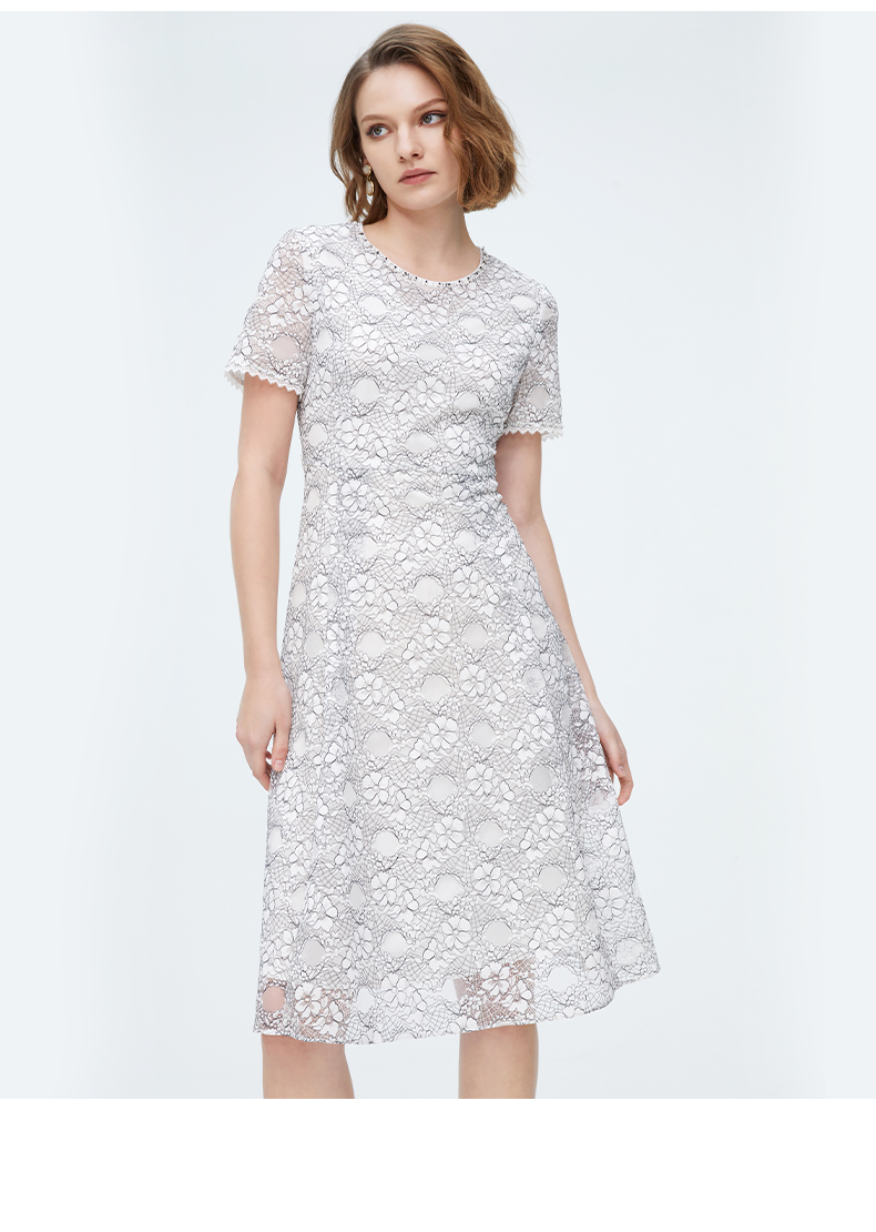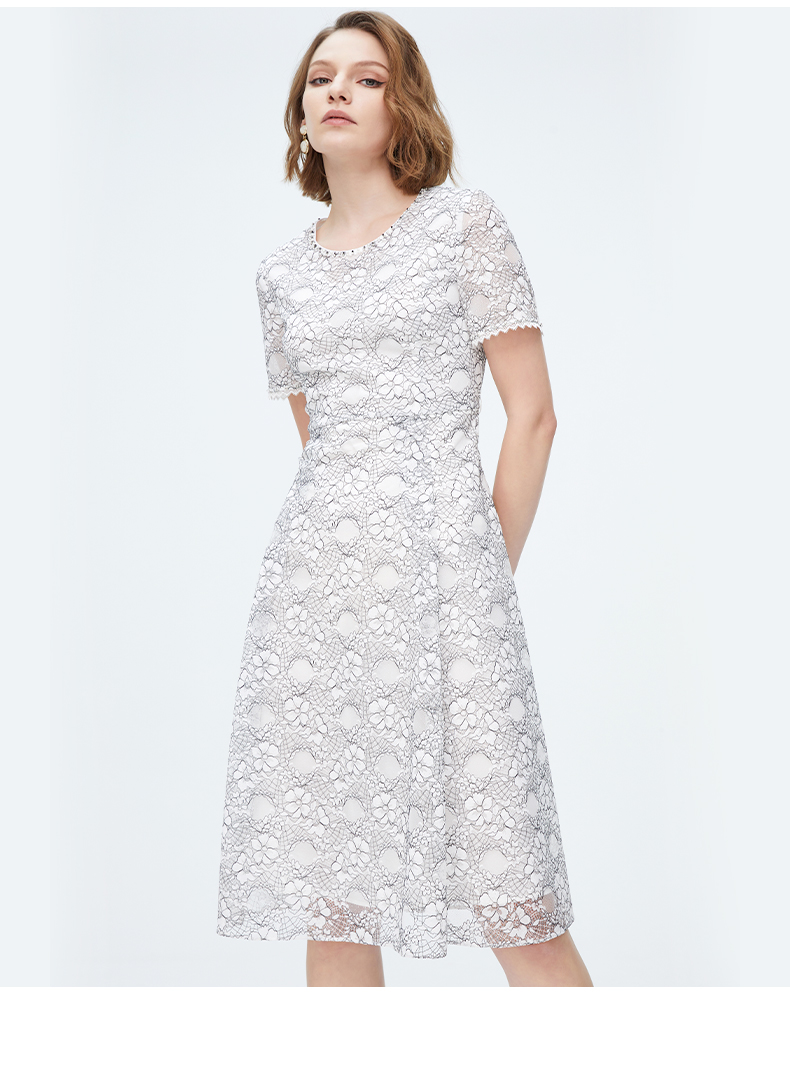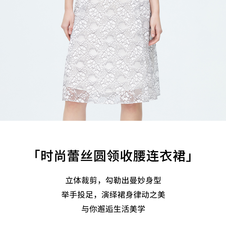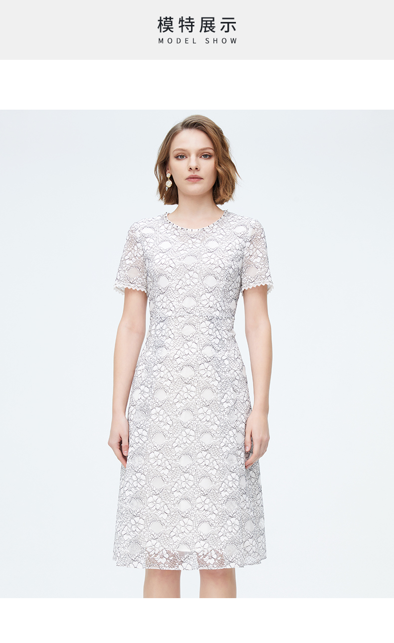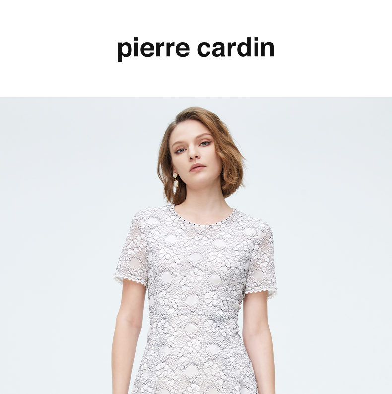 皮尔卡丹女装夏季新款蕾丝拼接淑女连衣裙P1248D1055L3
