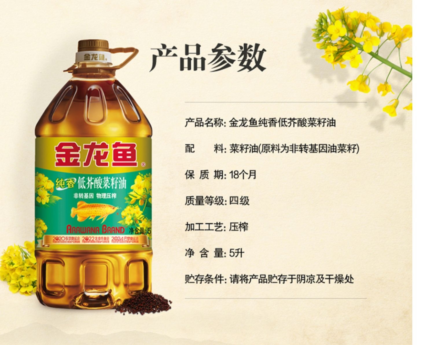 金龙鱼非转纯香菜籽油5L【BC】【JLY】