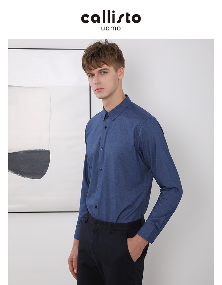 callisto蓝色全棉长袖衬衫 STSTL033C