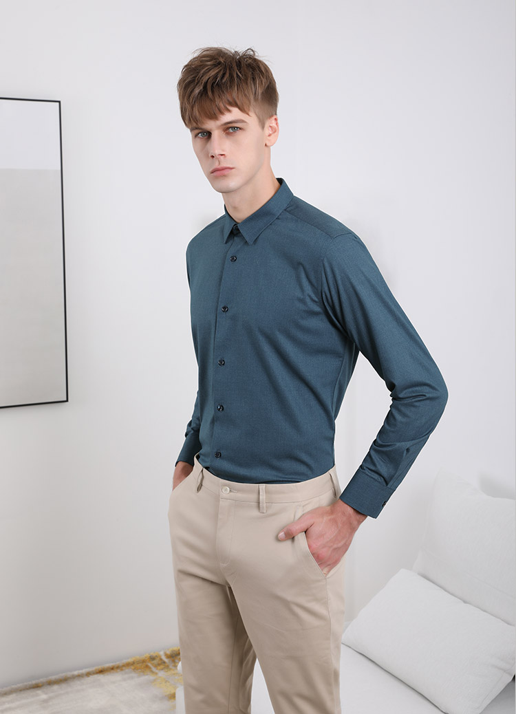 callisto混蓝再生纤维素纤维混纺衬衫 FPSTL0502T