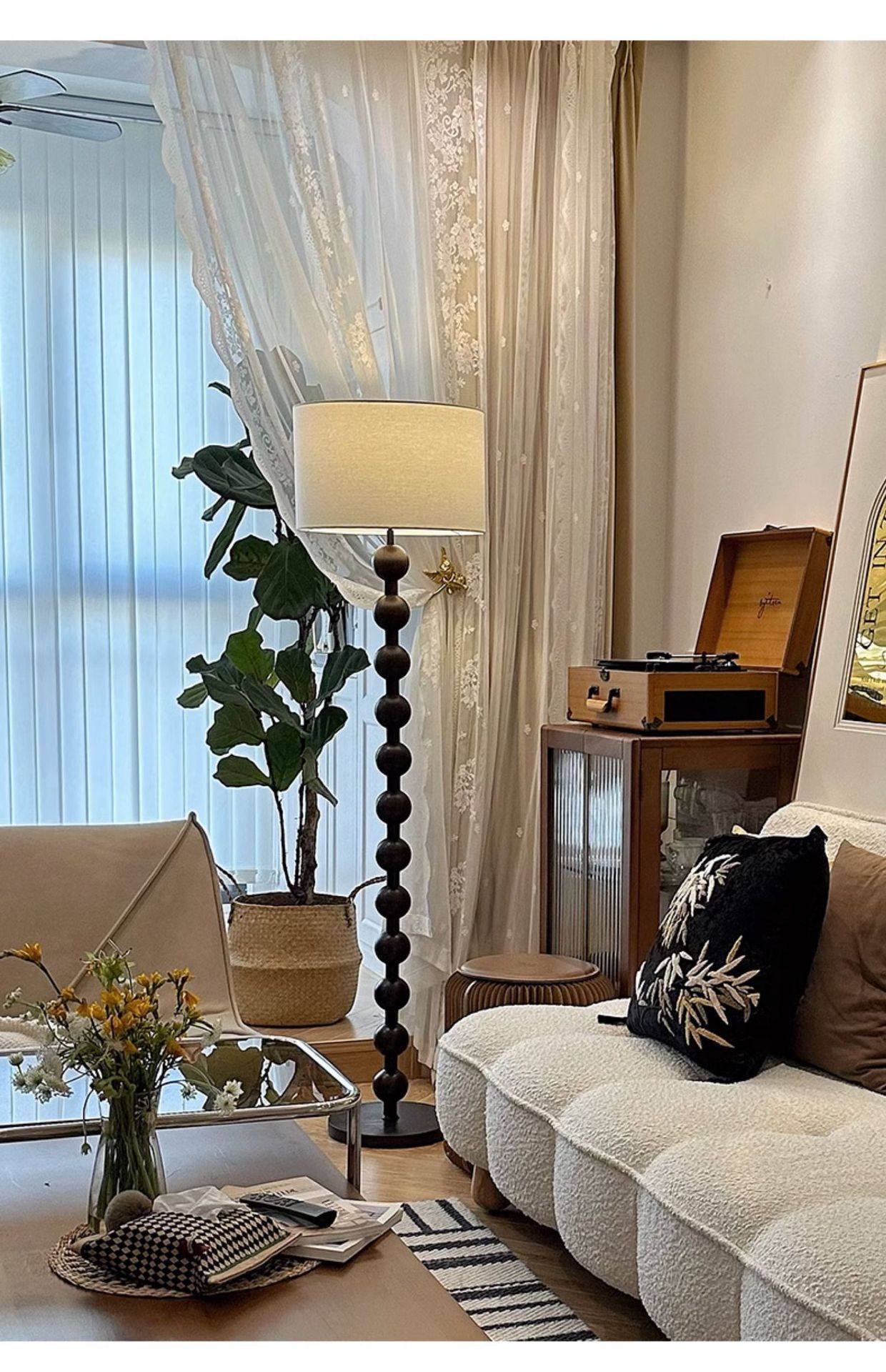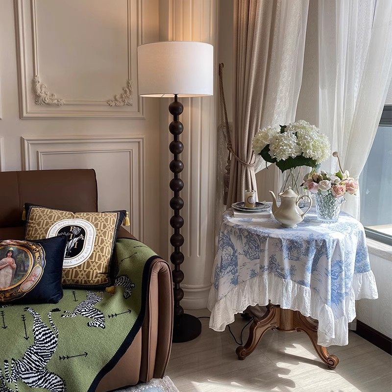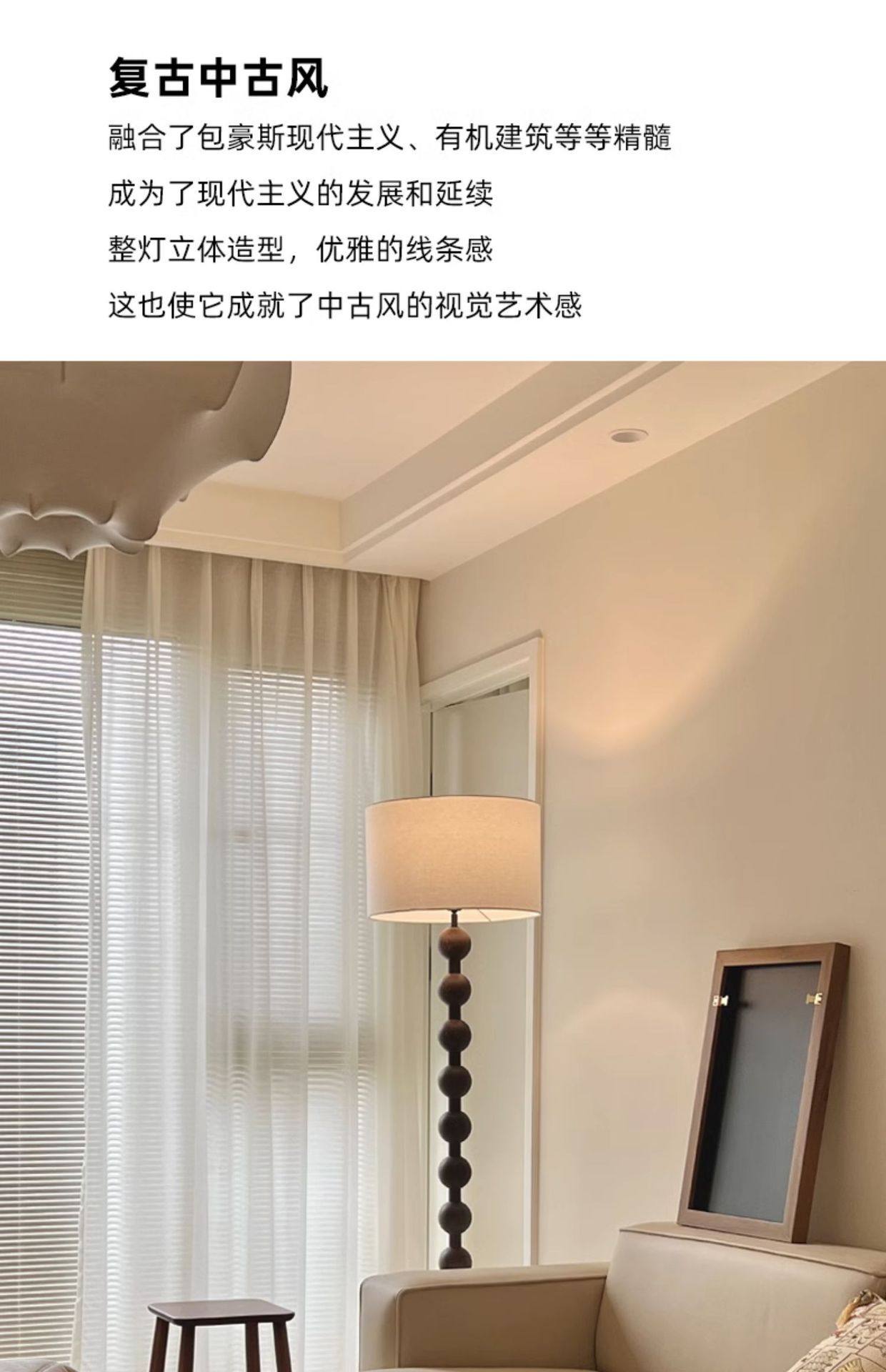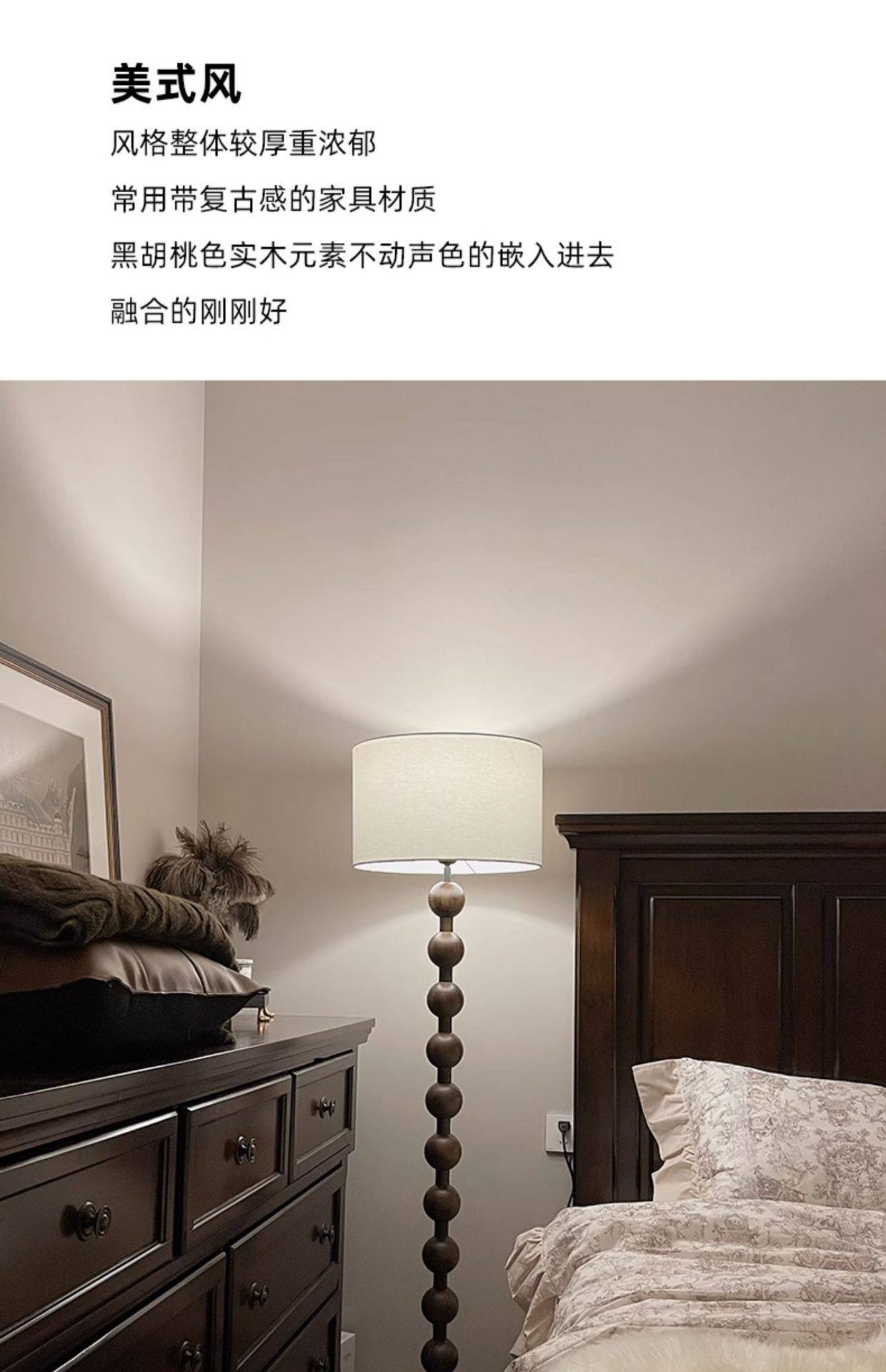 法式中古客厅落地灯美式复古实木卧室民宿灯具侘寂风阅读落地台灯