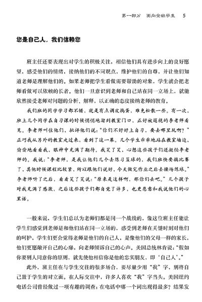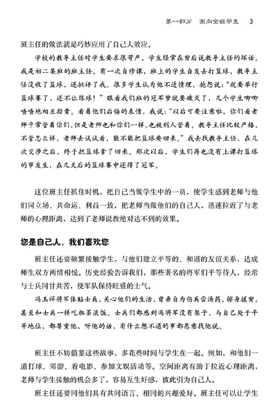 作者在写作时力求做到“顶天立地”:所谓“顶天”,说的是每个心理效应都取自心理学的实验和理论,上连科学的殿堂;所谓“立地”,说的是对这些心理效应的应用来自真实的班主任成功经验,下接实践的地气。