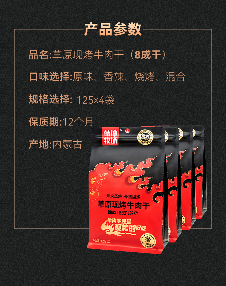 【蒙坤牧场】现烤牛肉干125g*4(简装包)