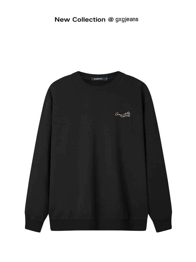 【3色可选】gxgjeans男装 秋季热卖黑色套头刺绣圆领卫衣男