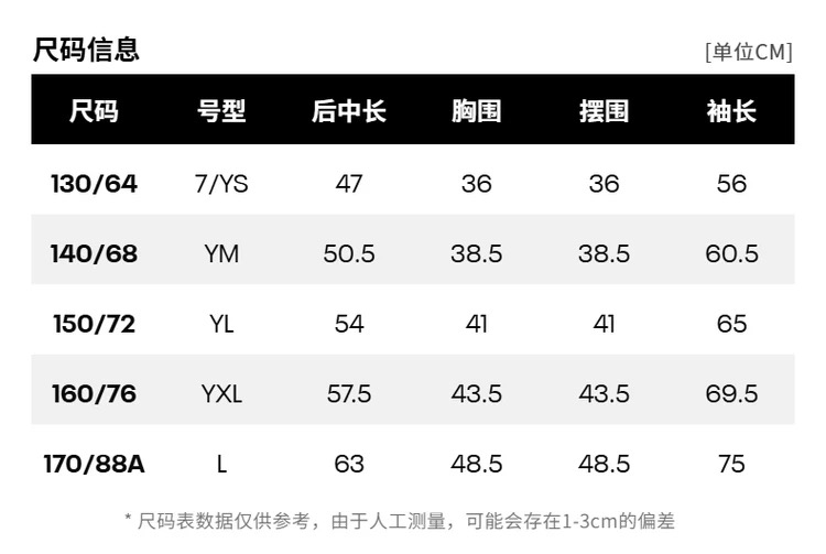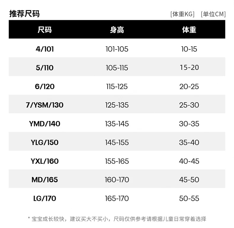 【尺码】130-170