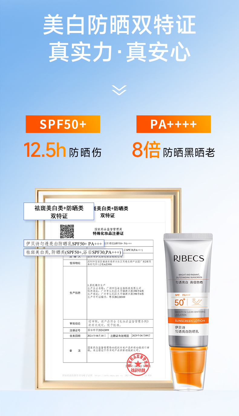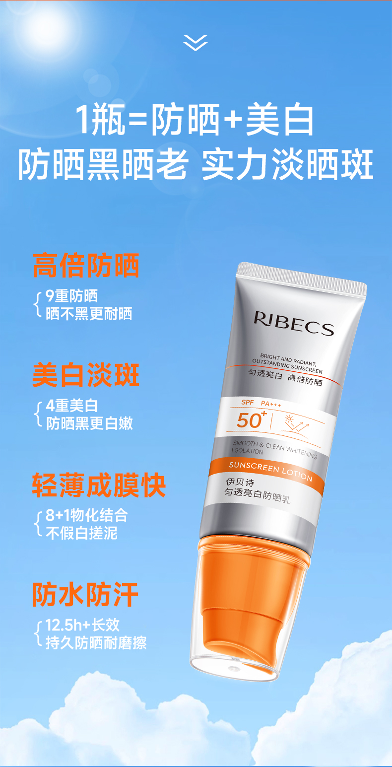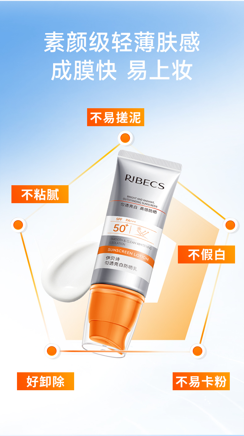 【官方】伊贝诗匀透亮白防晒乳 SPF50 + PA+++ 清爽户外军训美白隔离防晒霜官方正品