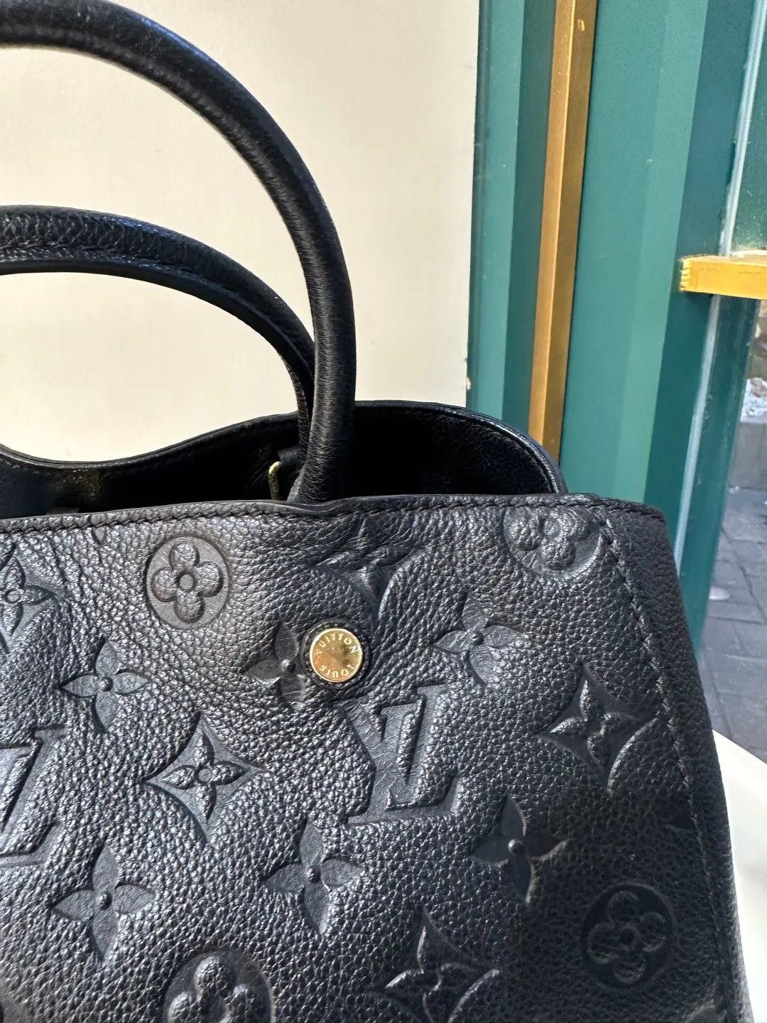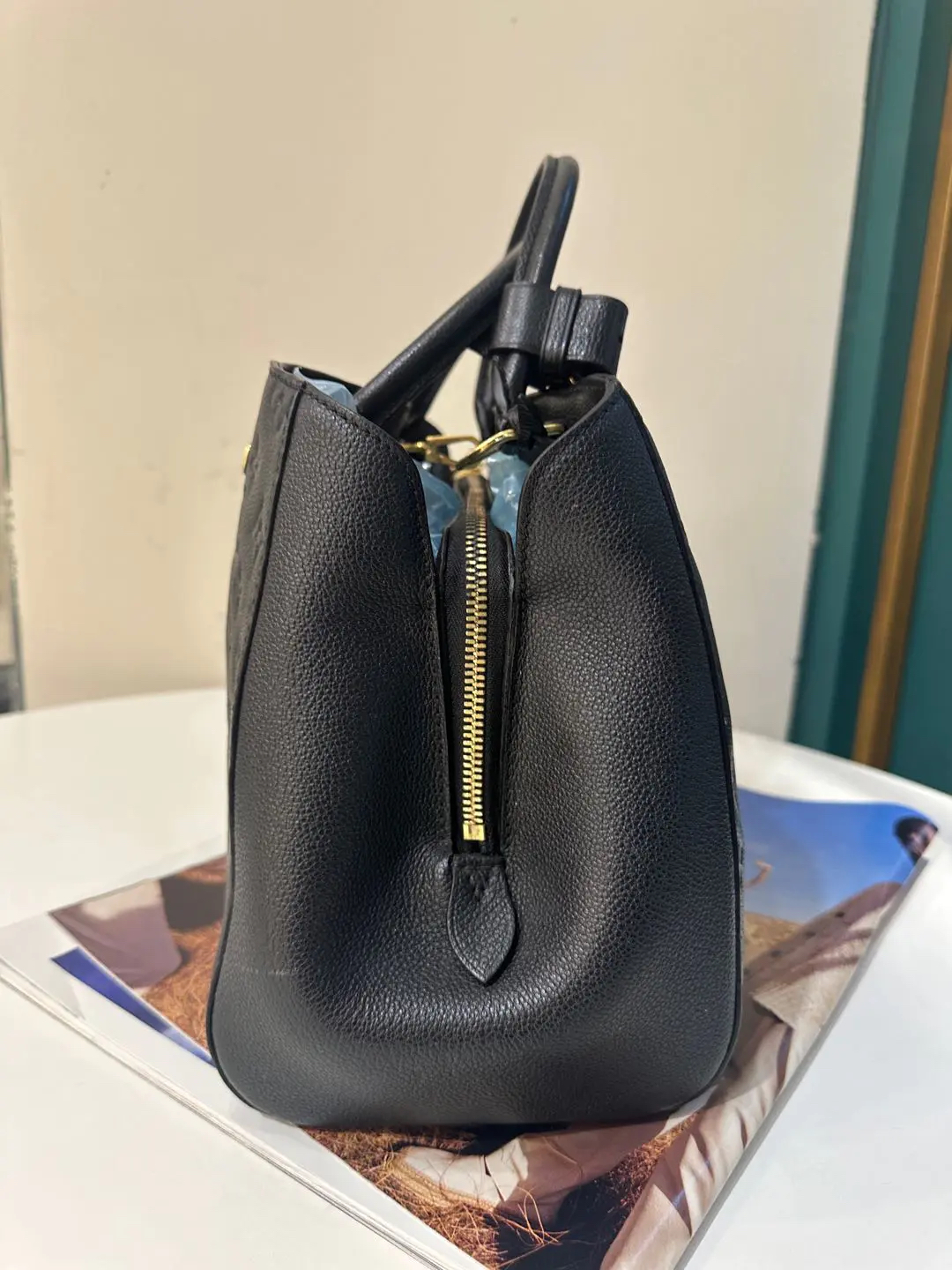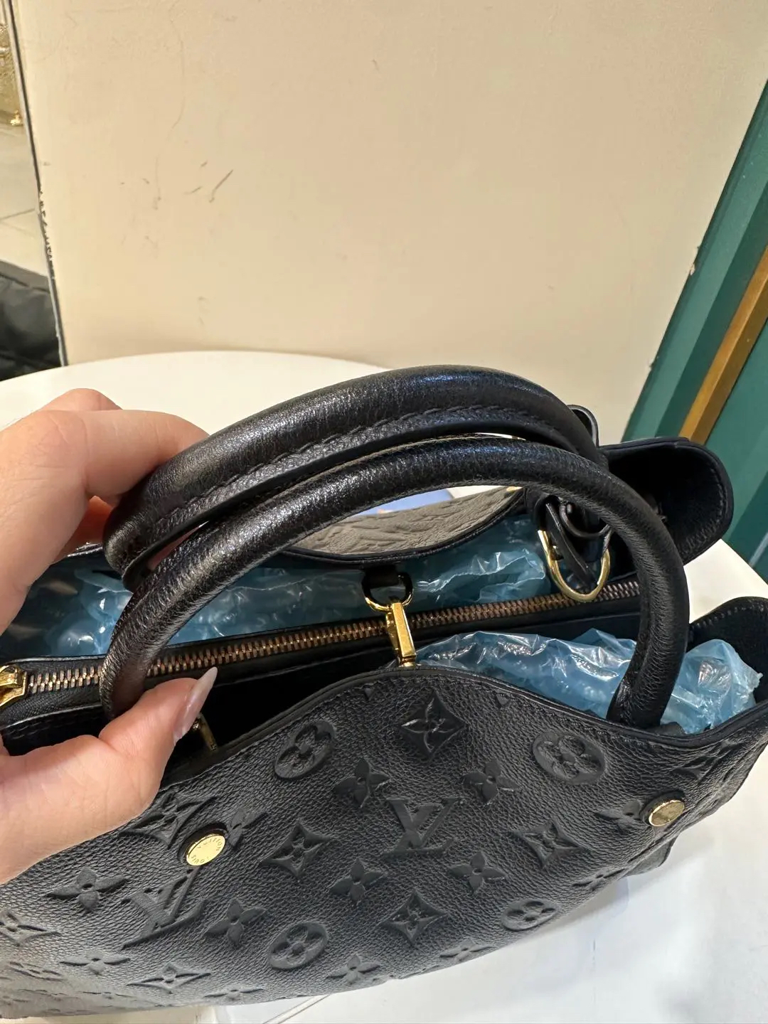 【商品详情】正品二手 LV 蒙田 中号 黑色 压纹牛皮 手提 单肩包🪄 95新 30x25 配件:肩带。金属正常使用感。低调内敛的美 黑色经典不过时🧸