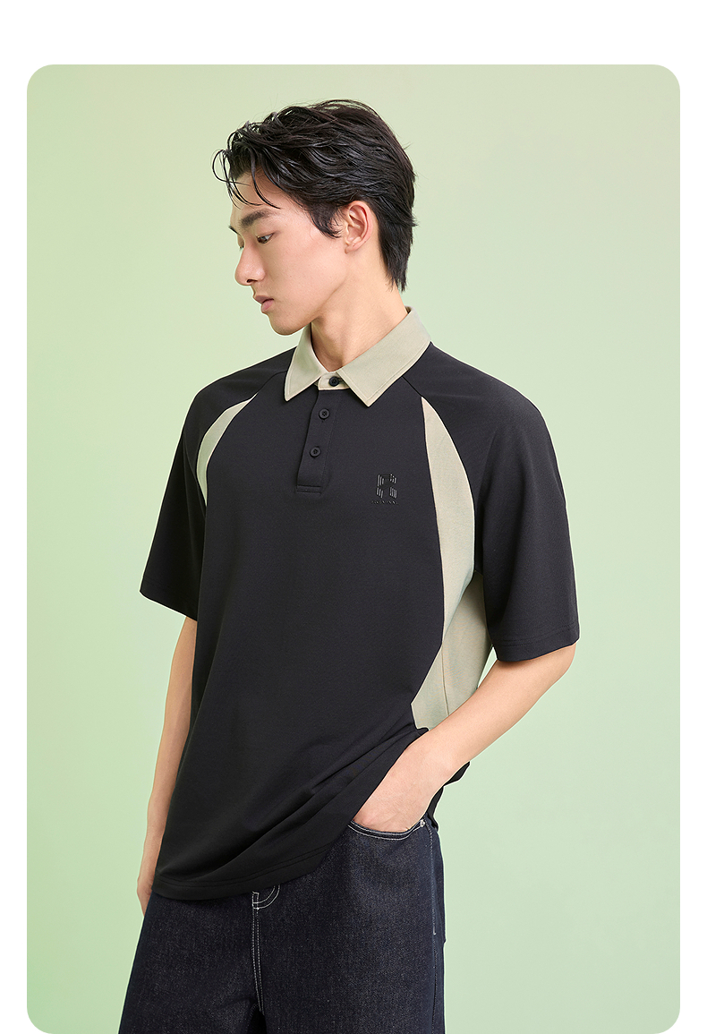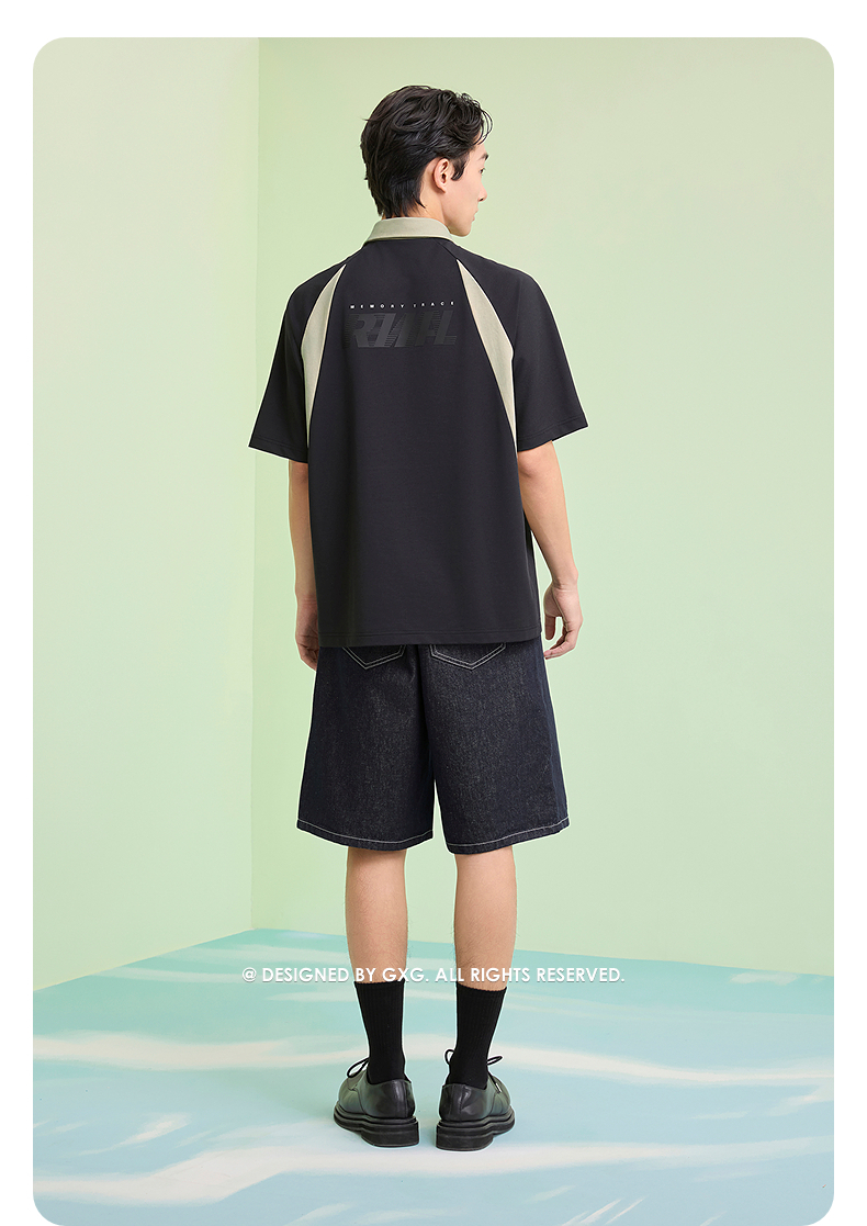 GXG男装 拼接撞色运动polo衫休闲时尚翻领短袖上衣 25夏新品