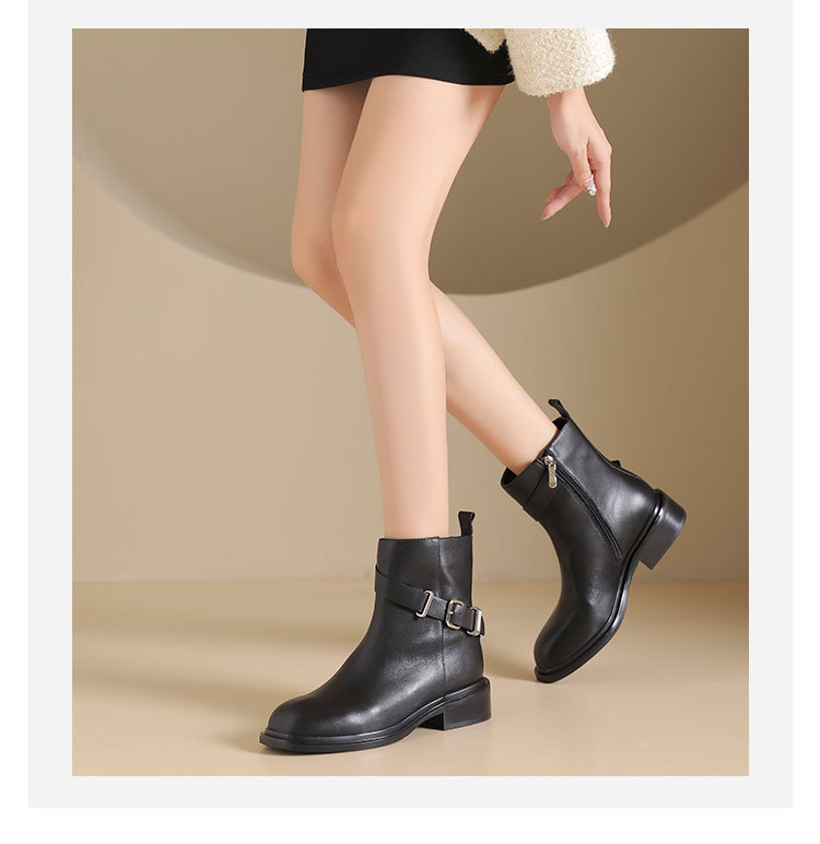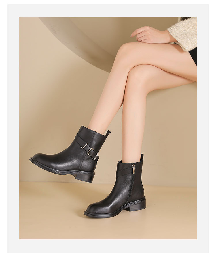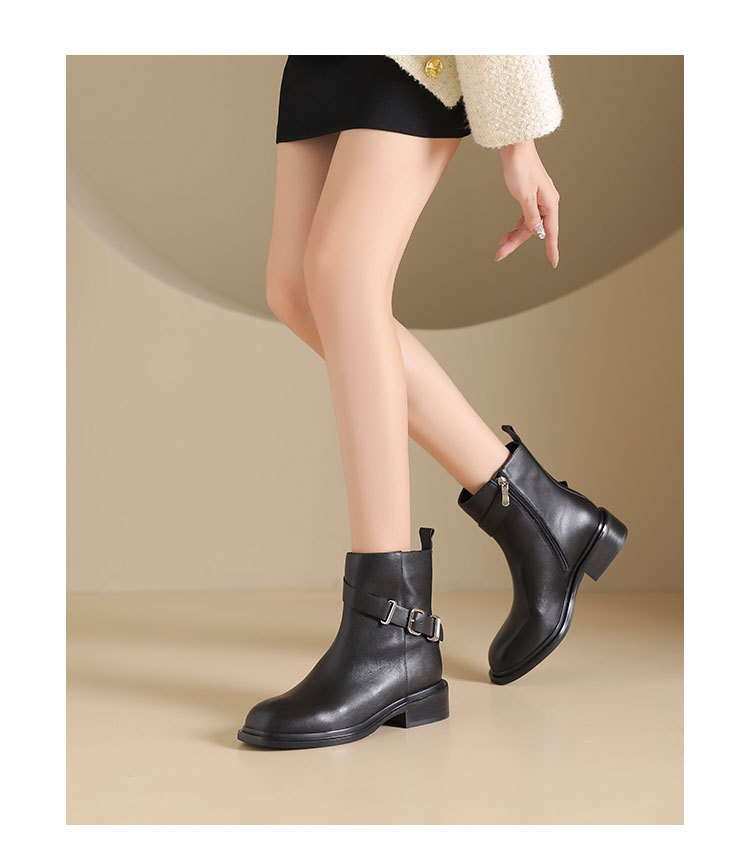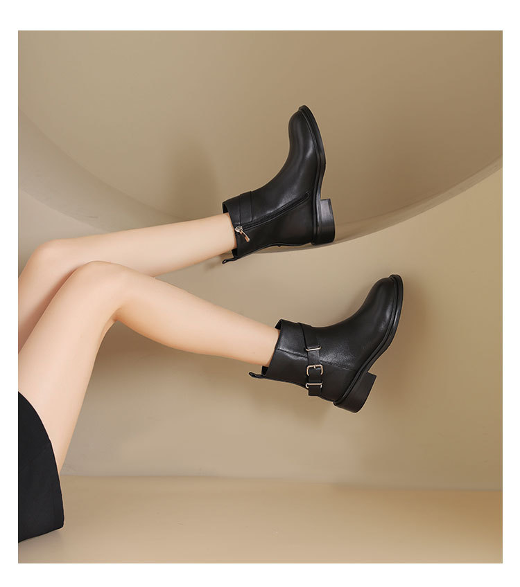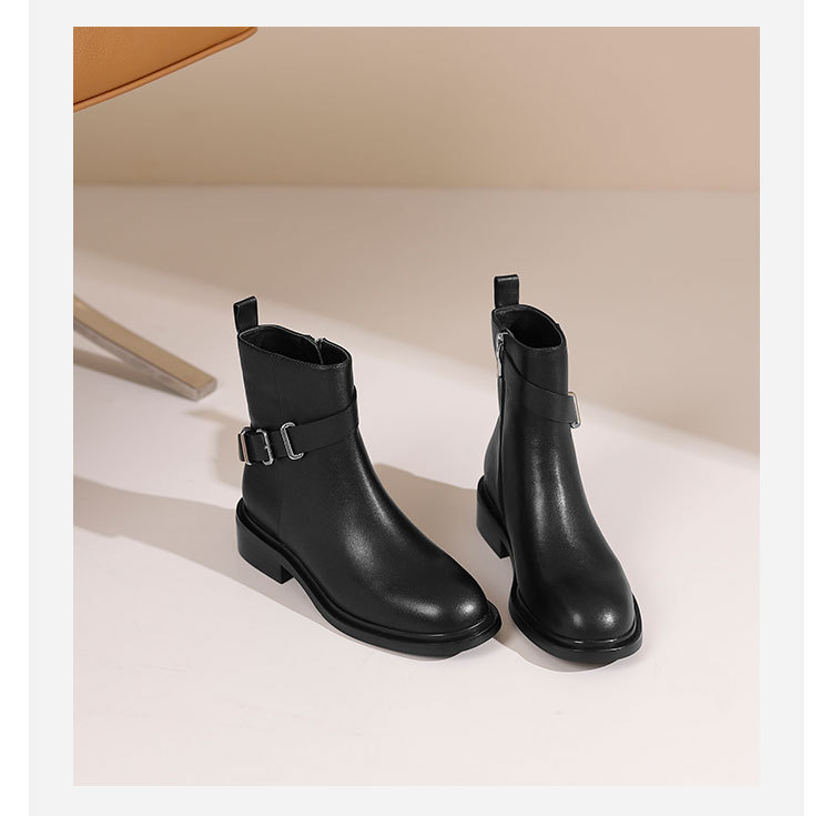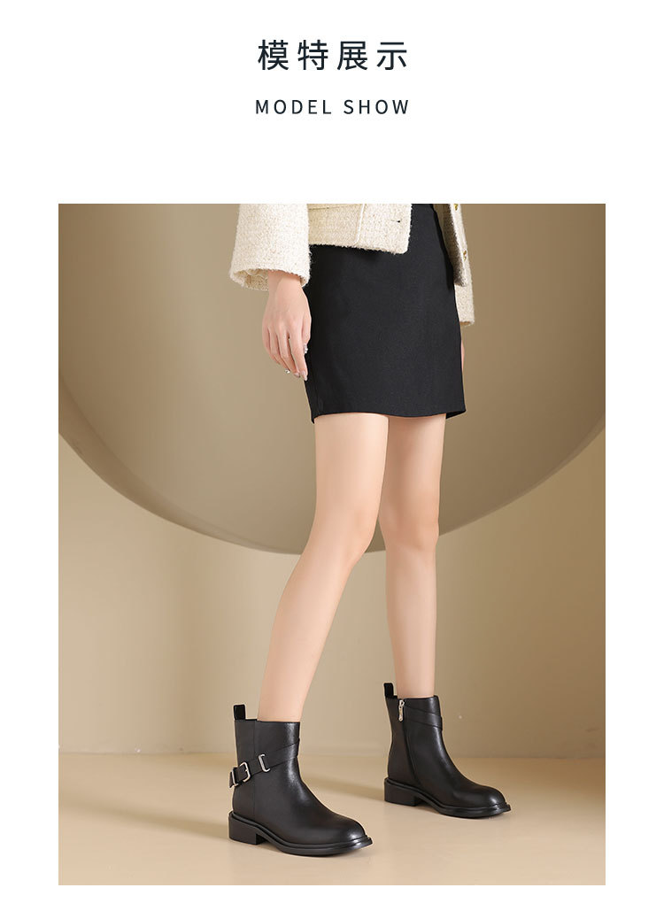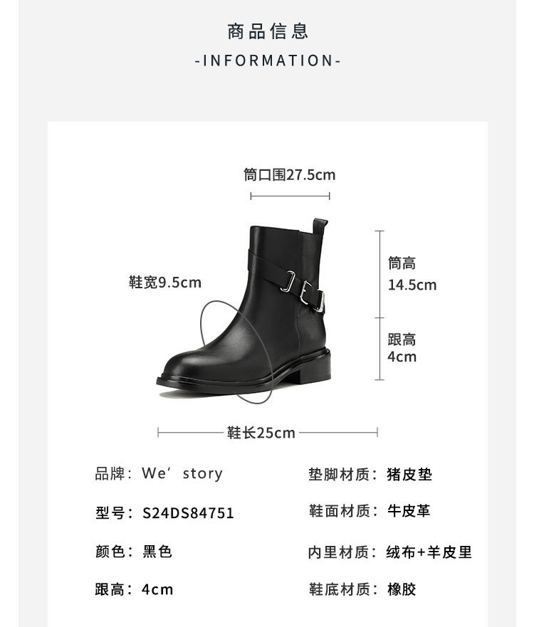 westory2024年秋冬新款优雅风平底粗跟百搭短靴切尔西S24DS84751