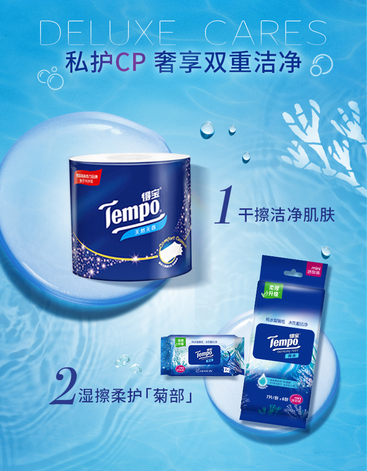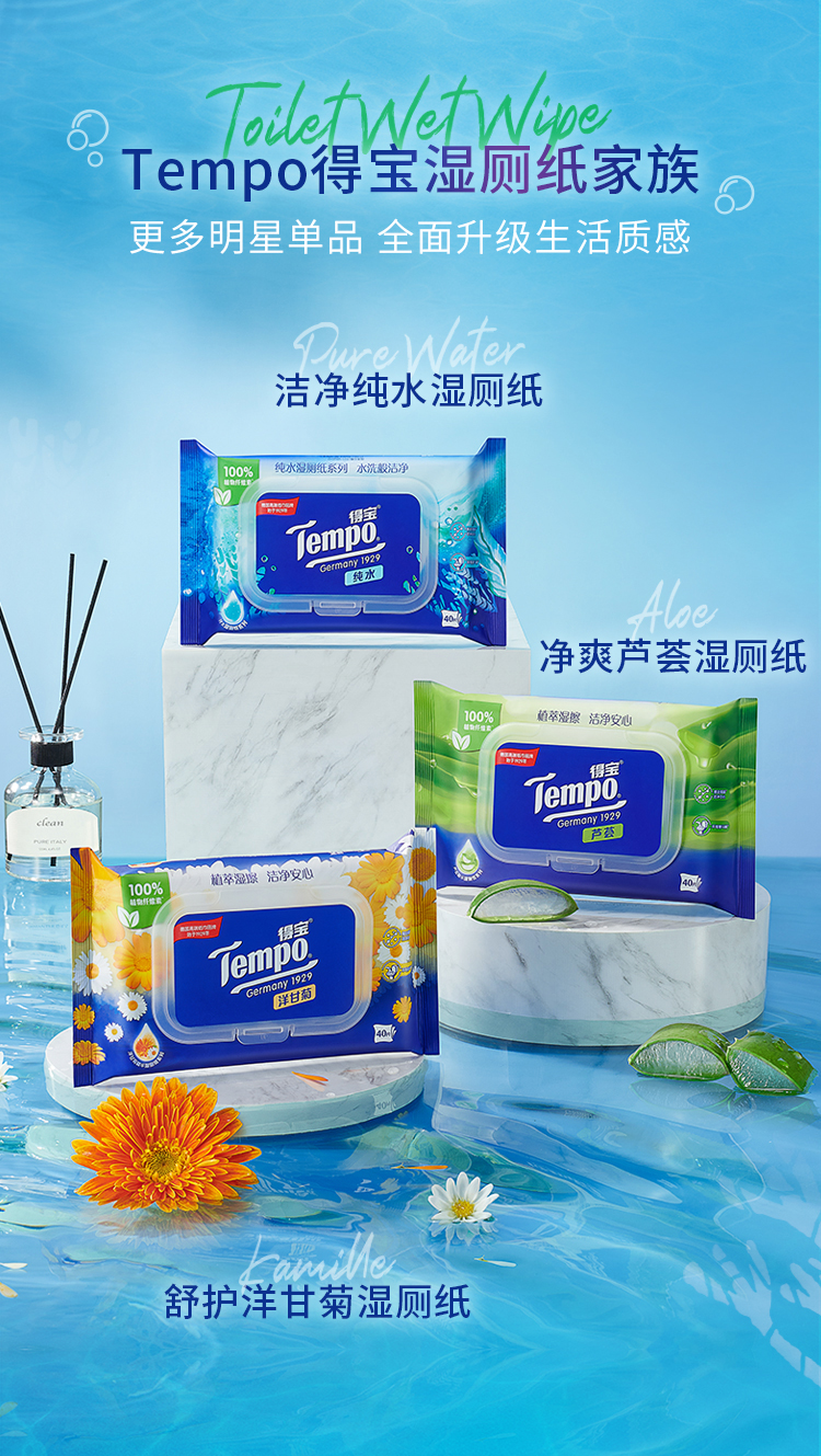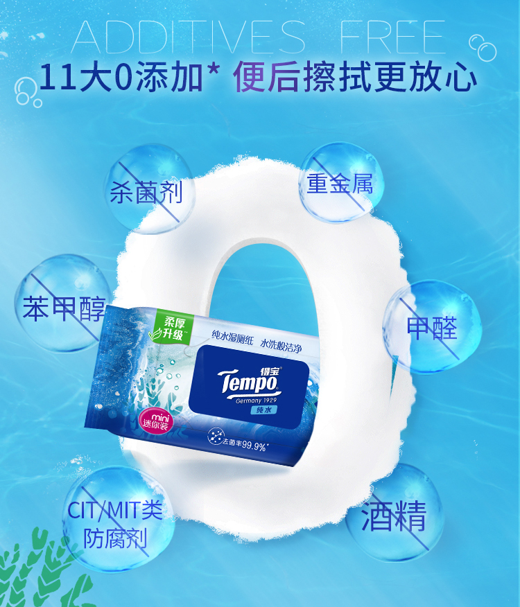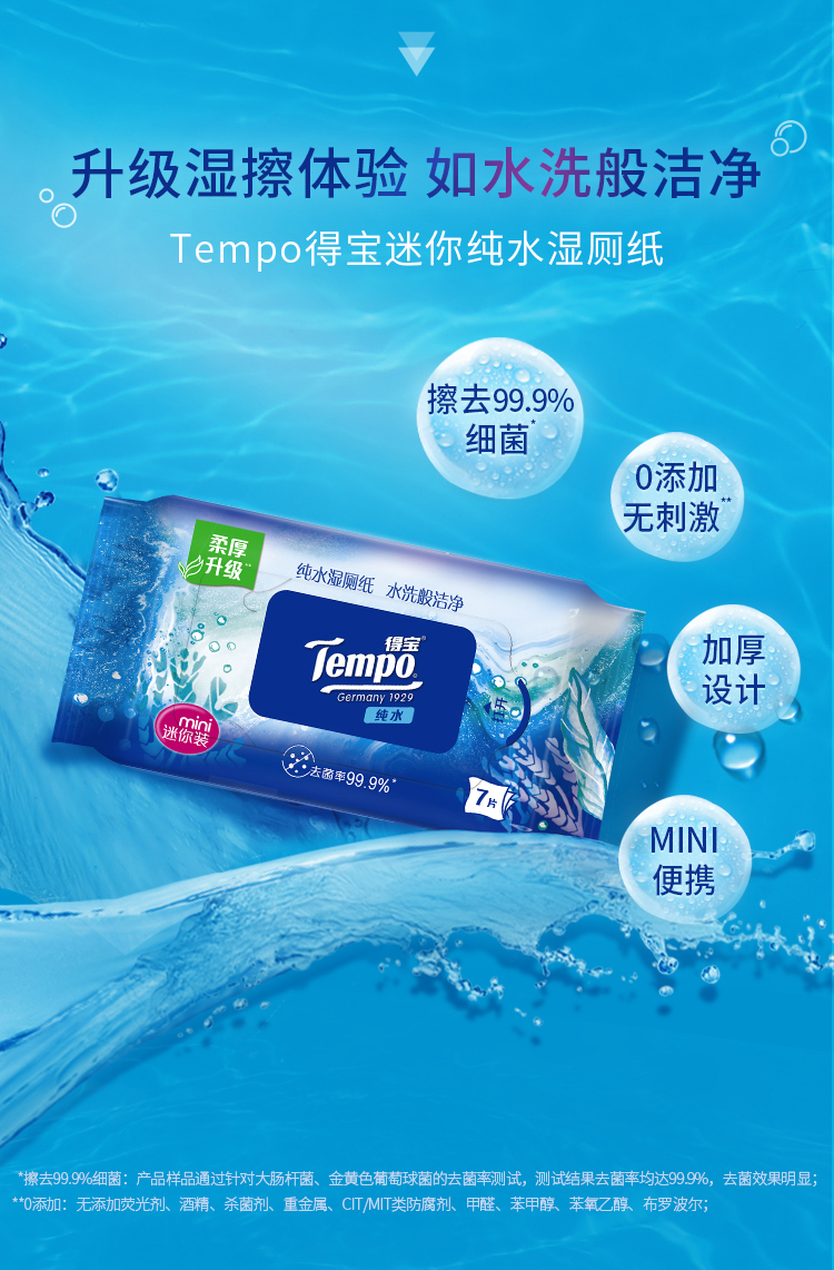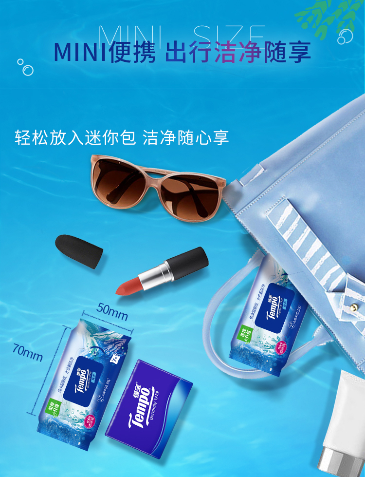 【FL满减专区】Tempo得宝 纯水超迷你湿厕纸7片/包×6包/袋*2袋 共12小包 净享清爽洁净FL/ 厕用湿巾
