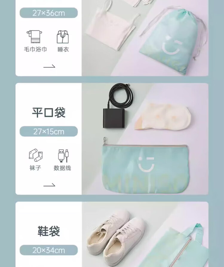 【分仓直发包邮】miniso英伦斜纹旅行收纳五件套