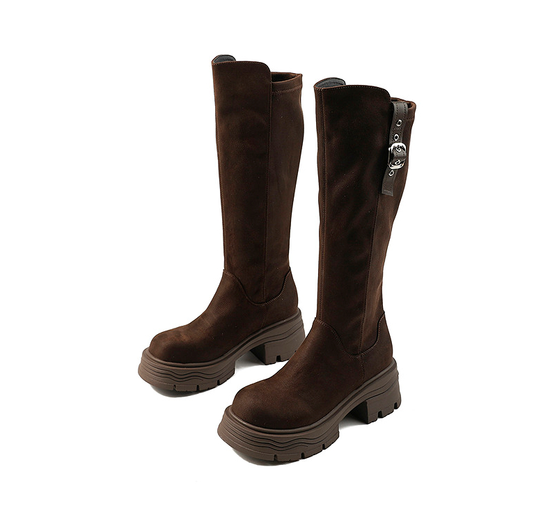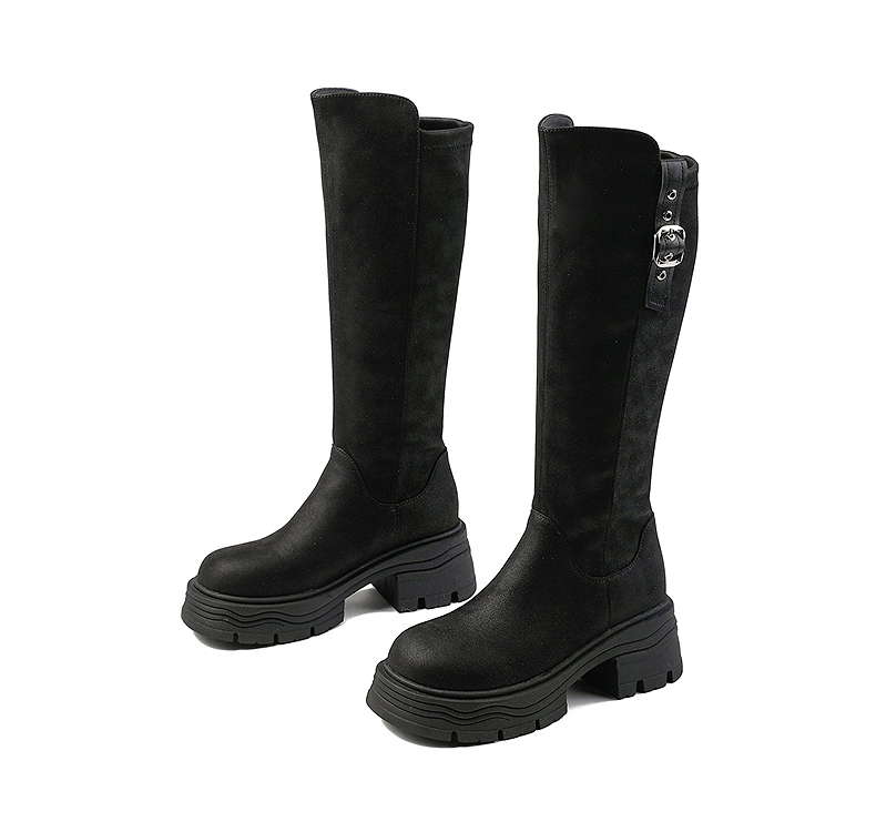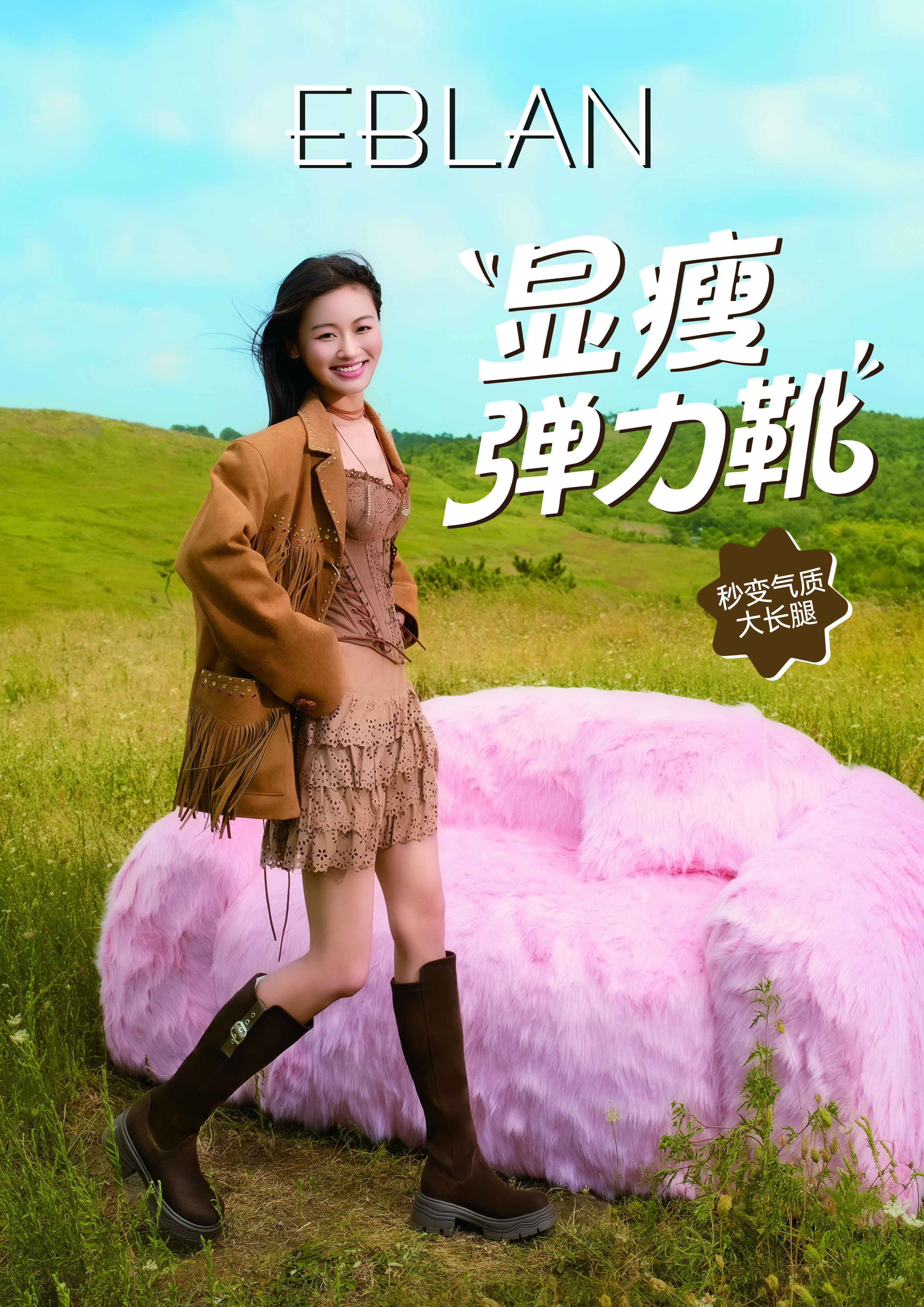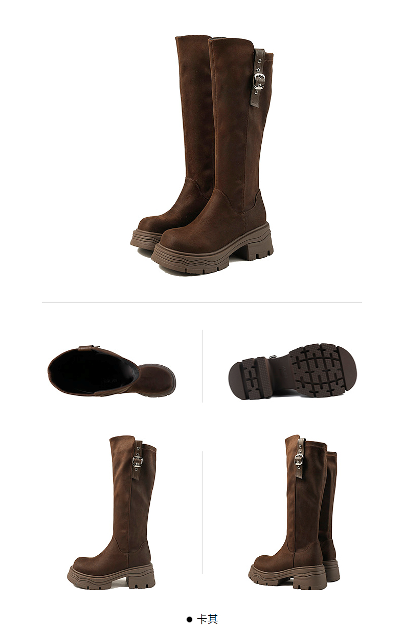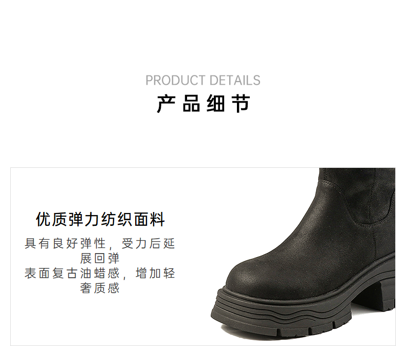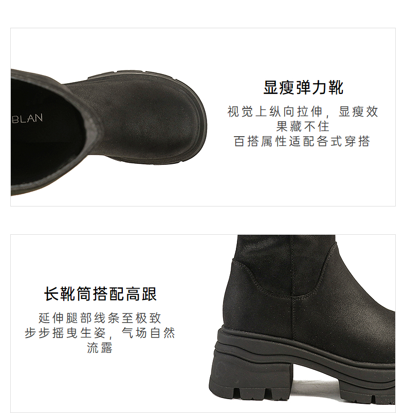 伊伴冬季显瘦弹力高跟长靴女时尚休闲鞋B25561027