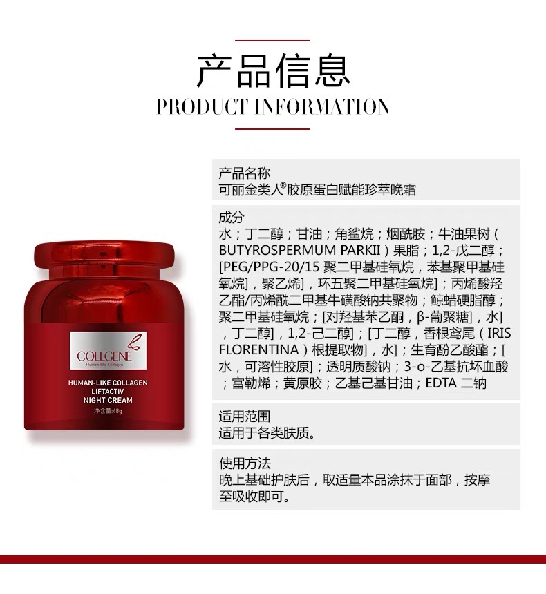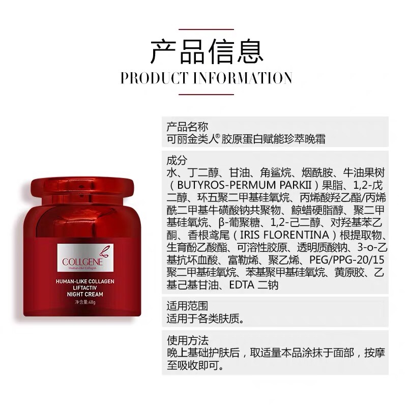 可丽金类人胶原蛋白赋能珍萃晚霜48g深层滋养润泽淡化细纹皱纹