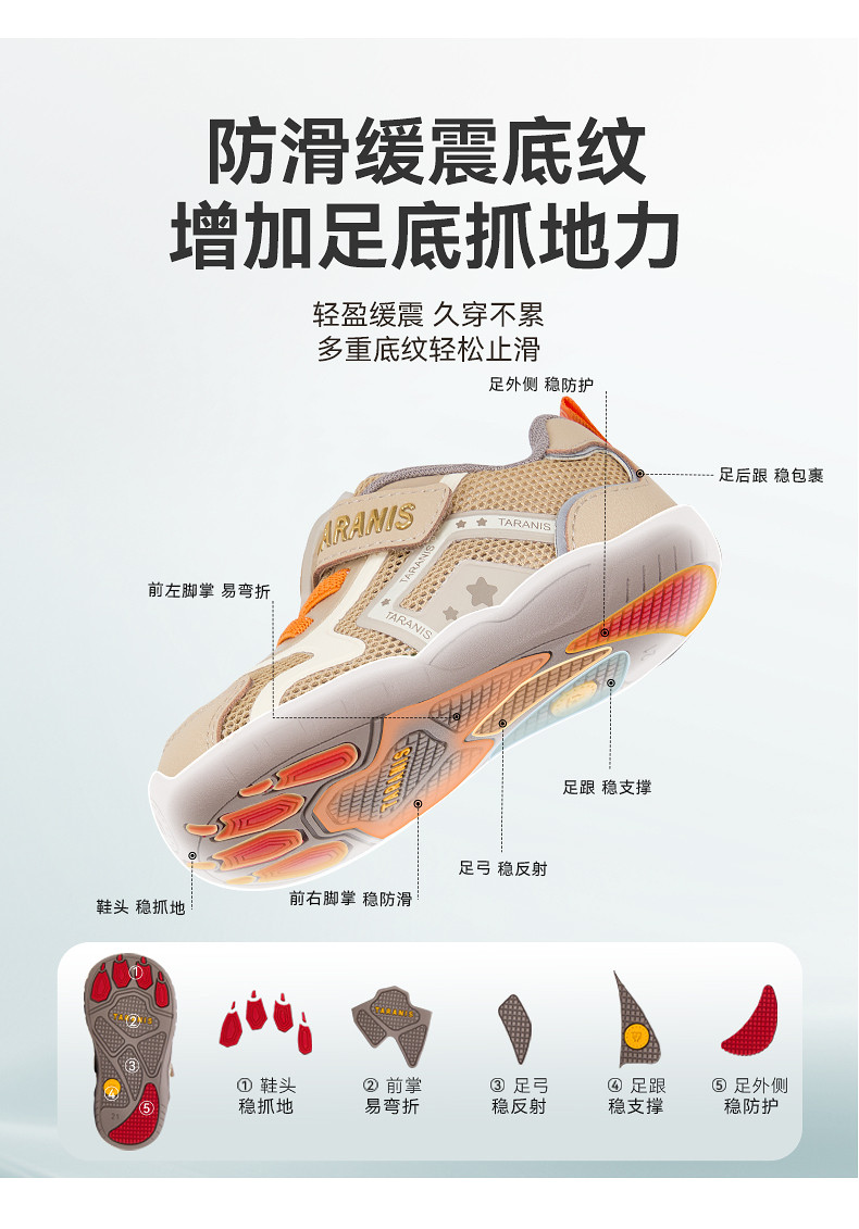 泰兰尼斯春季新款童鞋男童休闲运动鞋女童机能鞋子防滑软底学步鞋T01T6A8529